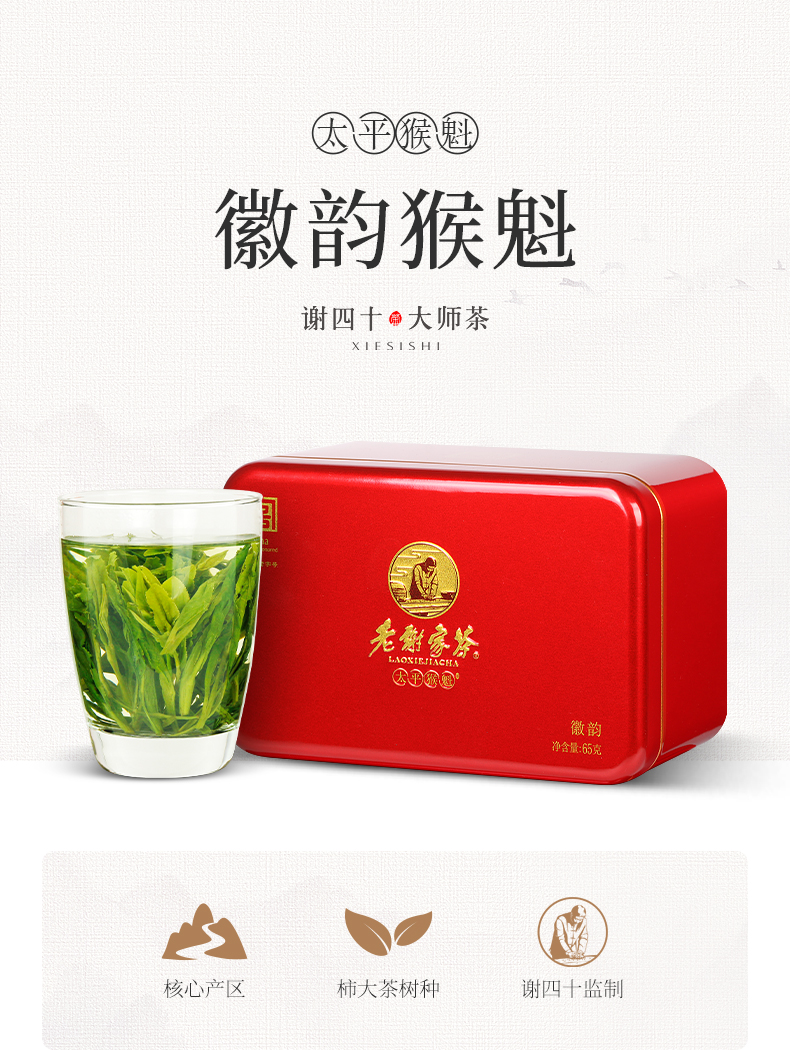 老谢家茶老谢家茶手工捏尖特级太平猴魁65克听装绿茶