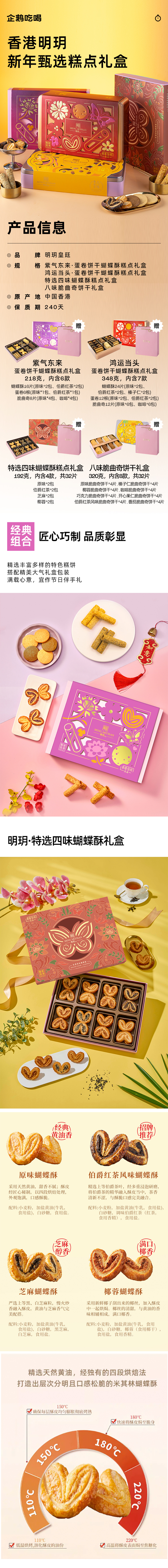 企鹅市集|香港明玥皇庭 限定糕点礼盒 多款可选 蛋卷/蝴蝶酥/曲奇等 匠心制作