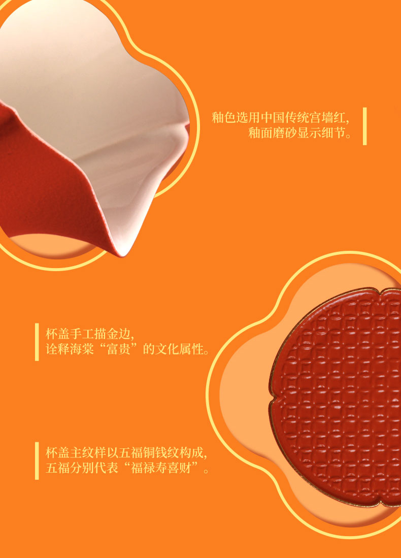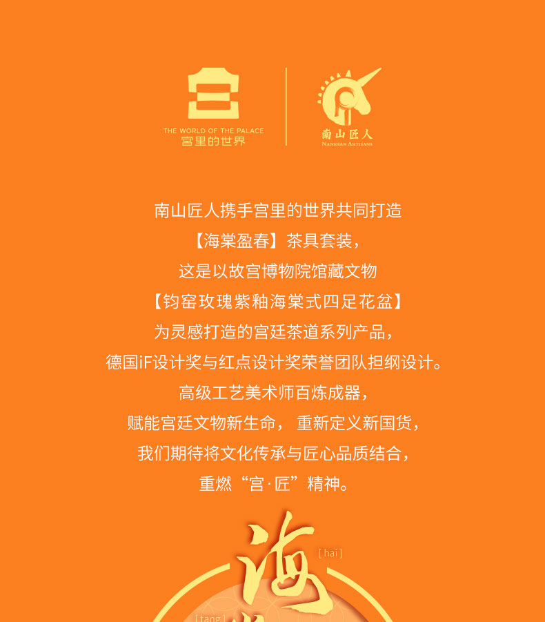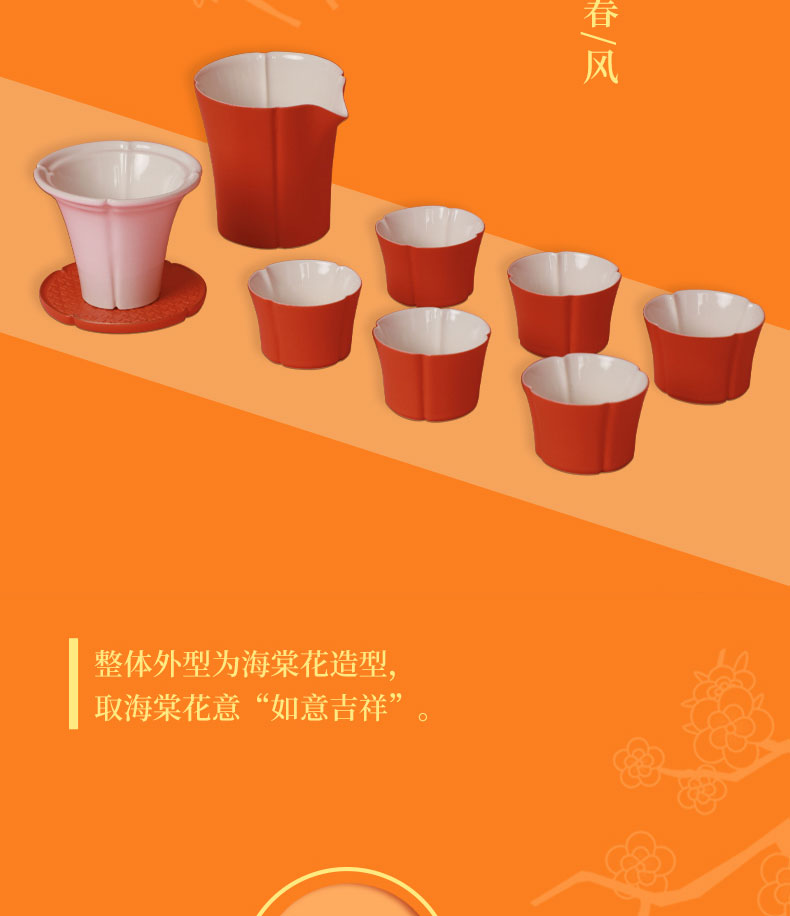 【采购专享】宫里的世界&南山匠人 海棠盈春 陶瓷茶具套装 一壶一茶漏六杯