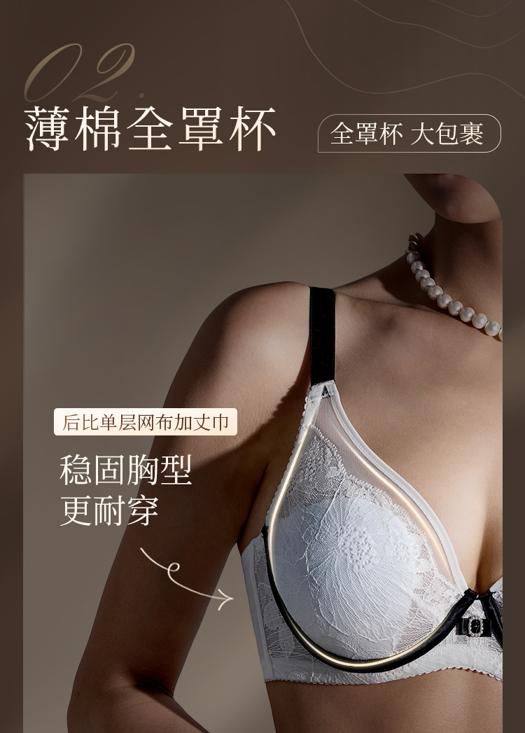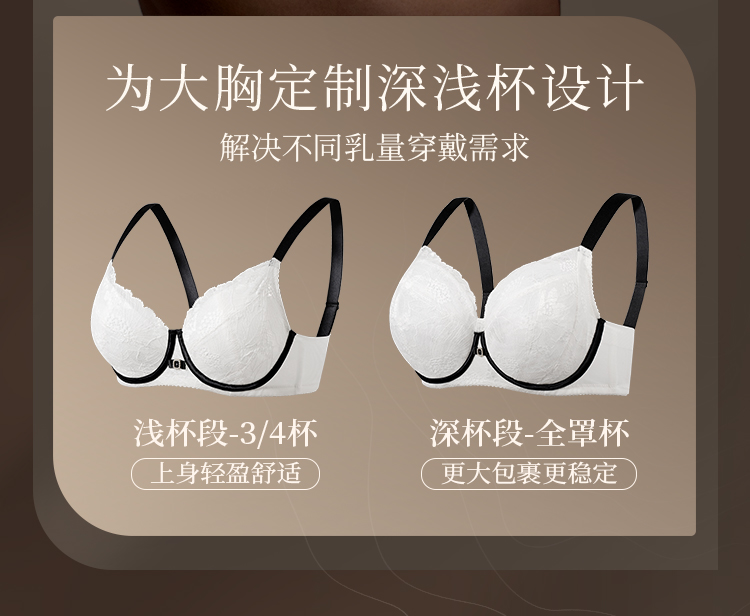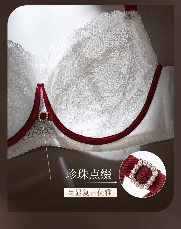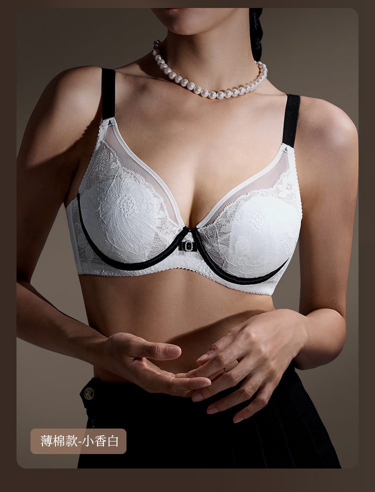 【积分兑换】奶糖派大胸显小内衣女山茶花小香风超薄蕾丝文胸防下垂大码胸罩