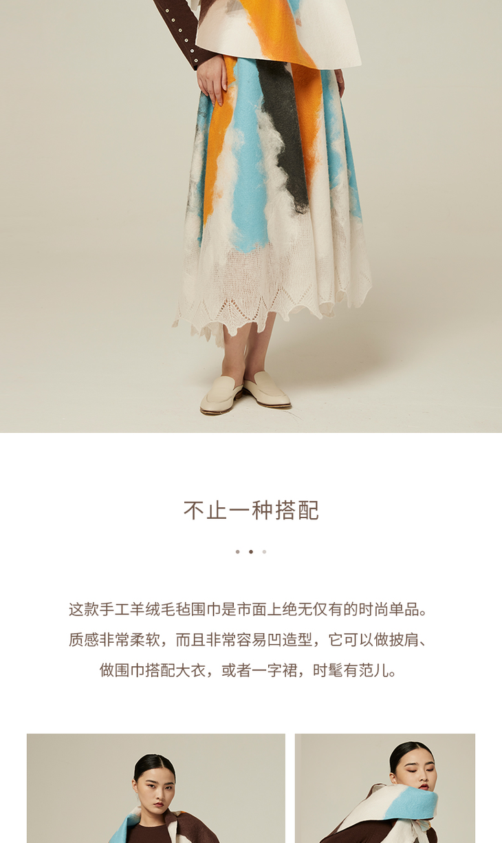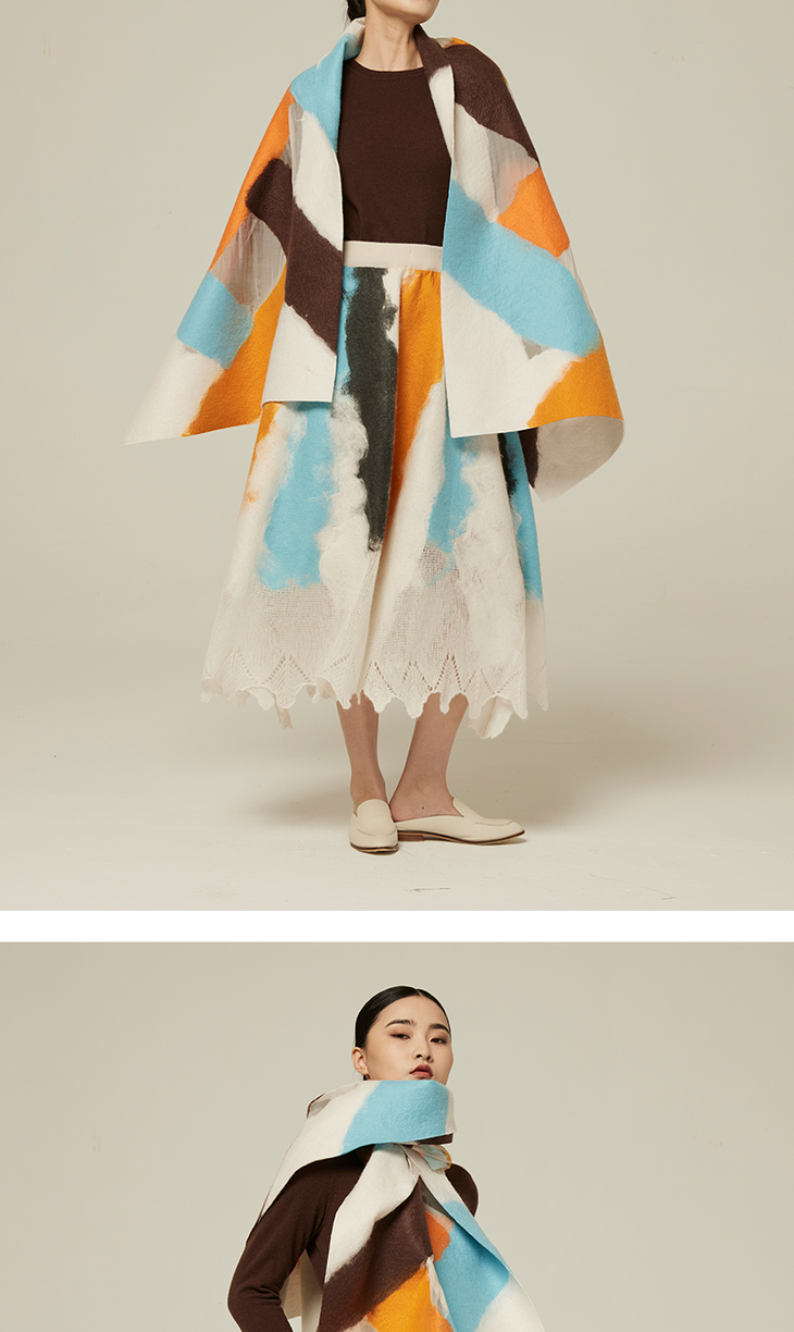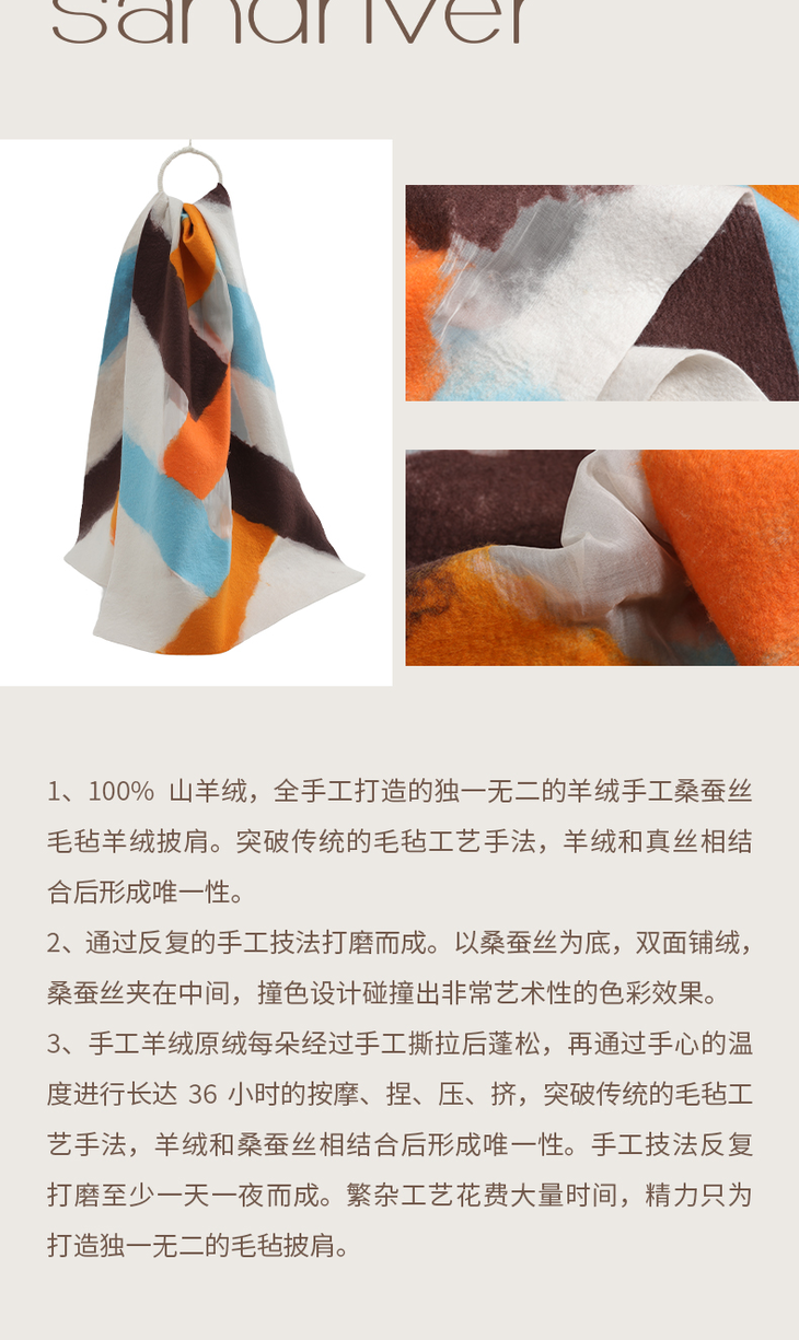 羊绒桑蚕丝手工毛毡披肩 SJF94P273W