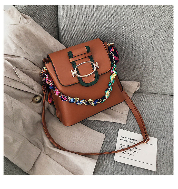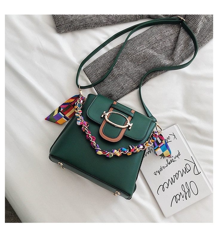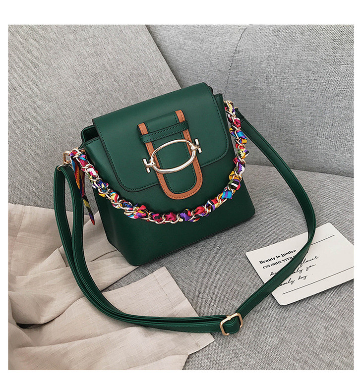 【服饰鞋包】秋季新款丝巾链条水桶包油蜡皮手提包女复古百搭单肩斜跨包潮