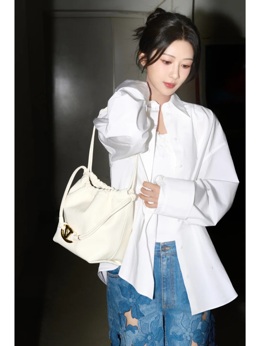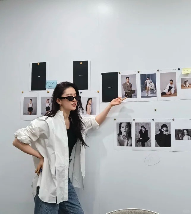 搭配公式:oversize白衬衫 + 墨镜 + 牛仔裤 + 内搭