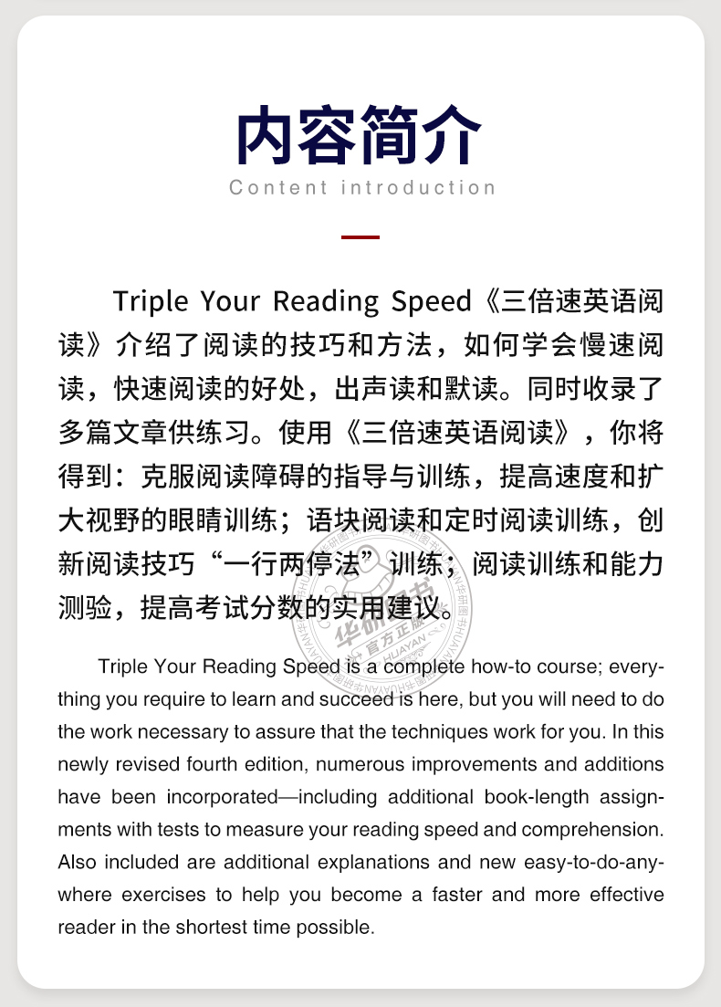 - 本店是“华研外语”品牌商自营店,全国所有“华研外语”、“华研教育”品牌图书都是我司出版发行的,本店为华研官方源头出货,所有图书均为正规正版,拥有实惠与正版的保障!!!
