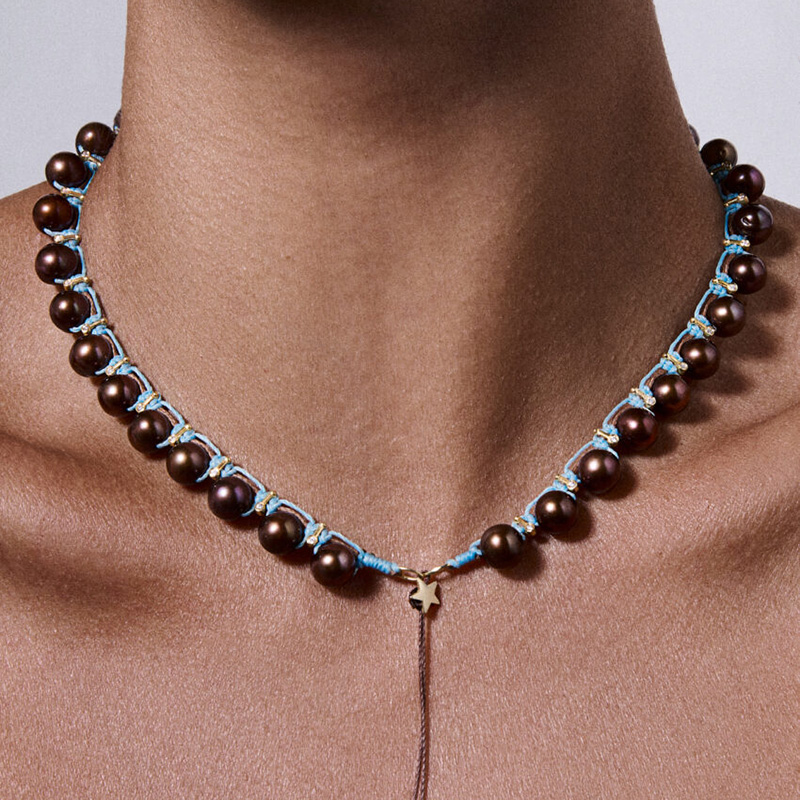订购10周到|CHRISTIANA KAFA-root- 蓝线 星星 棕色淡水珍珠 项链[希腊设计师]