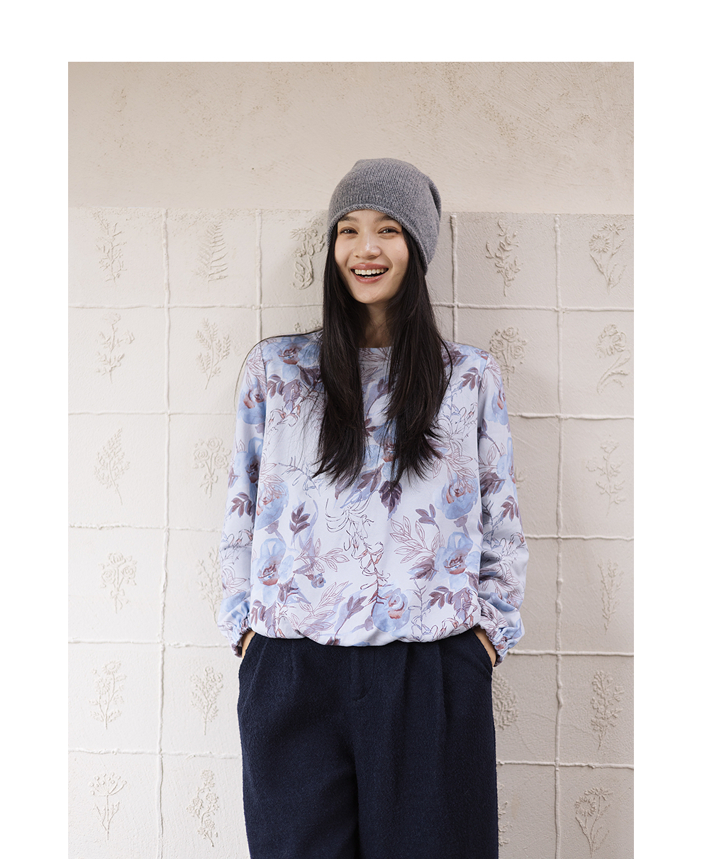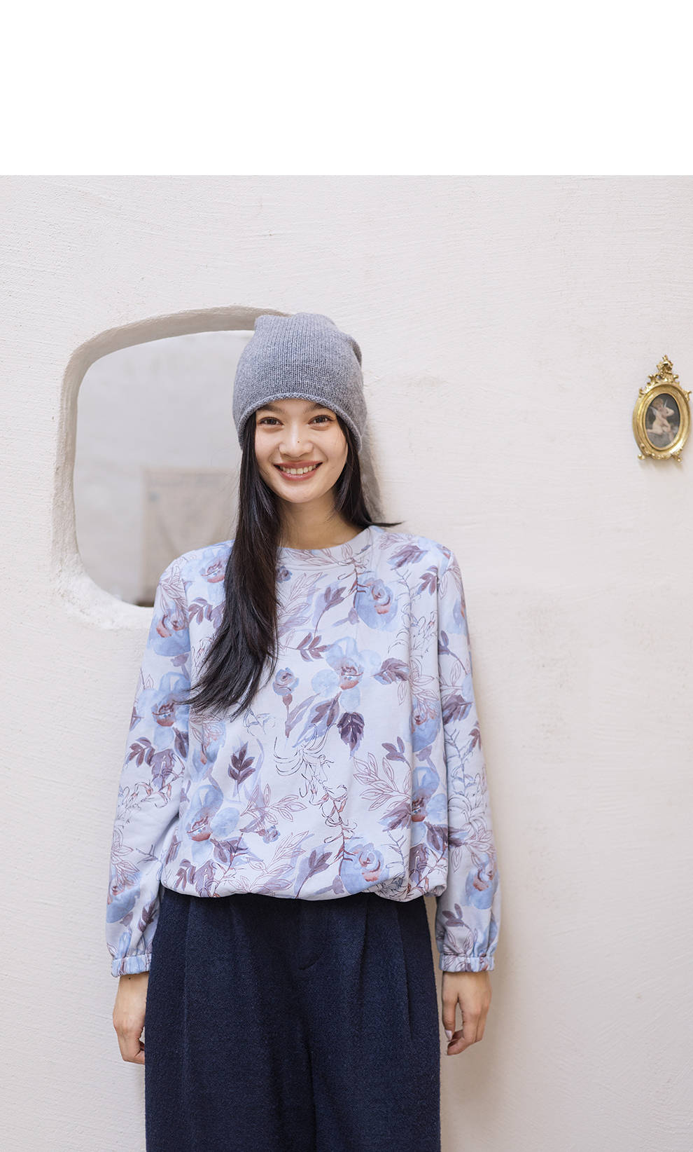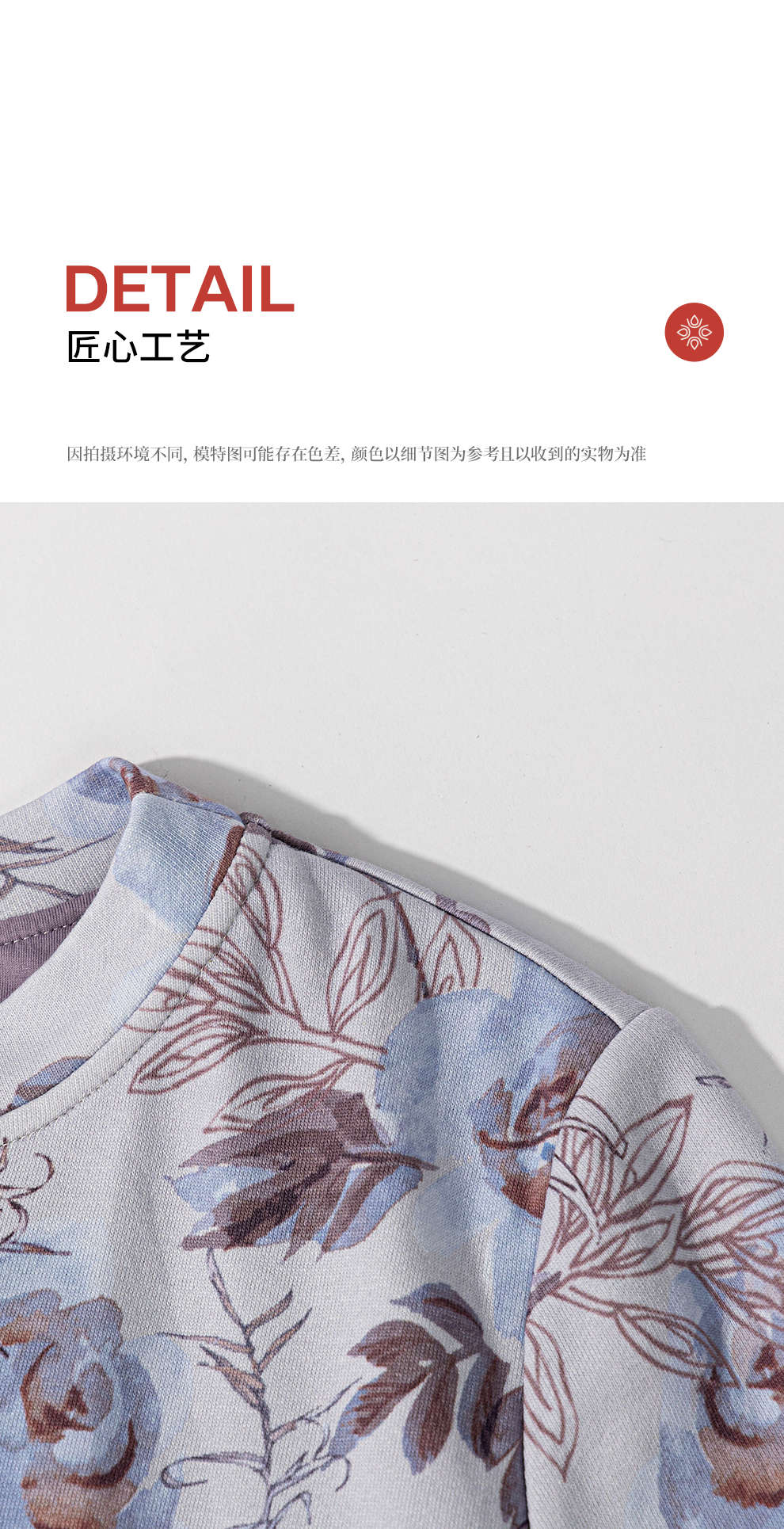 绽放741朵/纯棉毛圈布印花圆领正常肩长袖双层卫衣2025冬新款上衣