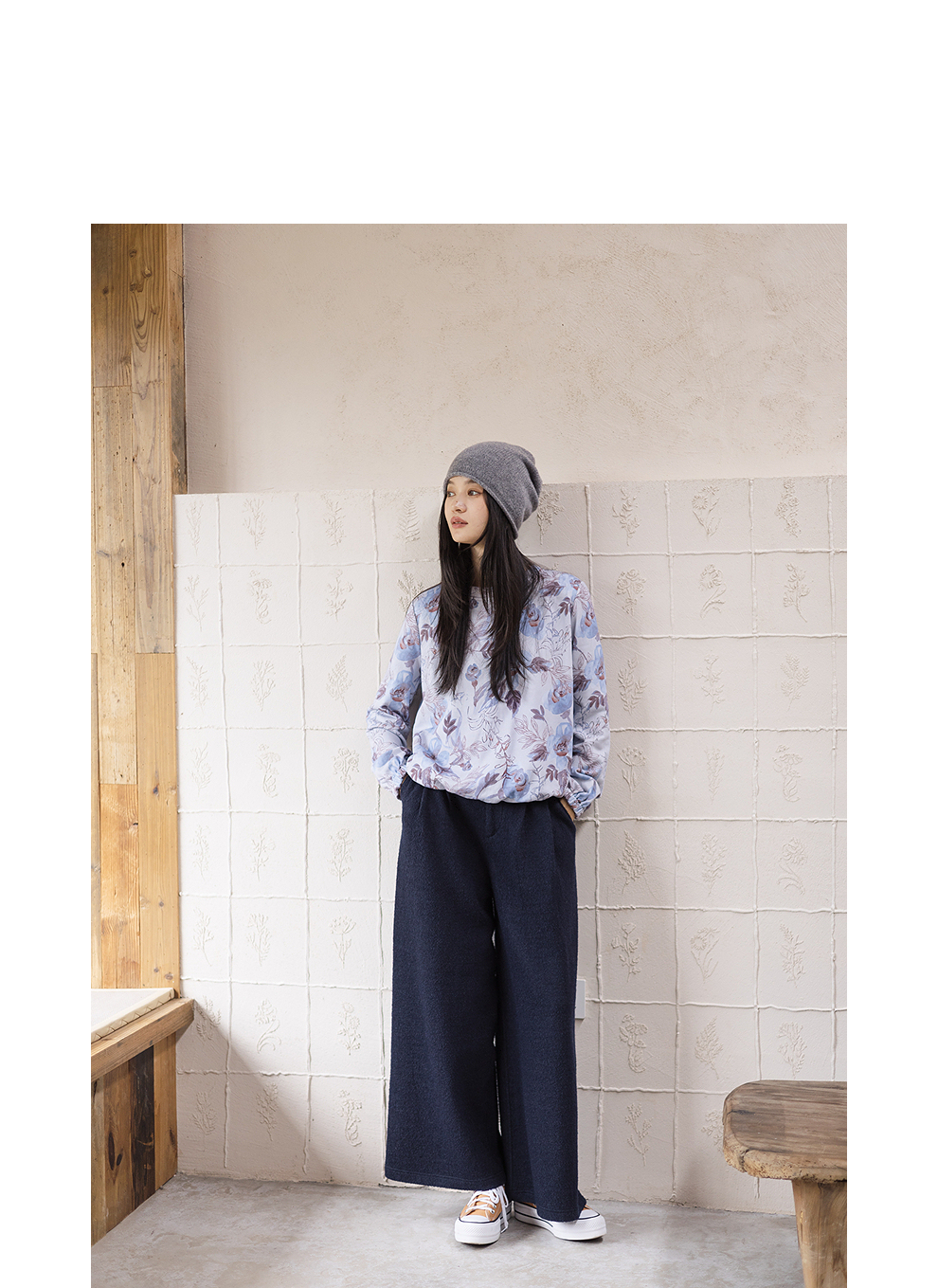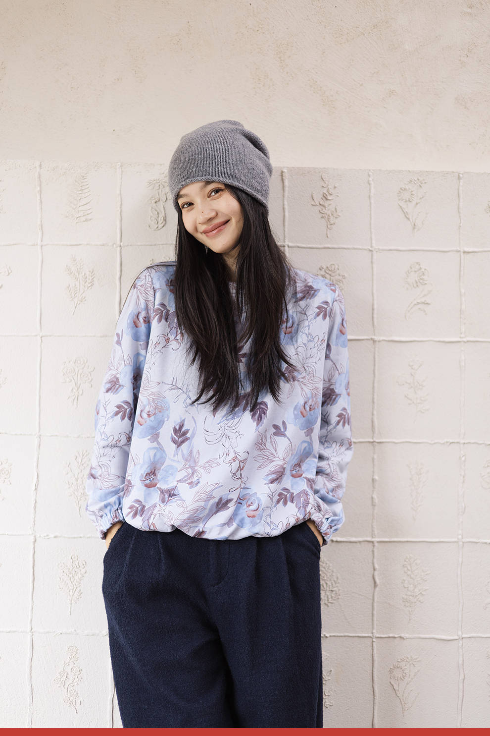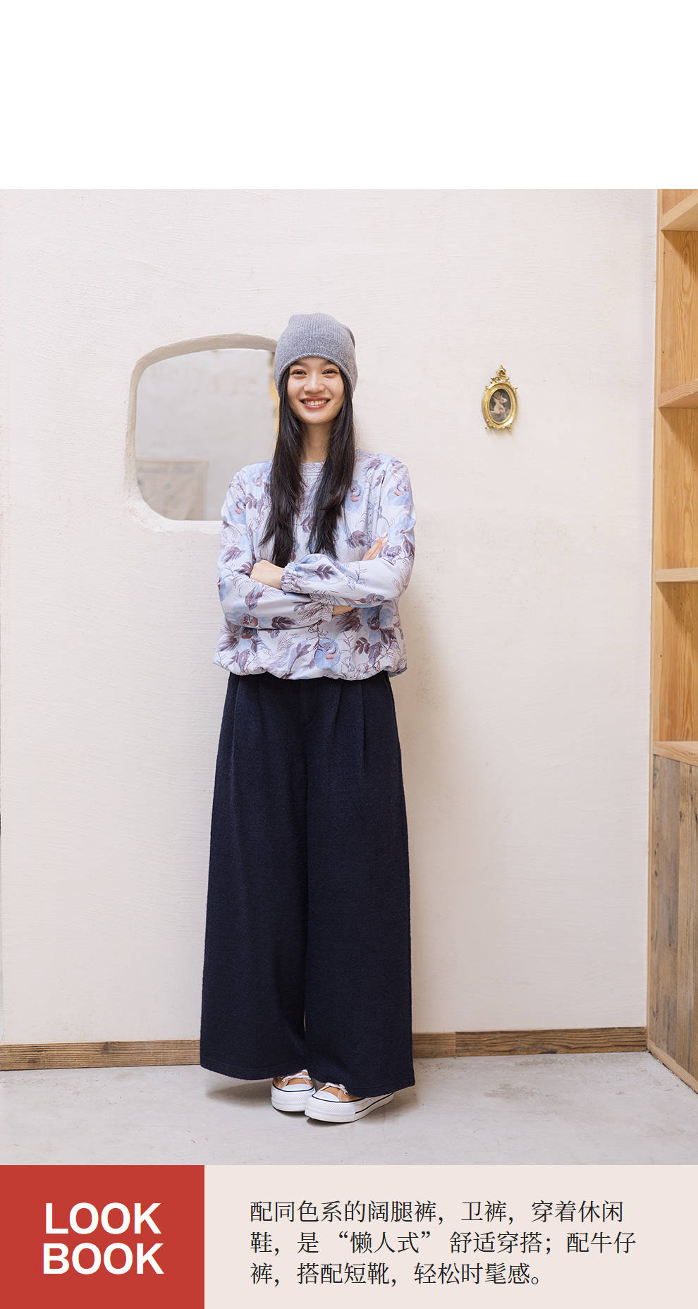 绽放741朵/纯棉毛圈布印花圆领正常肩长袖双层卫衣2025冬新款上衣