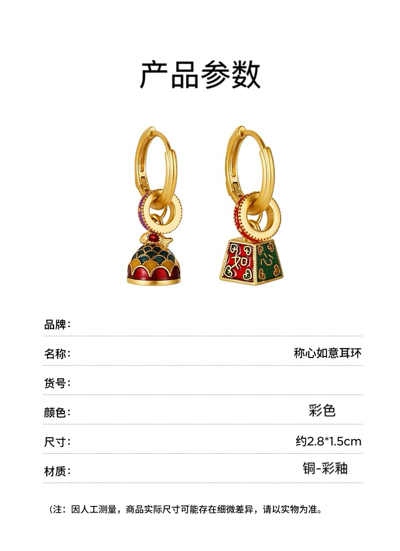 Oflye潮流饰品 新中式复古国风称心顺意耳环新款高级感女士轻奢气质耳坠