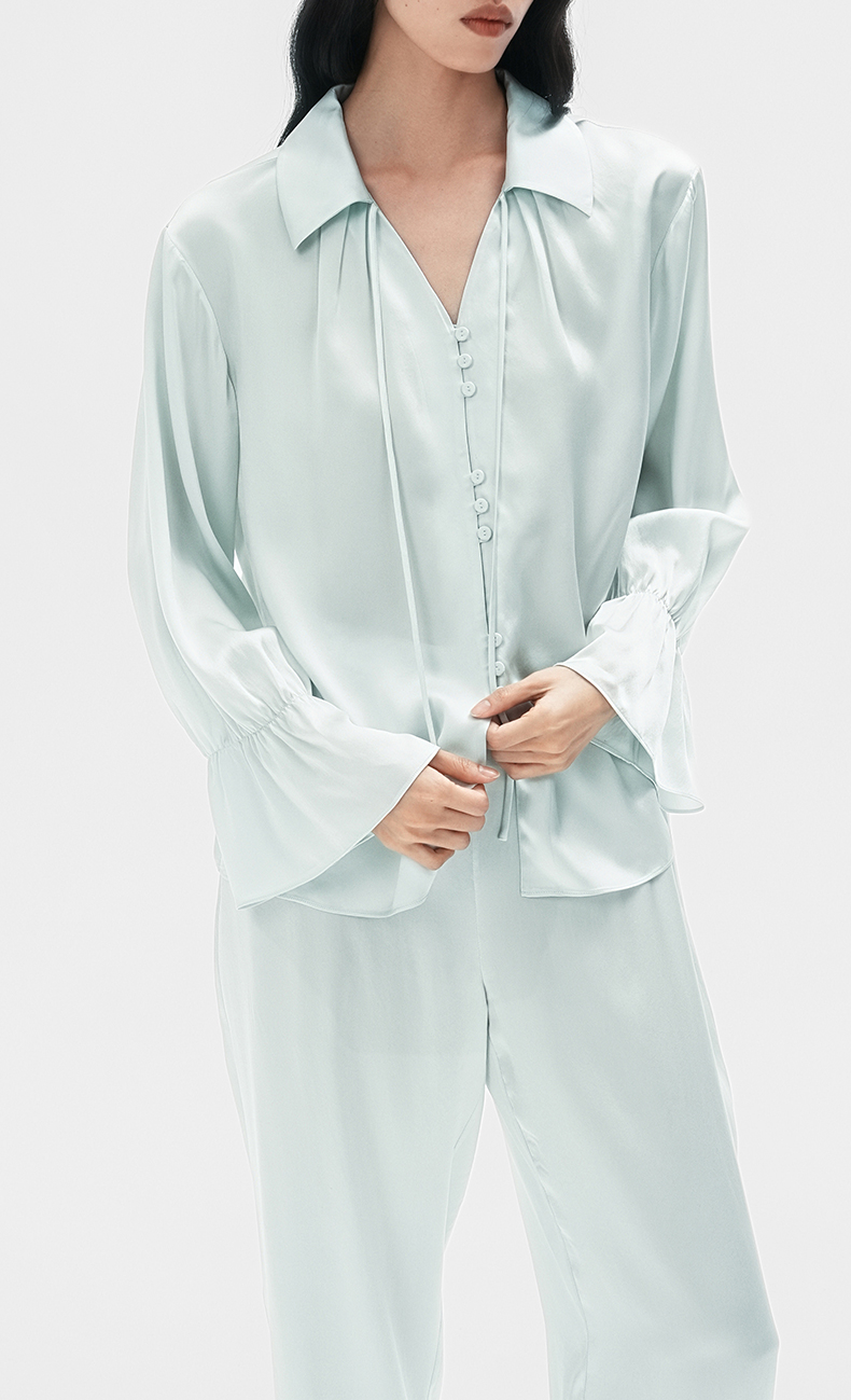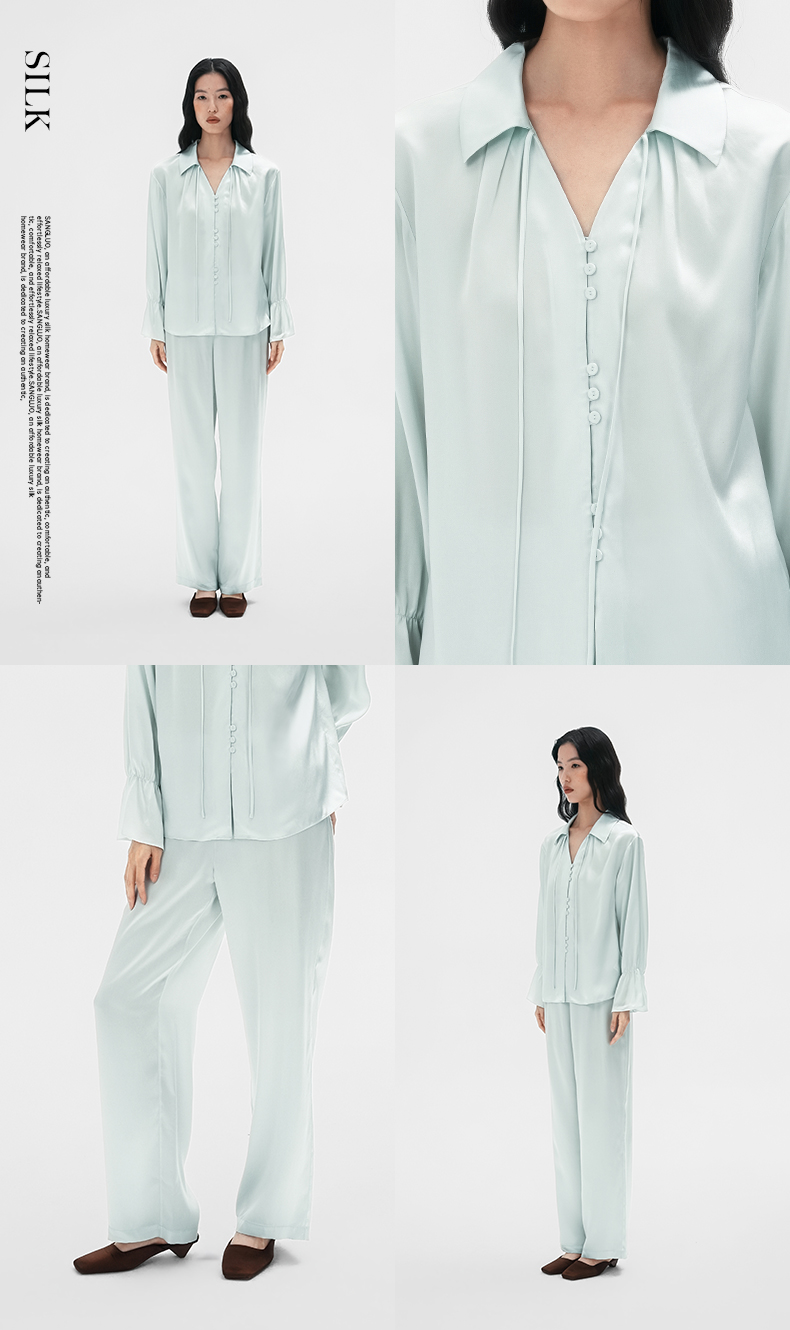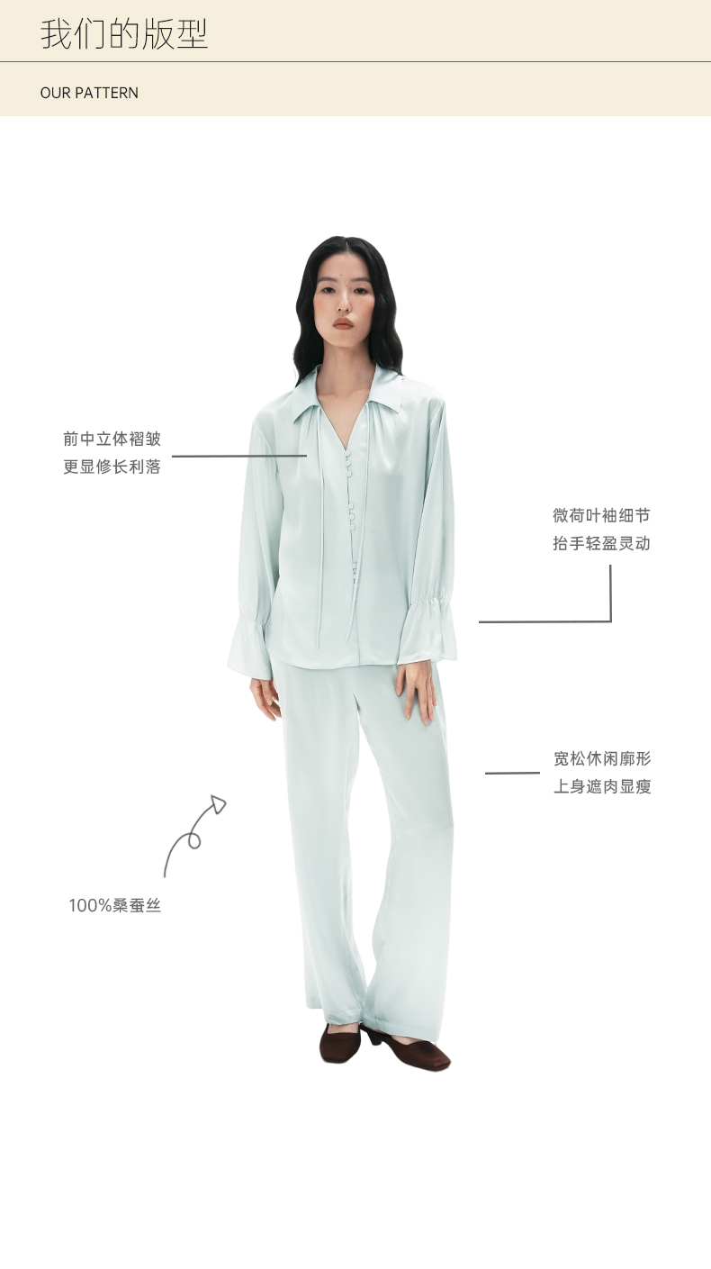 清冷氛围』桑罗荷叶边睡衣套装桑蚕丝女气质家居服可外穿