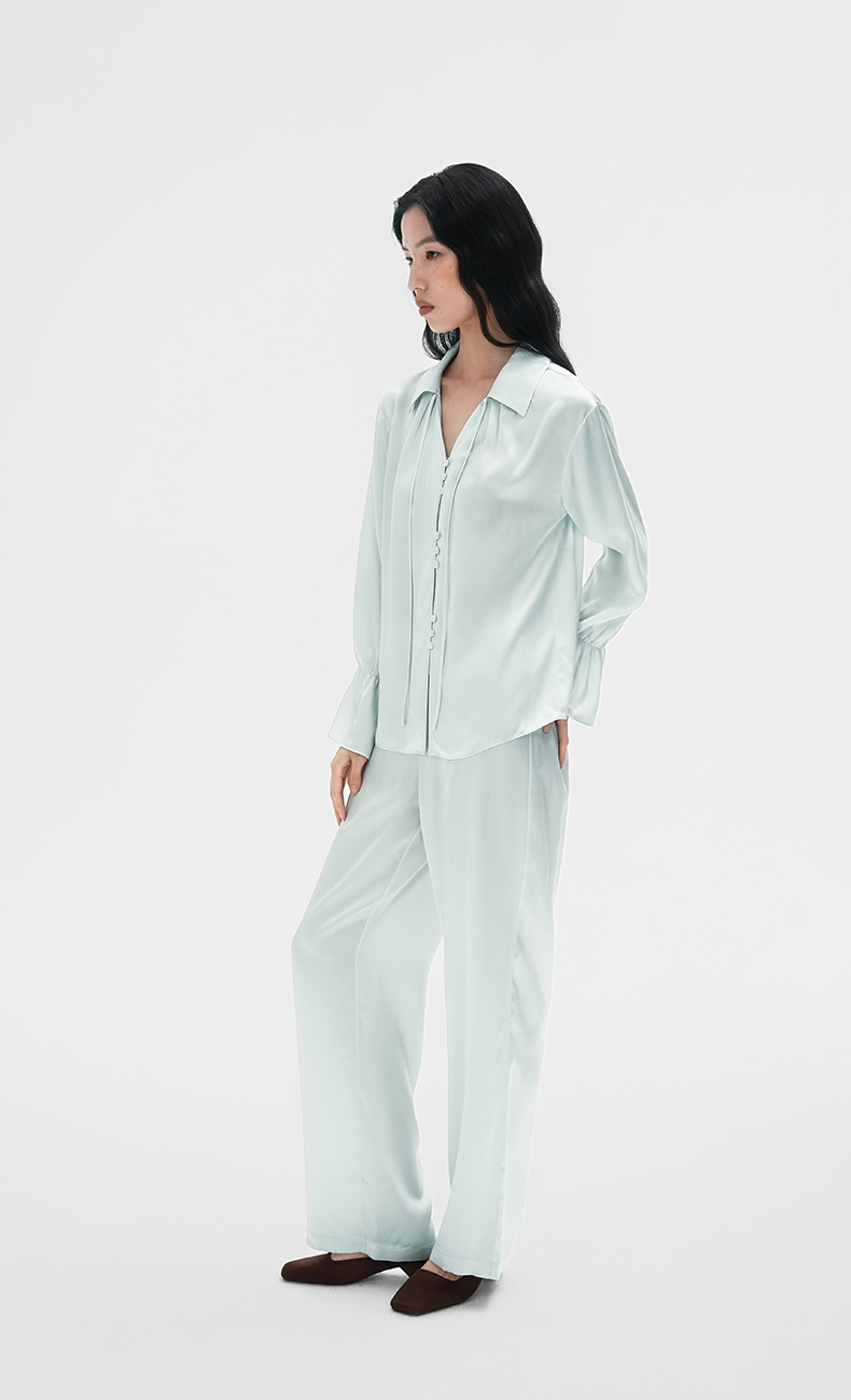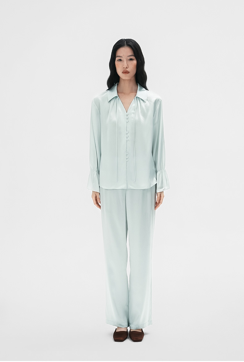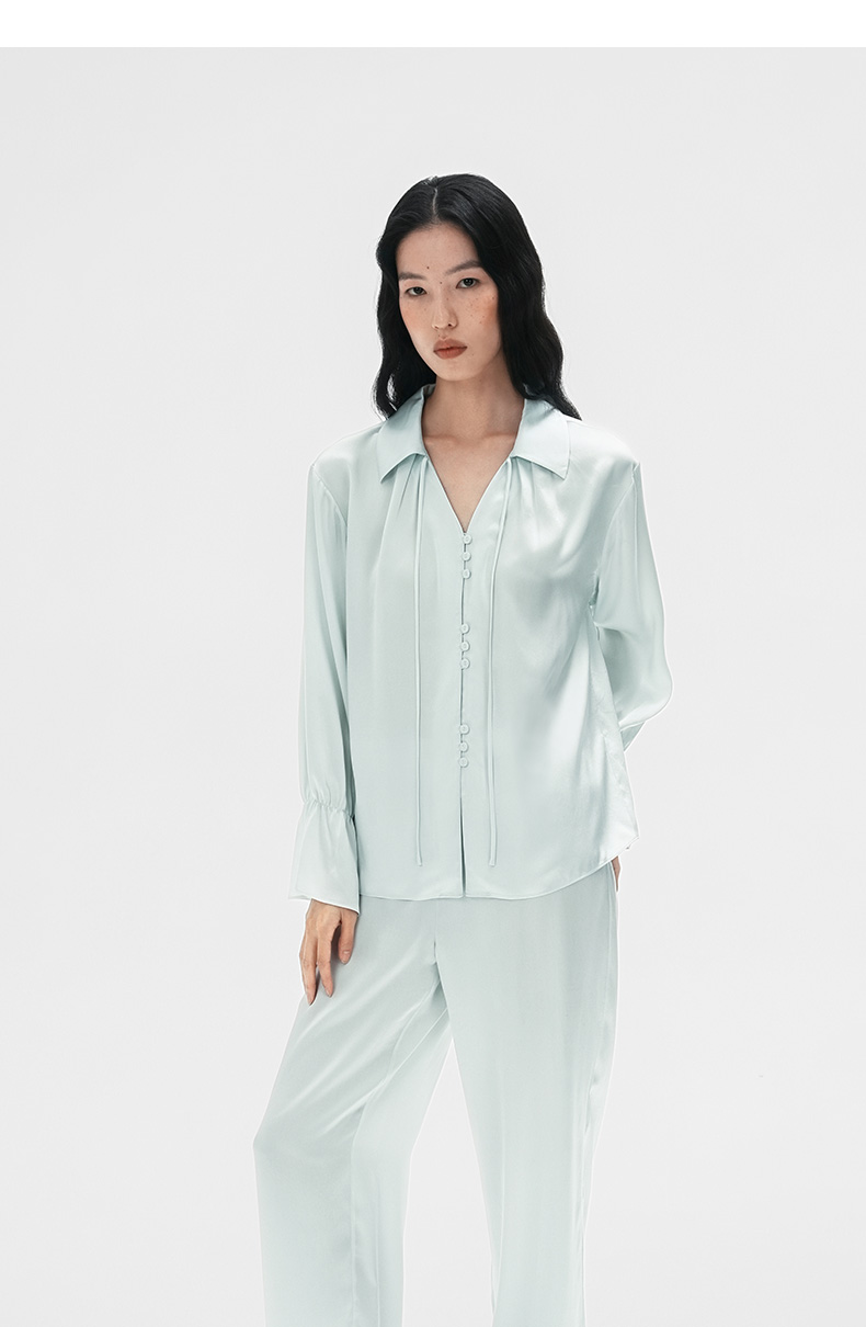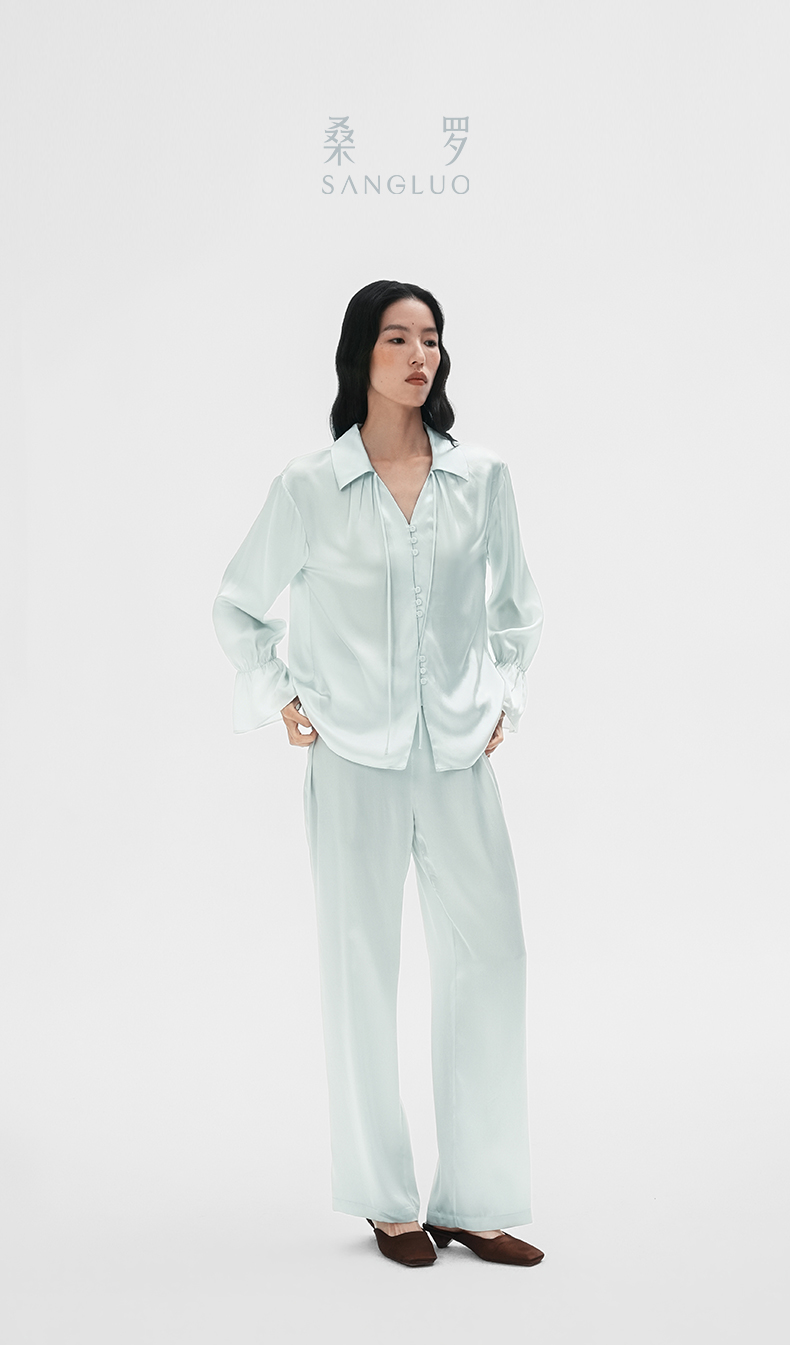 清冷氛围』桑罗荷叶边睡衣套装桑蚕丝女气质家居服可外穿