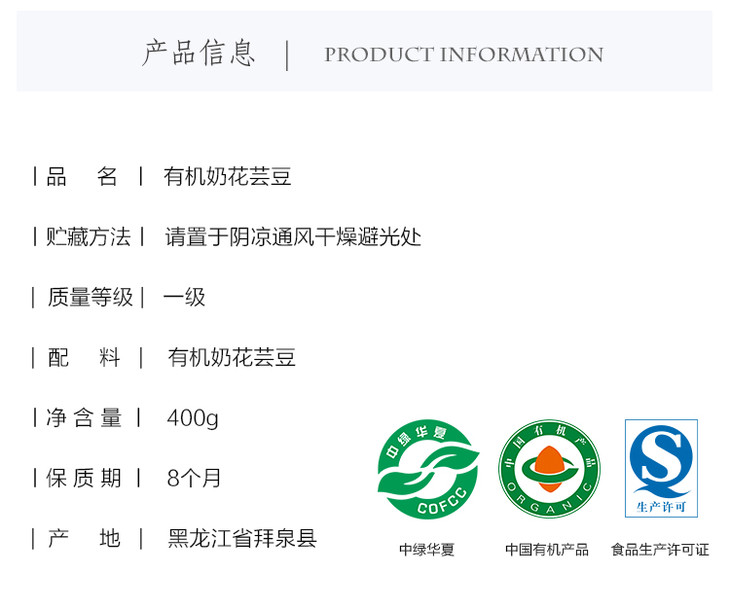 【分仓】宜样新滋补 有机奶花芸豆 400g*3包