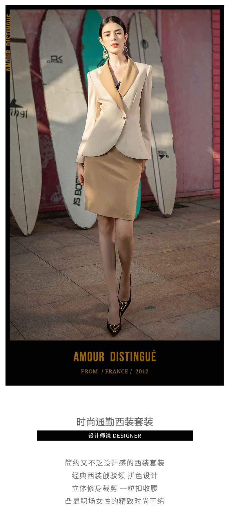 AD职业装气质女神范套装时尚西装外套简约轻熟风套裙主持人正装