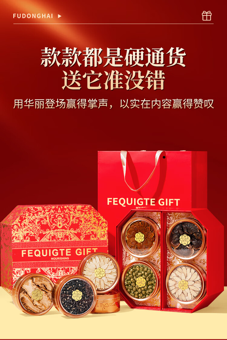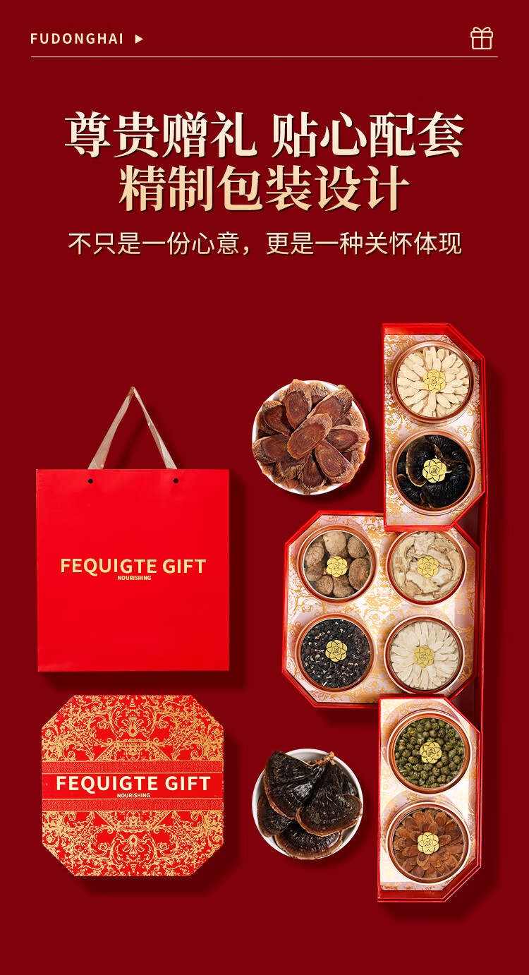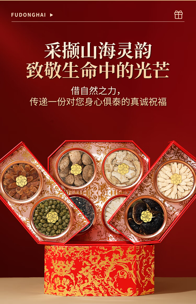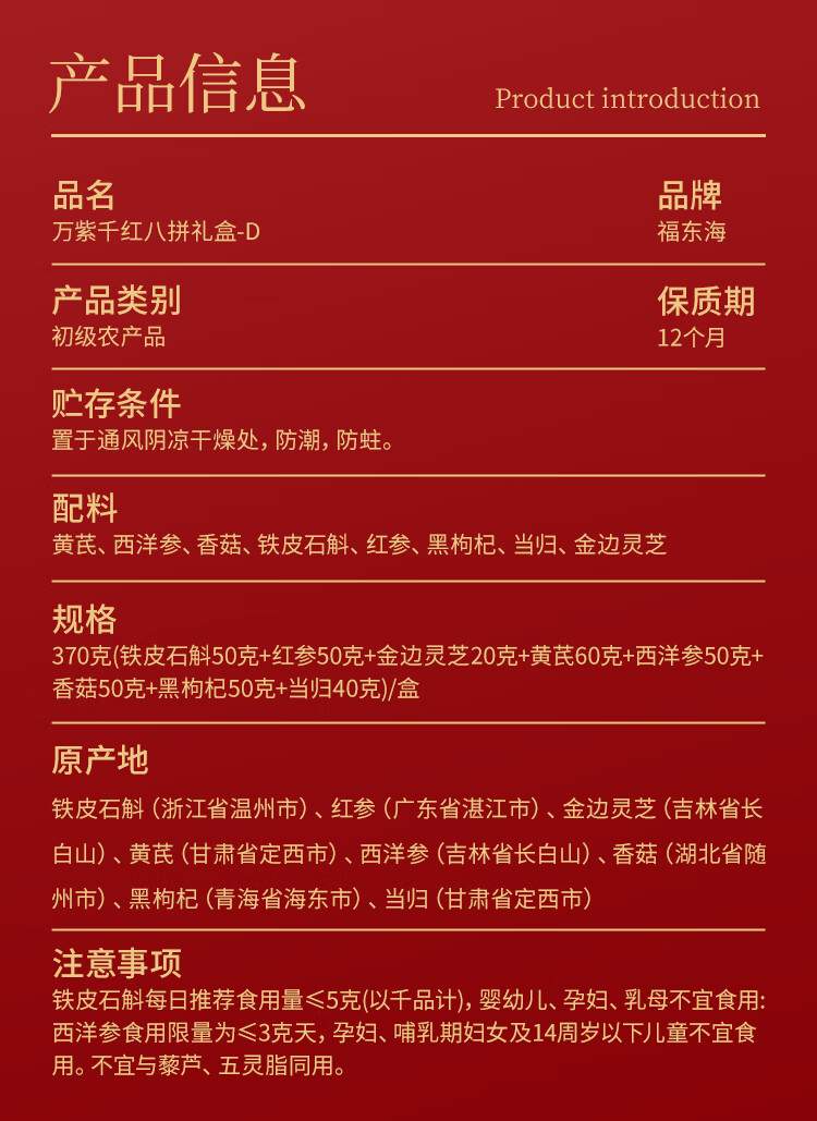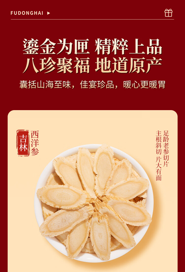 福东海西洋参石斛红参灵芝黑枸杞八拼礼盒370克 黄芪当归