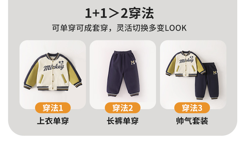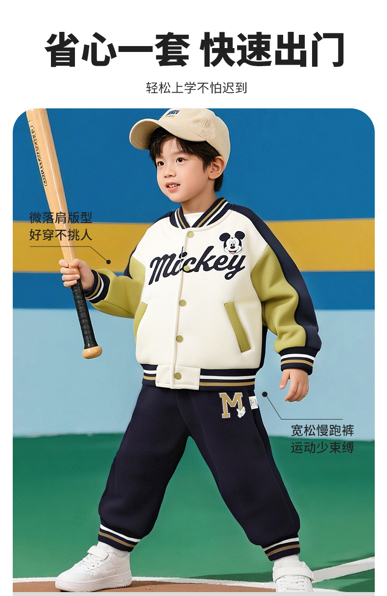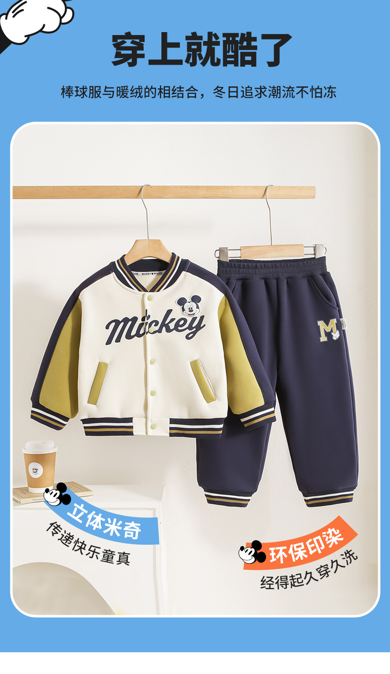 迪士尼25秋冬新款男童加绒保暖卫衣卫裤运动服ZD3ET049
