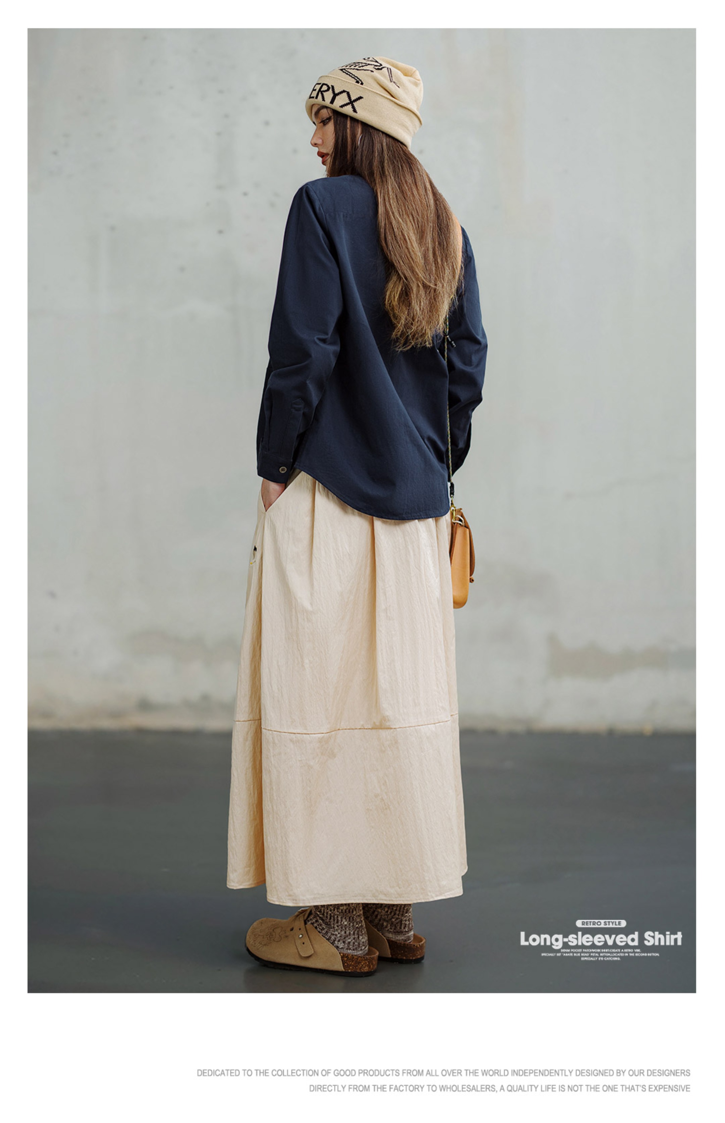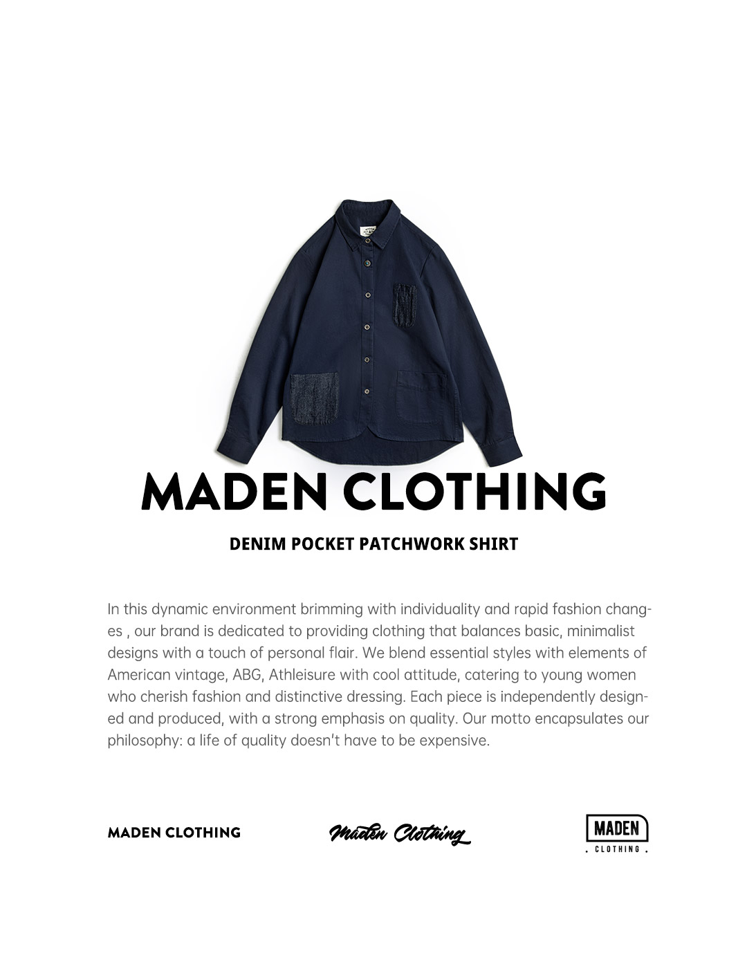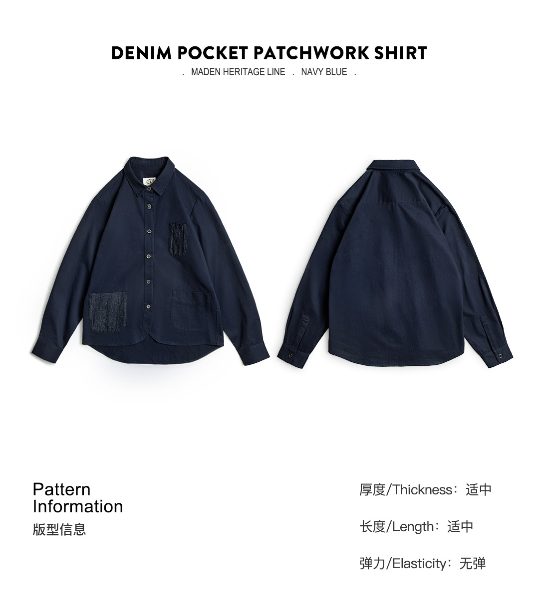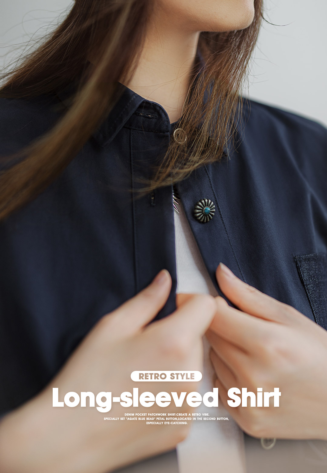 马登复古牛仔口袋拼接衬衫设计感休闲纯棉外套百搭叠穿上衣春秋女
