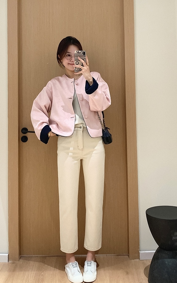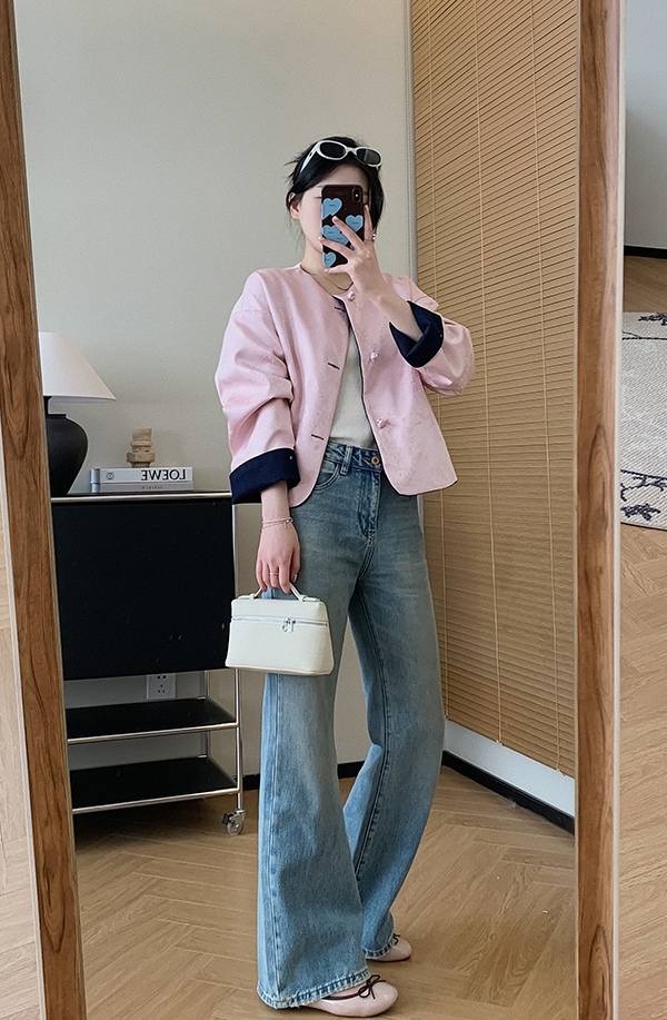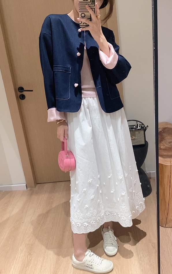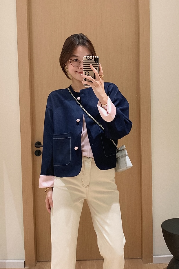 体现了国风韵味与现代摩登牛仔的碰撞,版型是短款!对身材包容性佳,显高比例。圆领大翻袖设计,修饰脸部轮廓,不挑年龄层次。