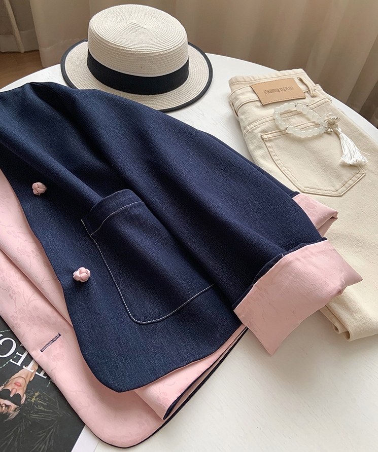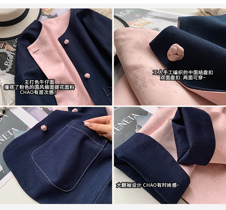 双面两穿缎面提花盘扣牛仔外套!新中式热度有多高大家都知道!