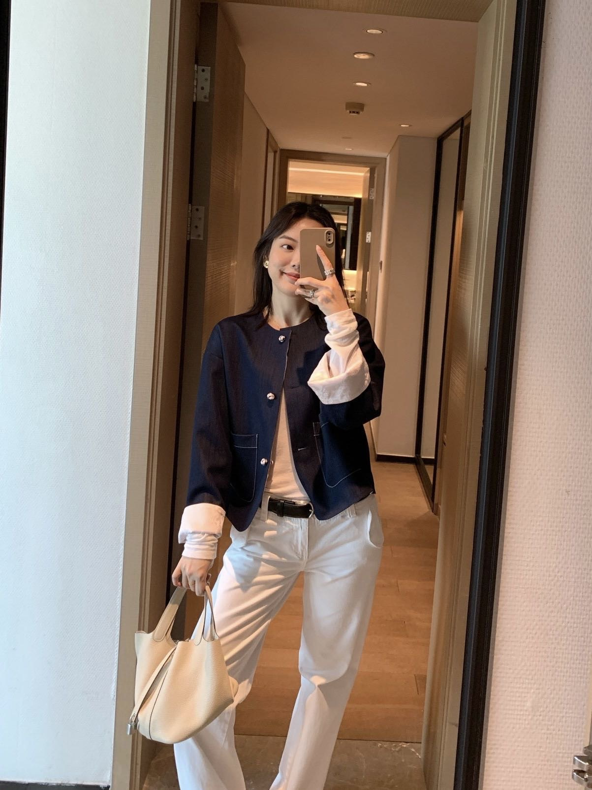 牛仔面两侧的口袋,遵循简约干练的原理,实用性拉满~