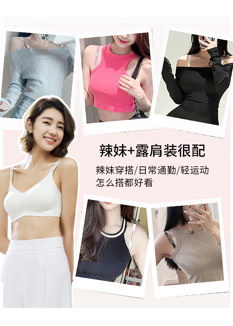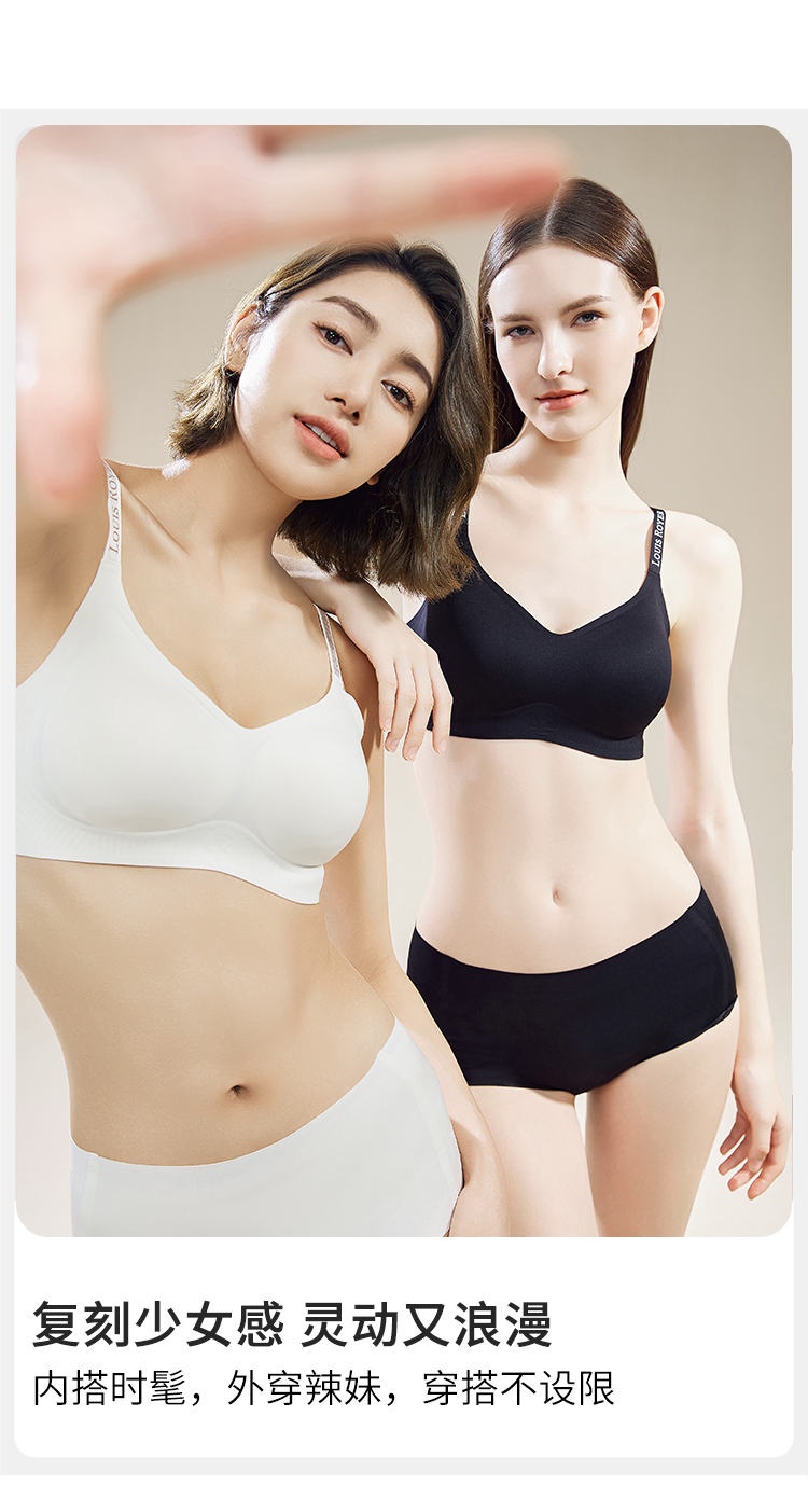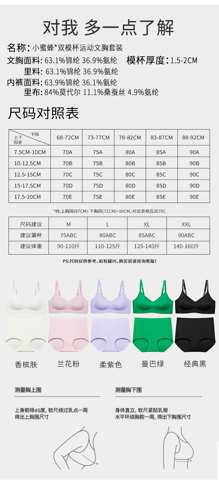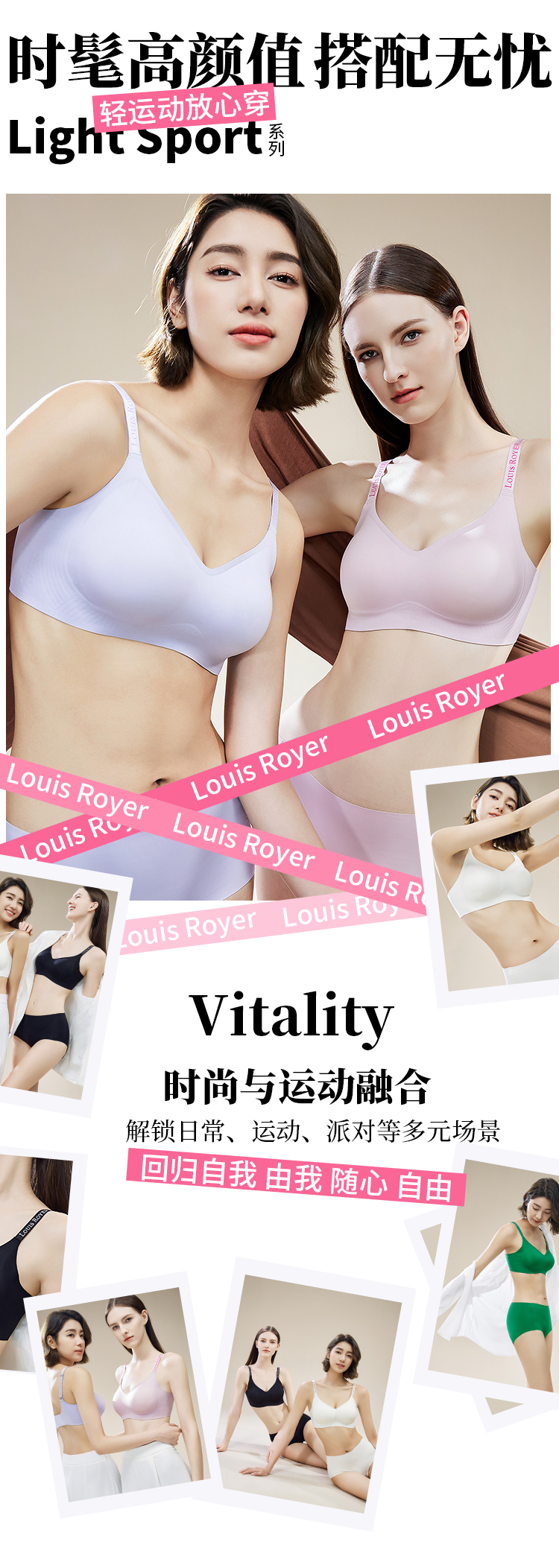 【到手69.9元】法国利蜂/LOUIS ROYER 小蜜蜂字母肩带双模杯运动文胸套装 5色可选