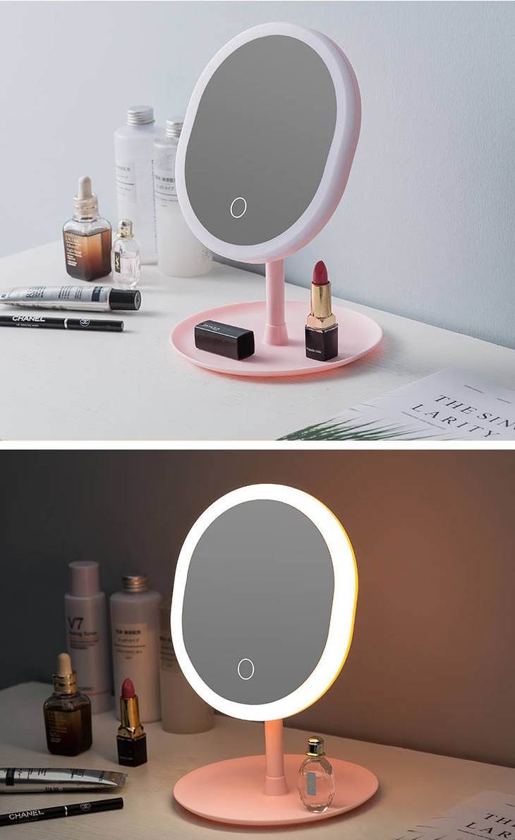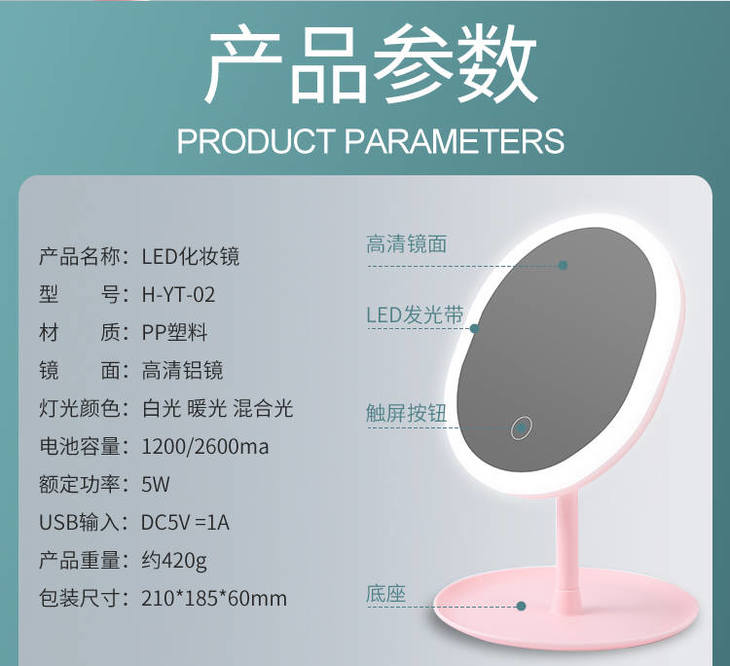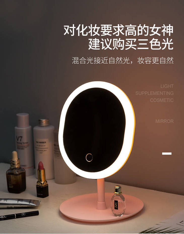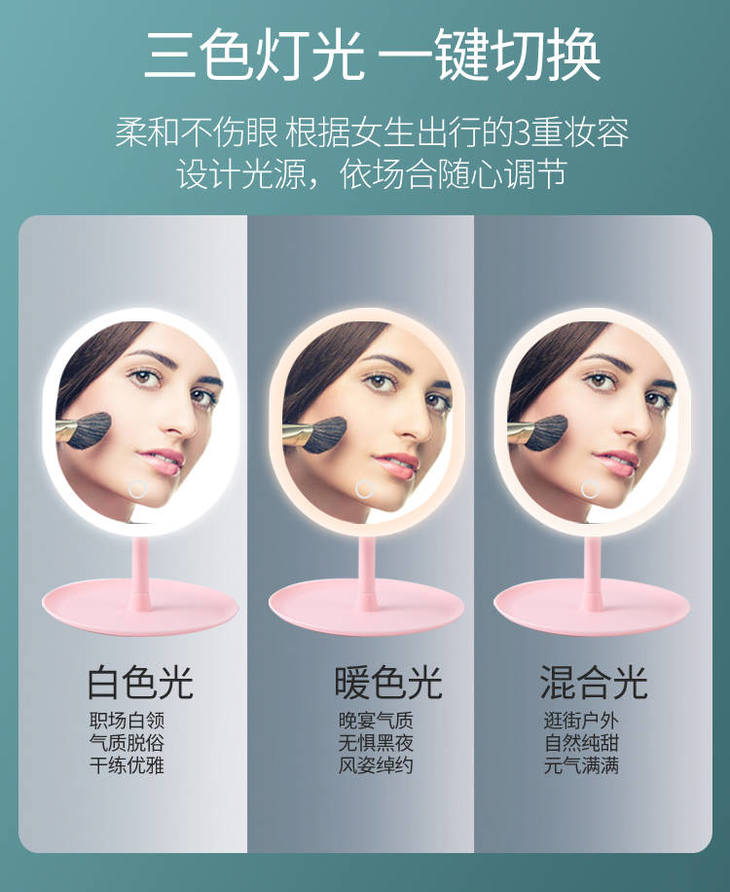 镜子化妆镜带灯LED补光 台式欧式大号学生少女宿舍桌面梳妆公主镜