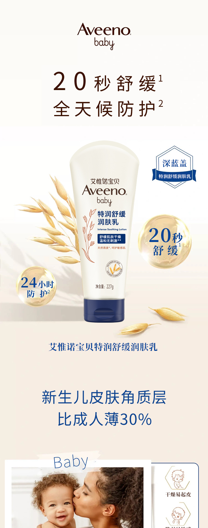 Aveeno艾惟诺宝贝特润舒缓润肤乳227g婴幼儿身体乳液深蓝艾维诺燕麦护肤