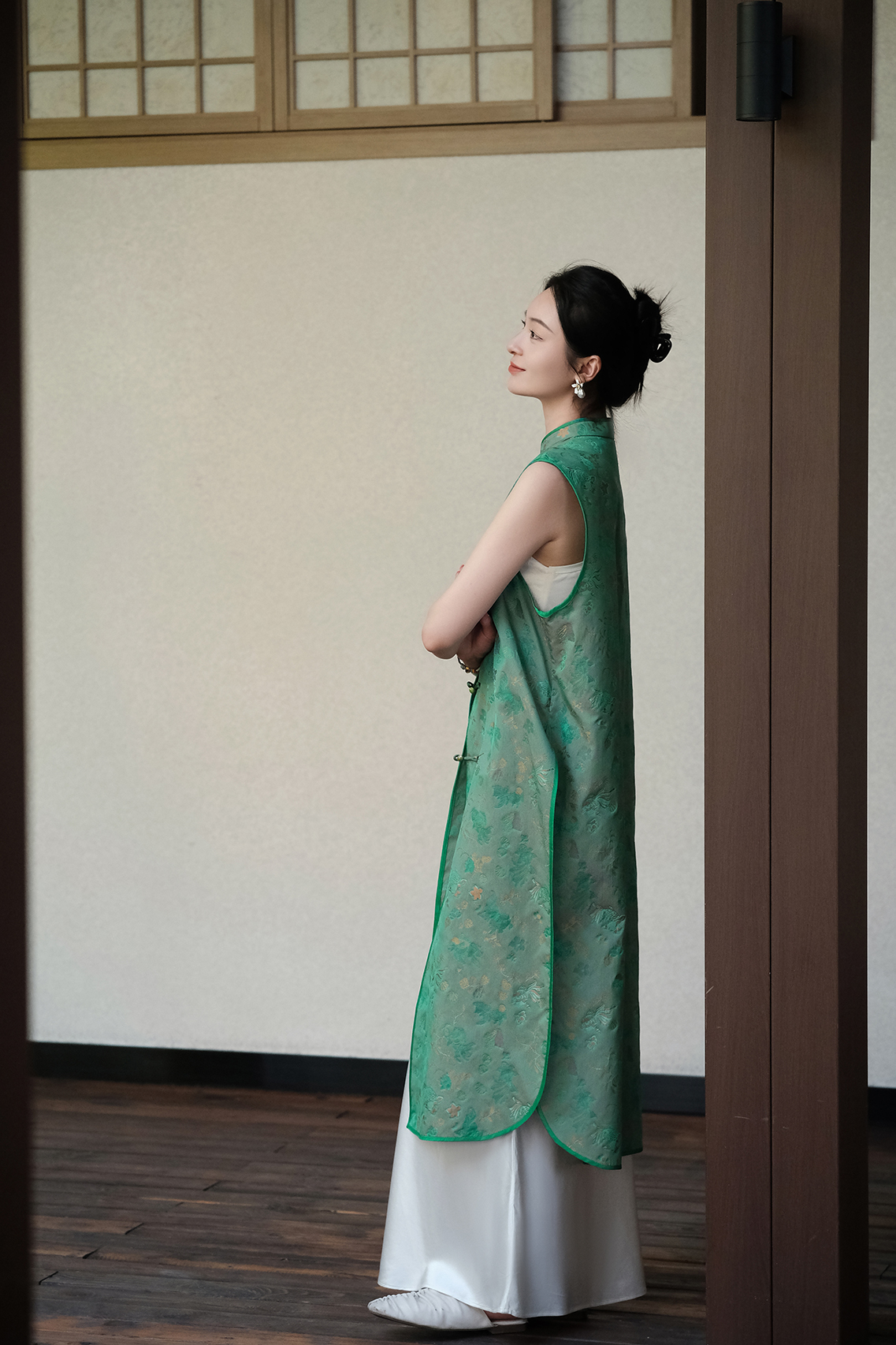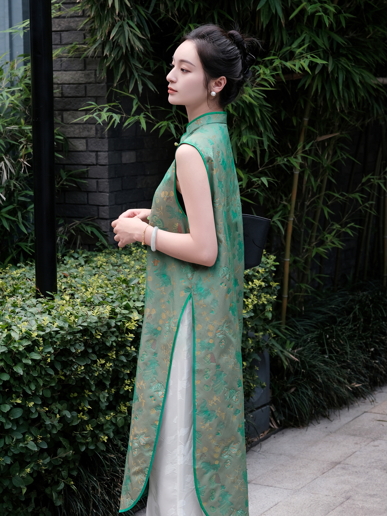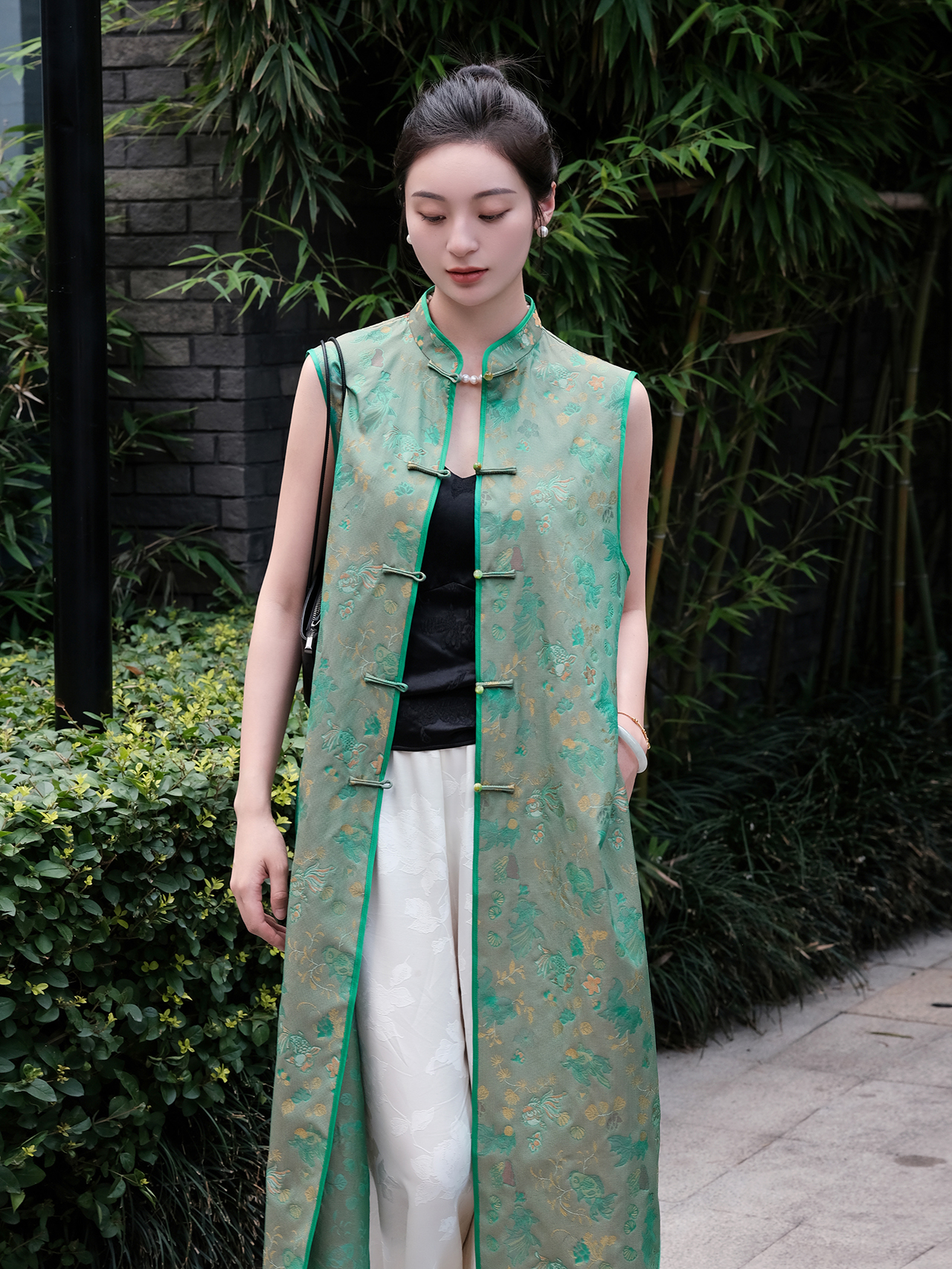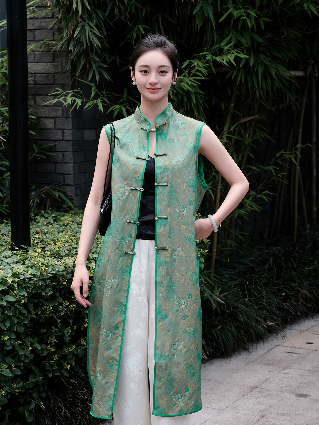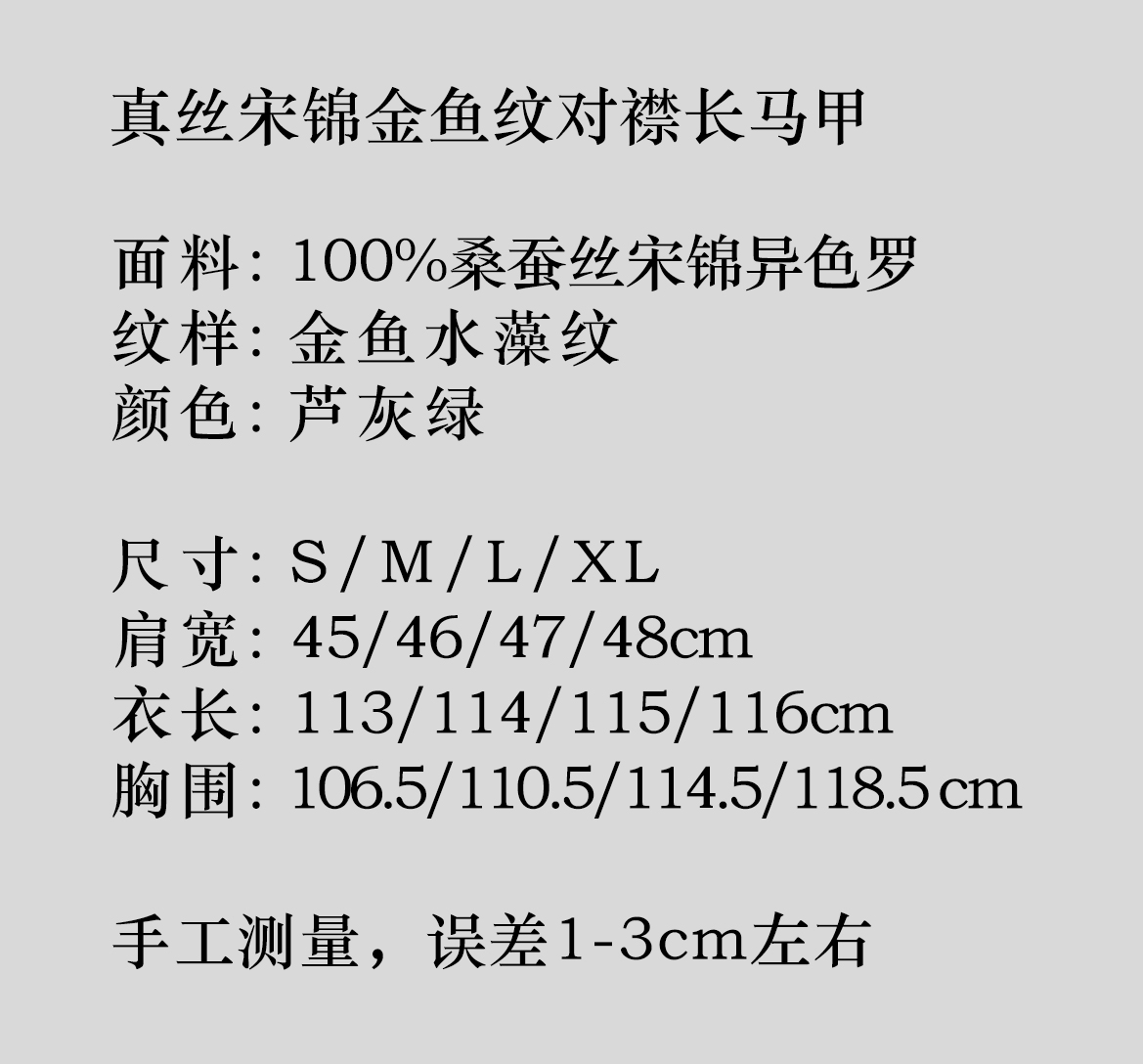 盛唐婧 |真丝宋锦金鱼纹对襟长马甲