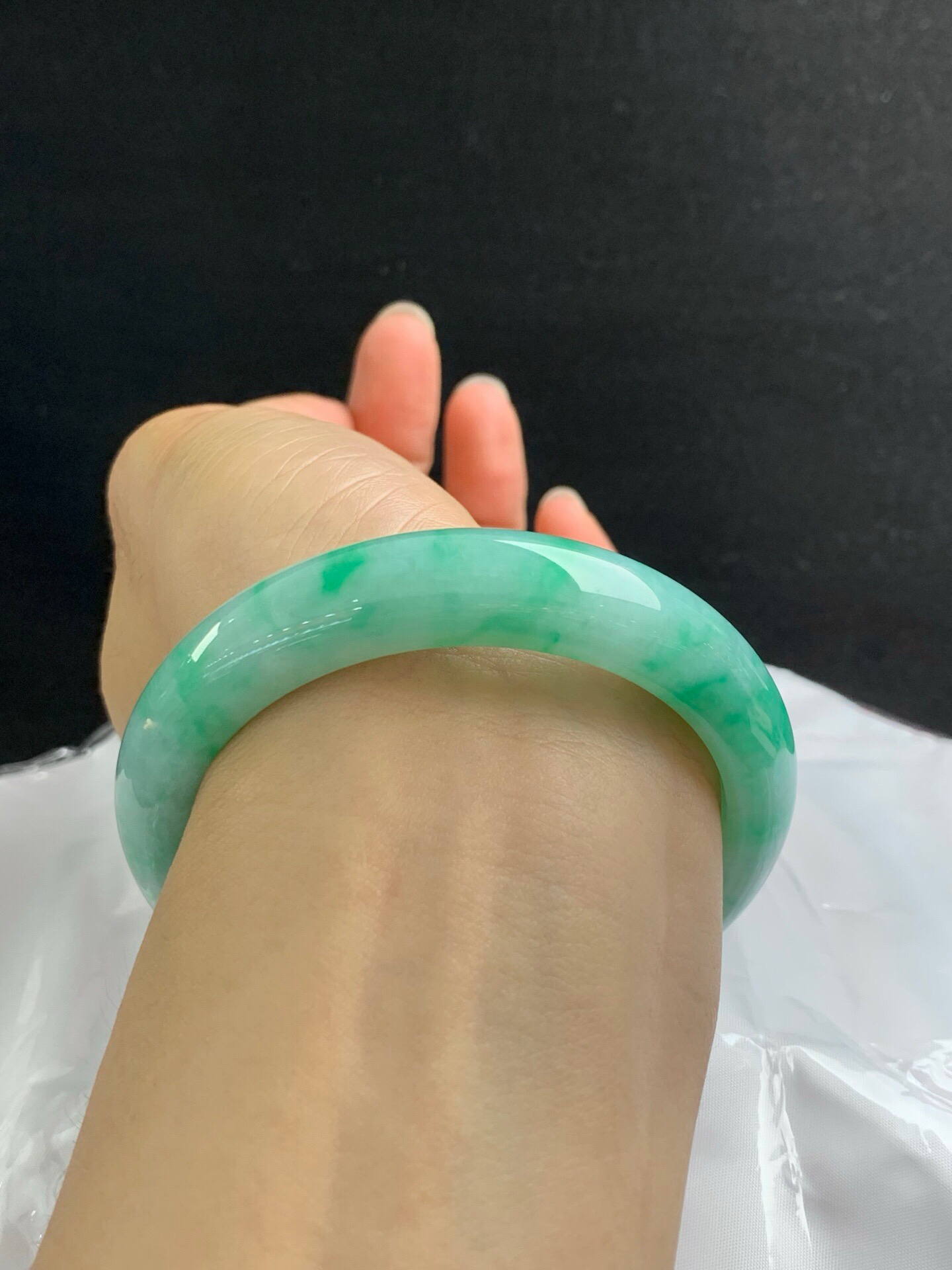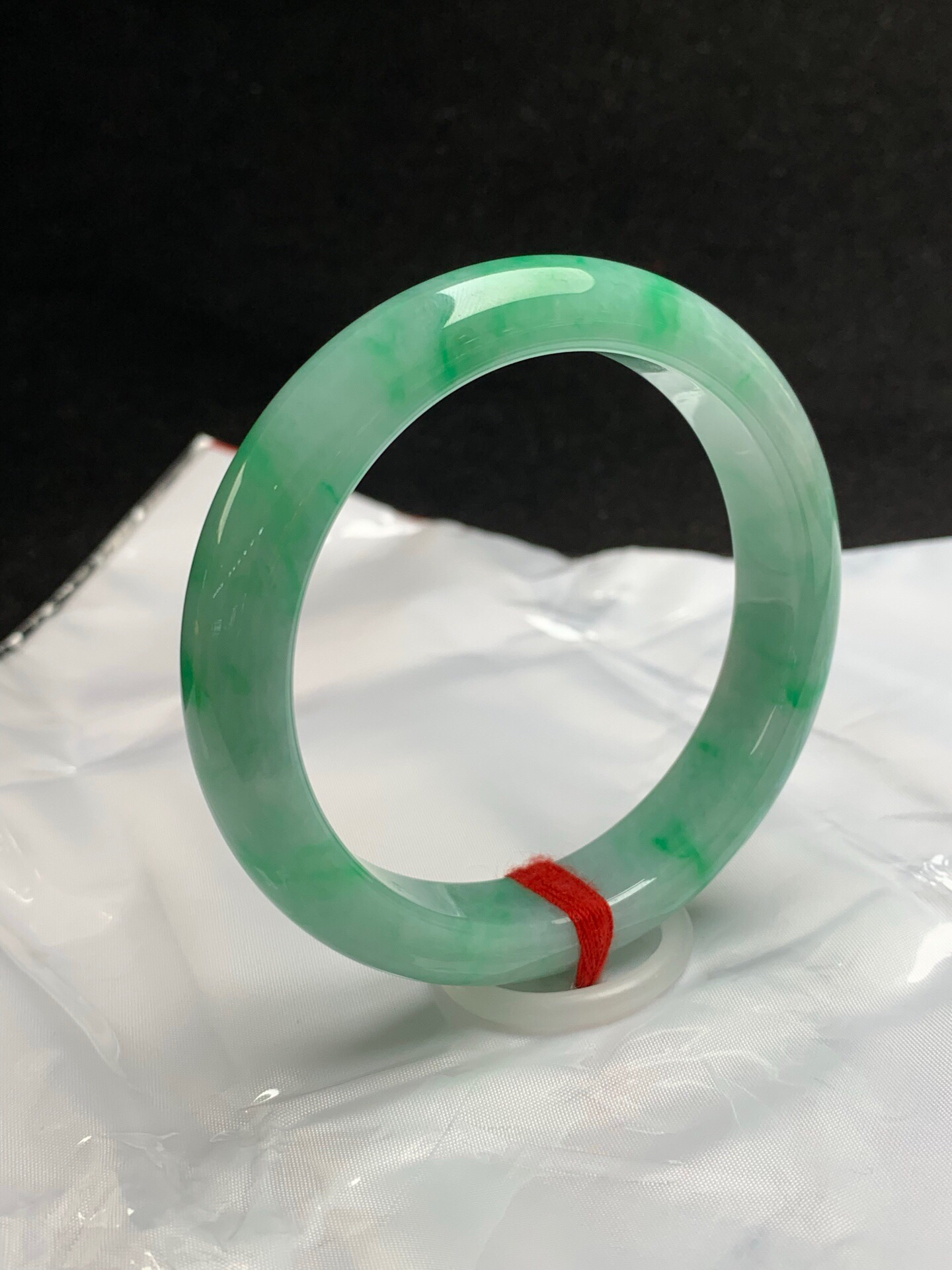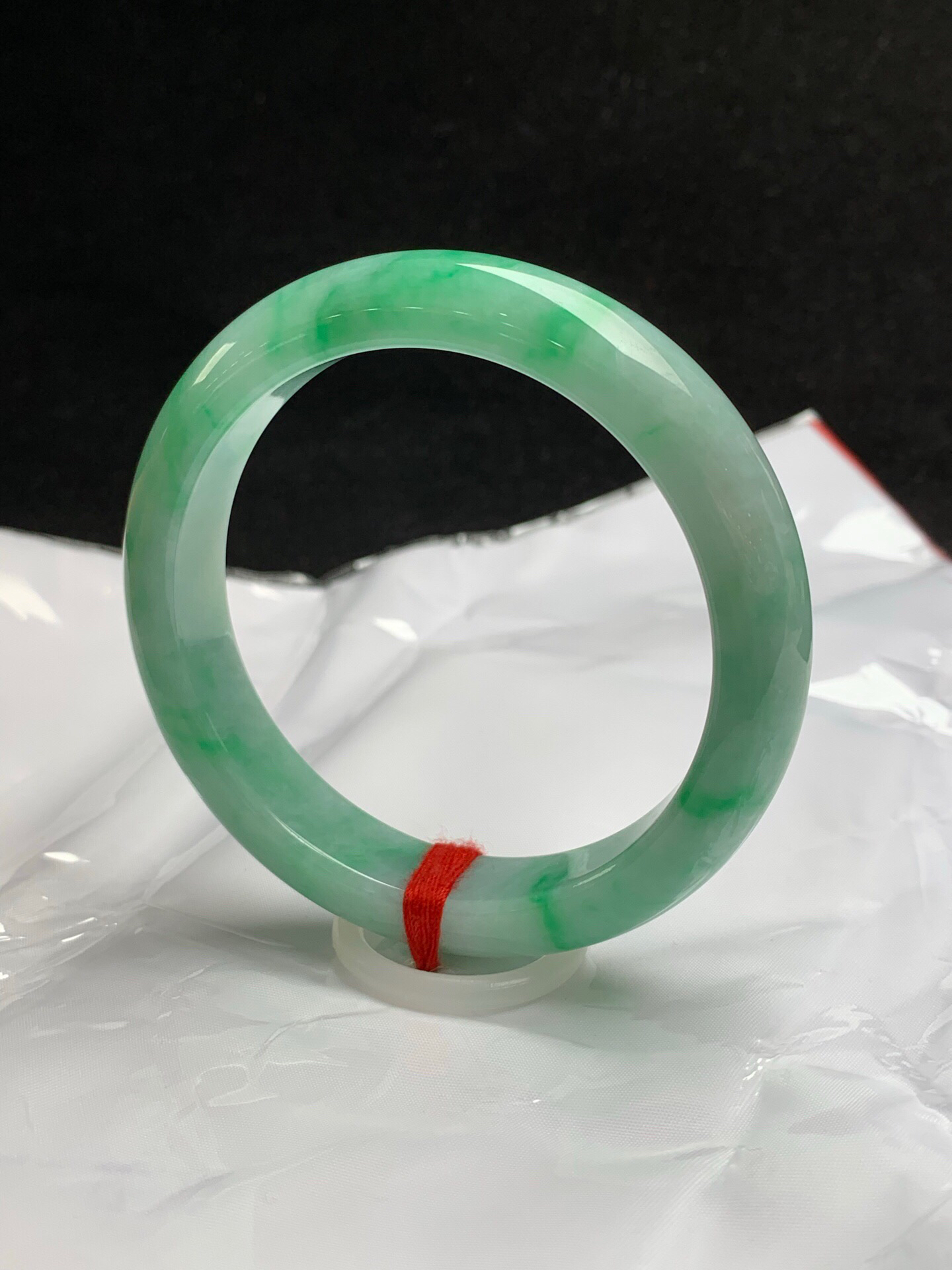 620477,58圈口,细糯满绿正圈平安镯,满绿底色飘阳绿花 ,色泽浓郁,底子细腻,尺寸:58-13.2-8.6,超值价💰32400 #优石客珠宝#香玉荟萃