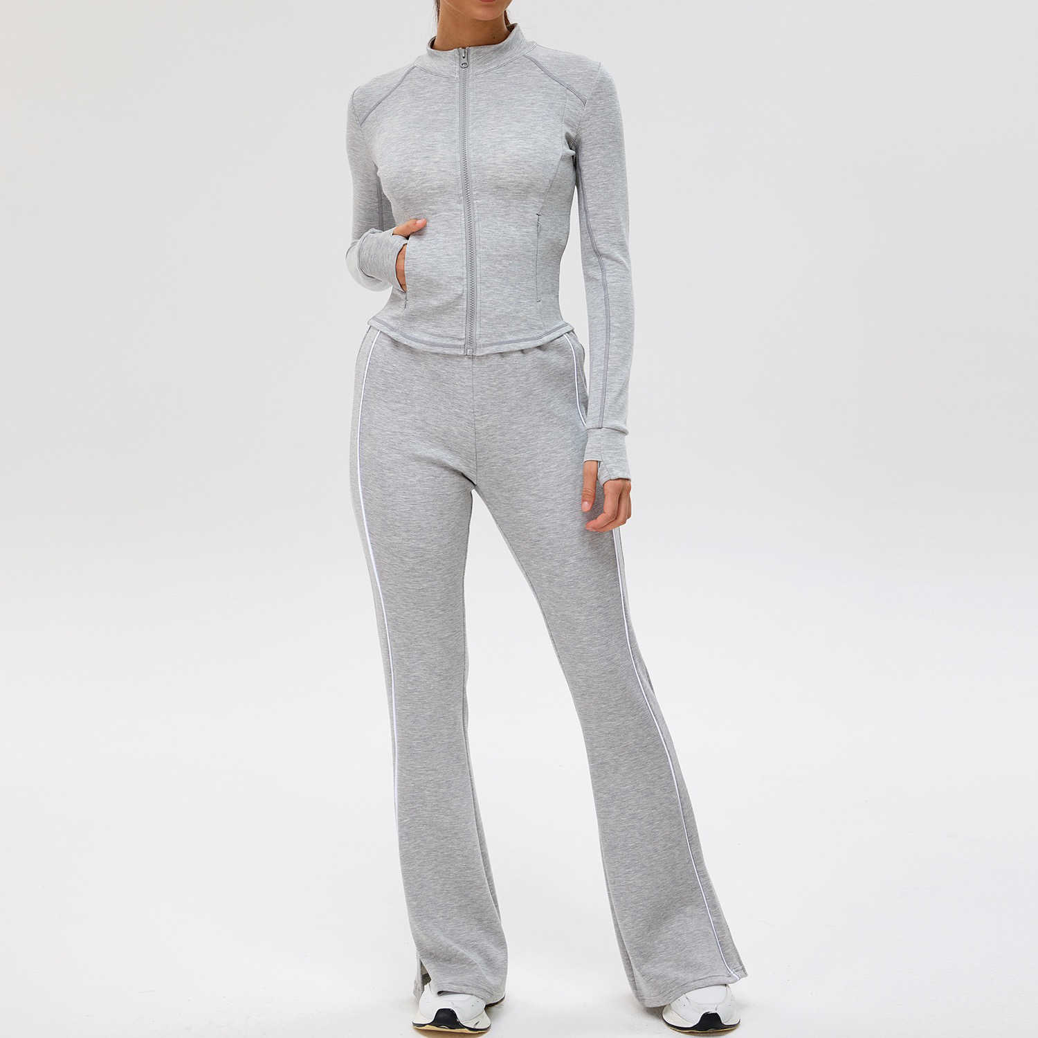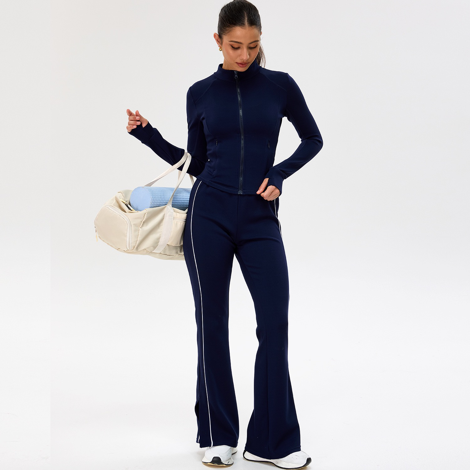 秋冬微喇女高腰撞色阔腿运动长裤户外跑步健身瑜伽喇叭长裤SYFTM0287