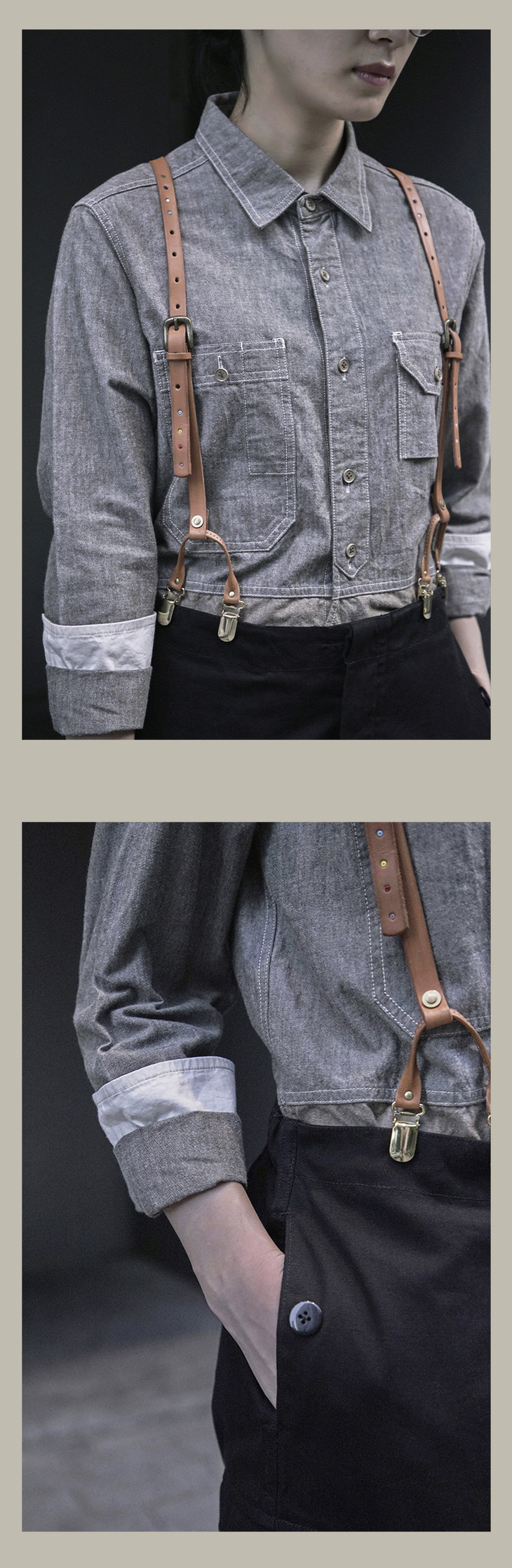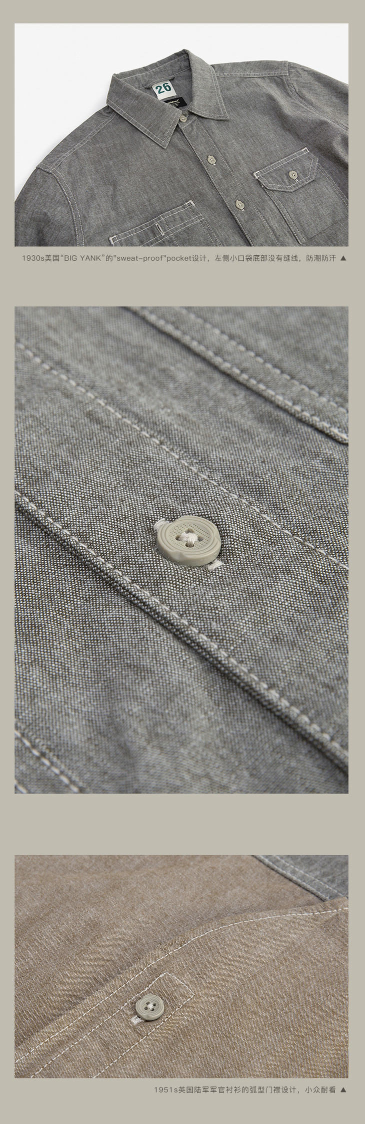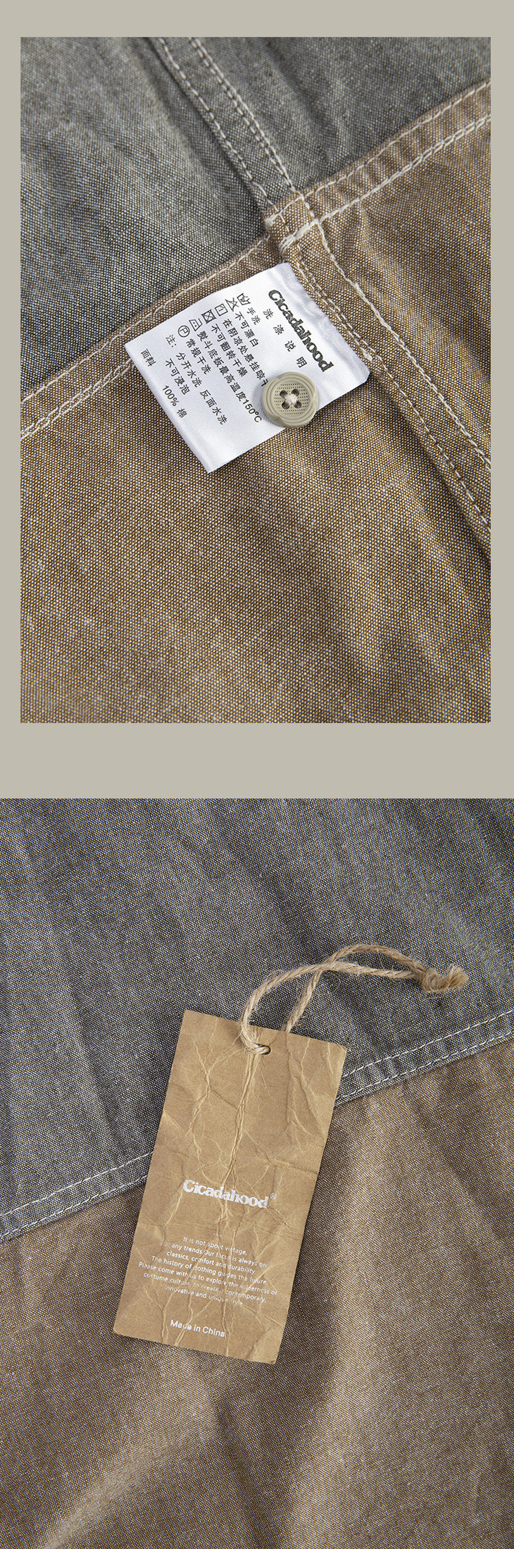 Cicadahood日本进口牛津纺英式复古 工装拼接衬衫 灰色/咖色