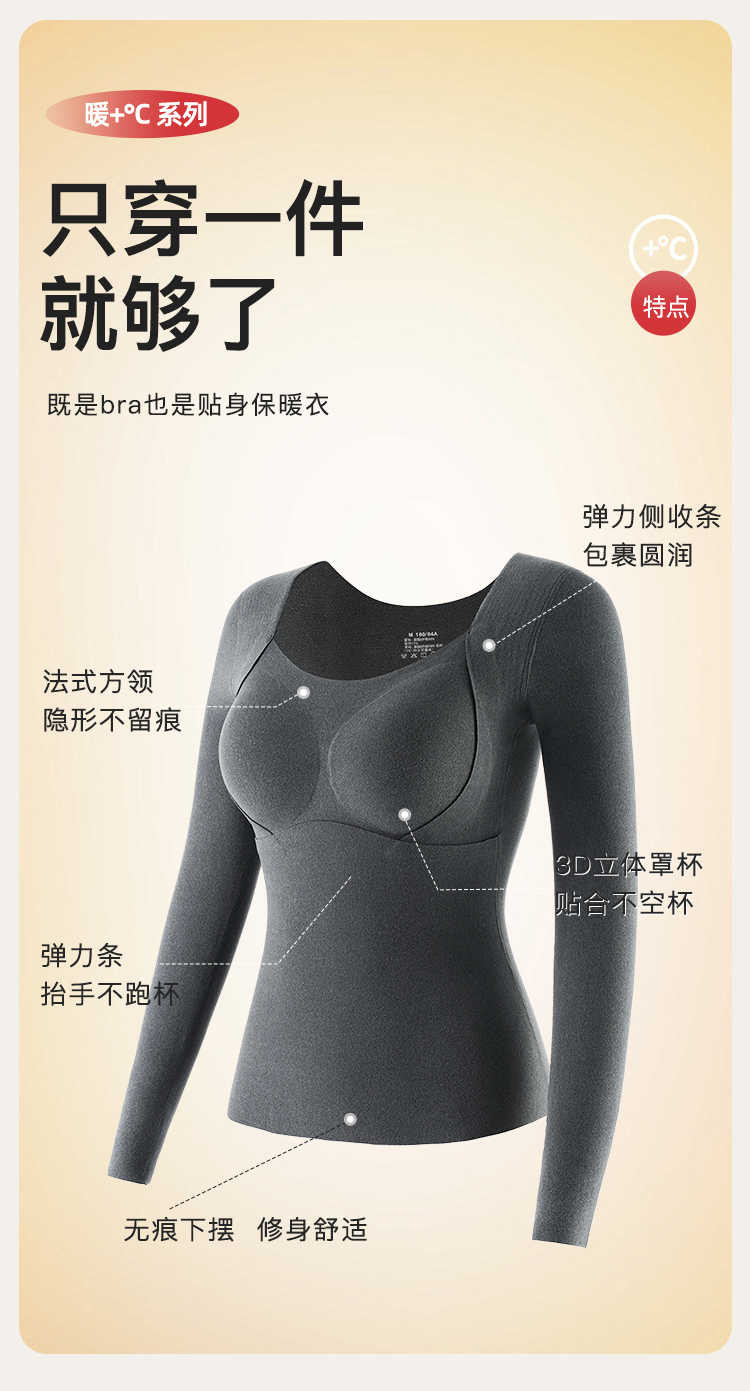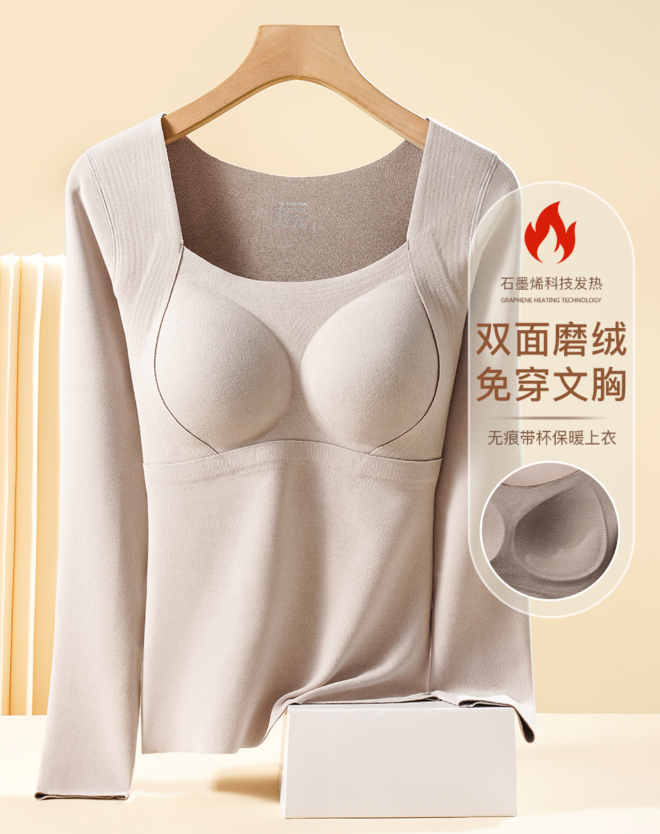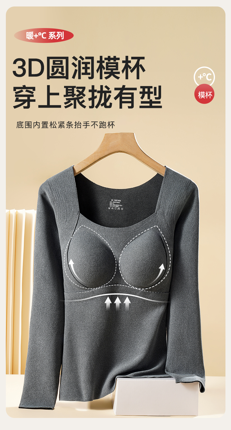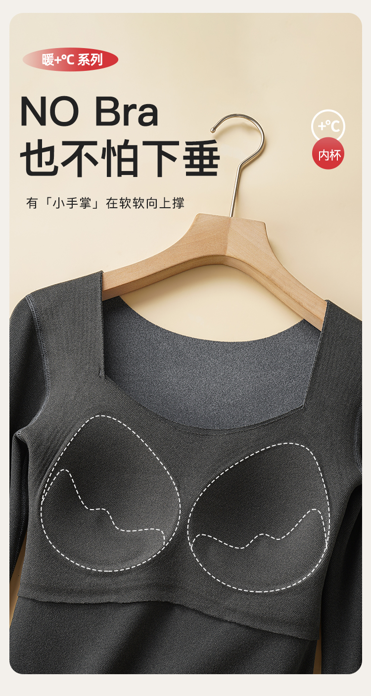 【含石墨烯蓄暖】带胸垫女士保暖上衣聚拢有型修身显瘦百搭秋冬8866侧收提拉保暖上衣