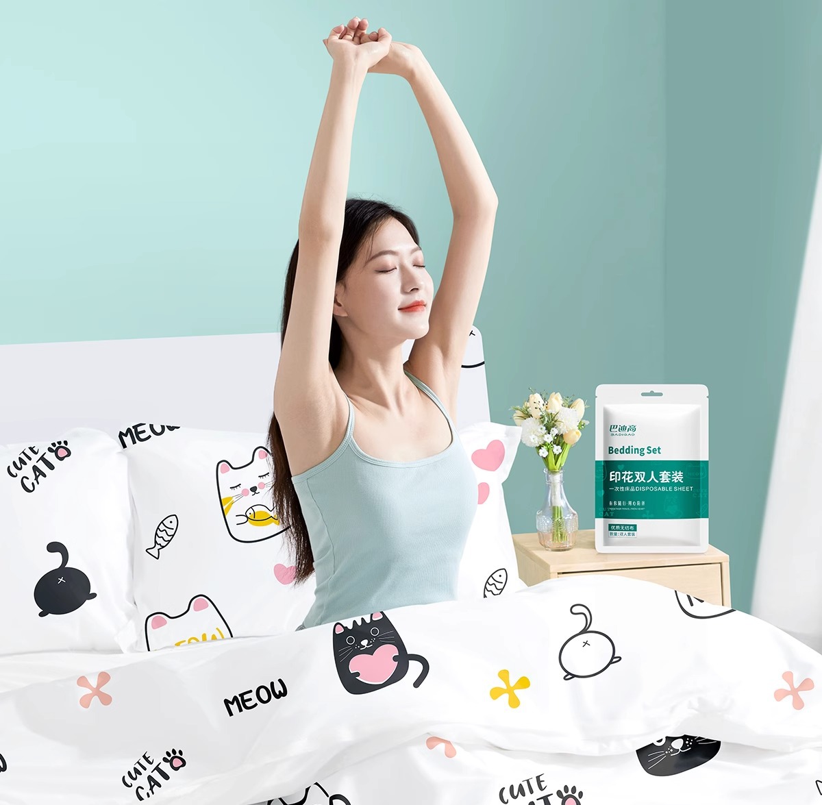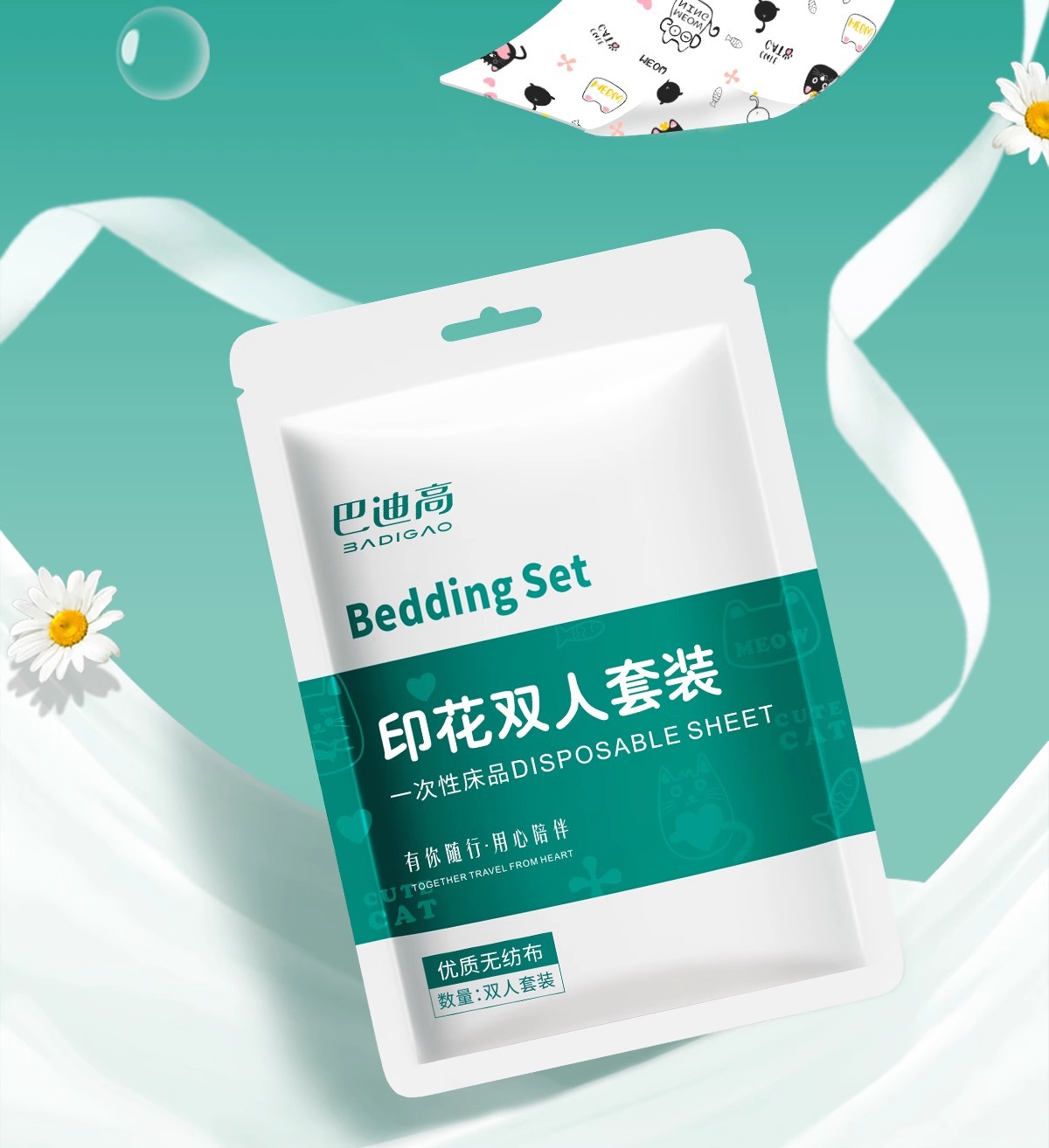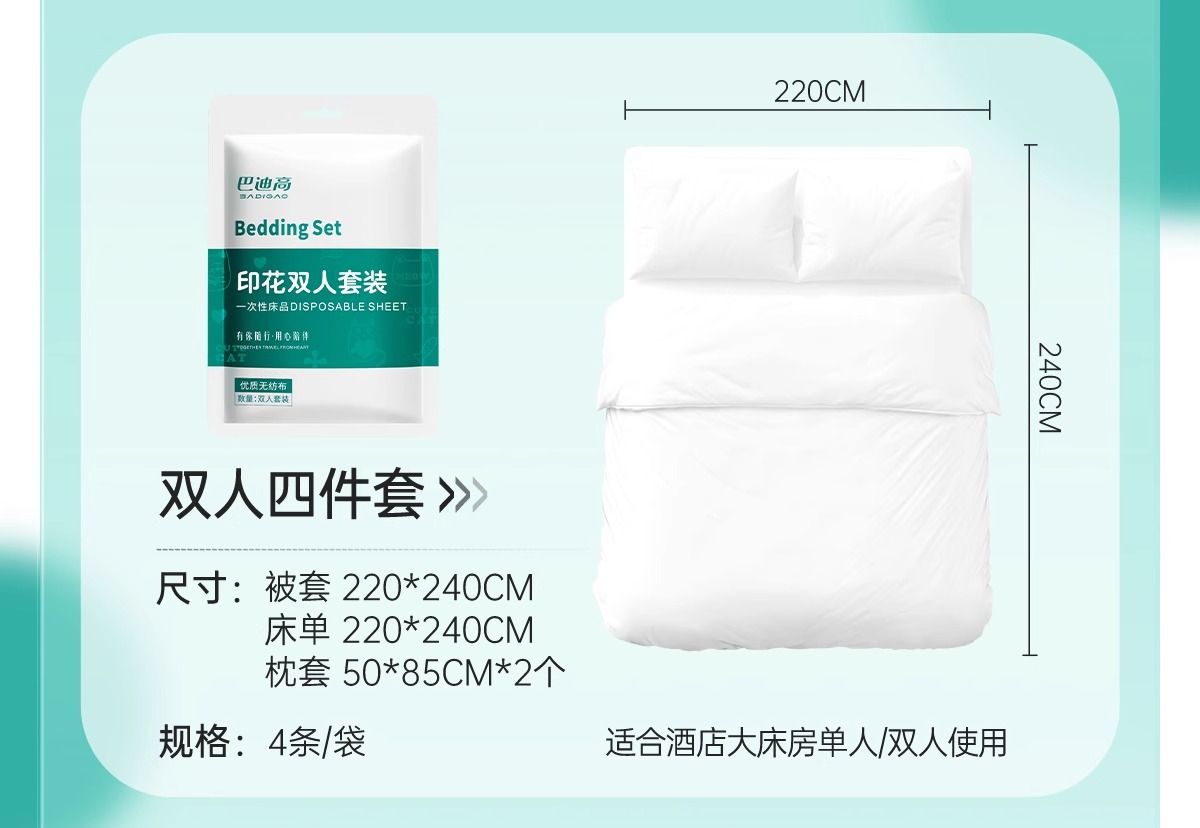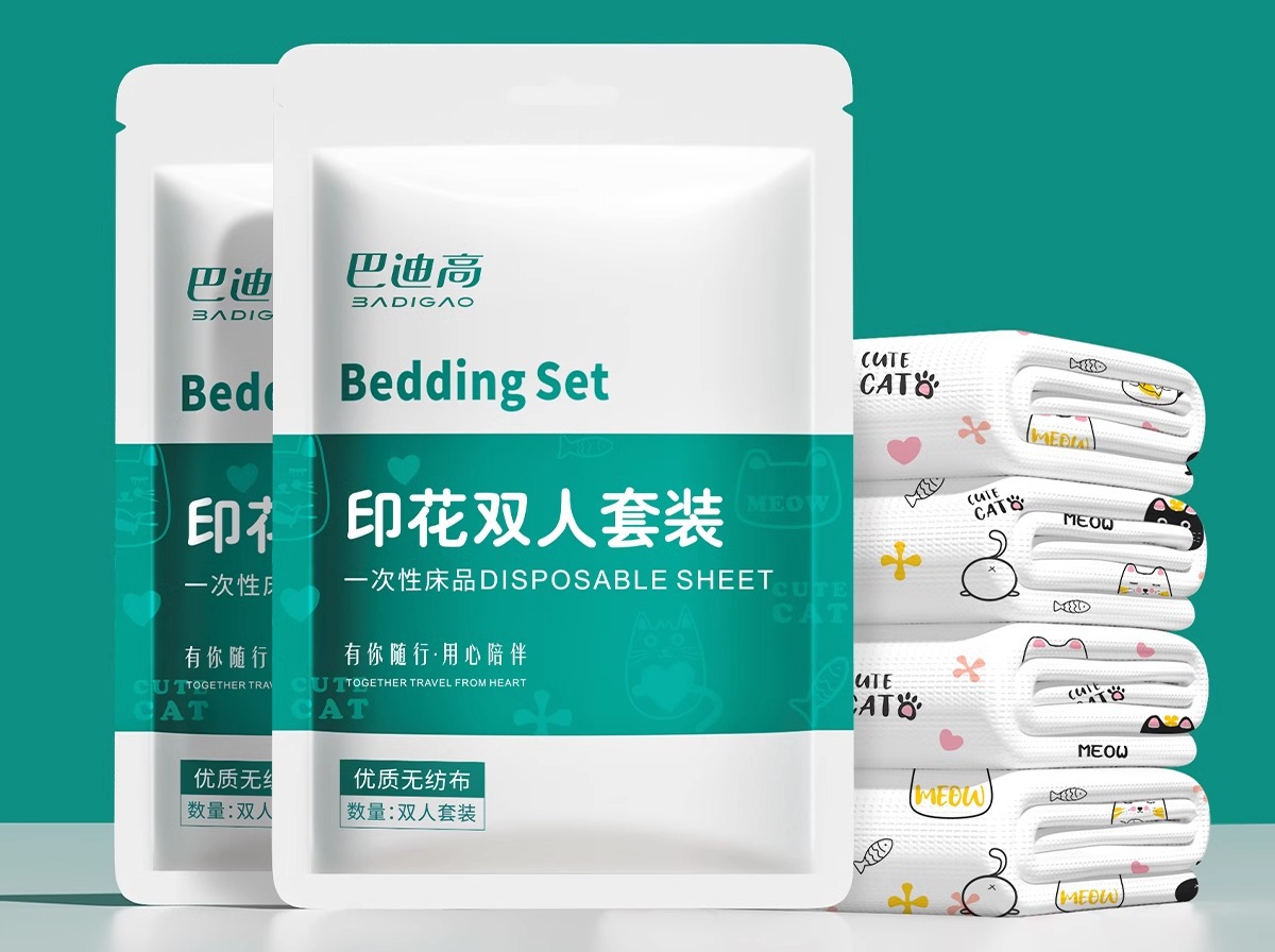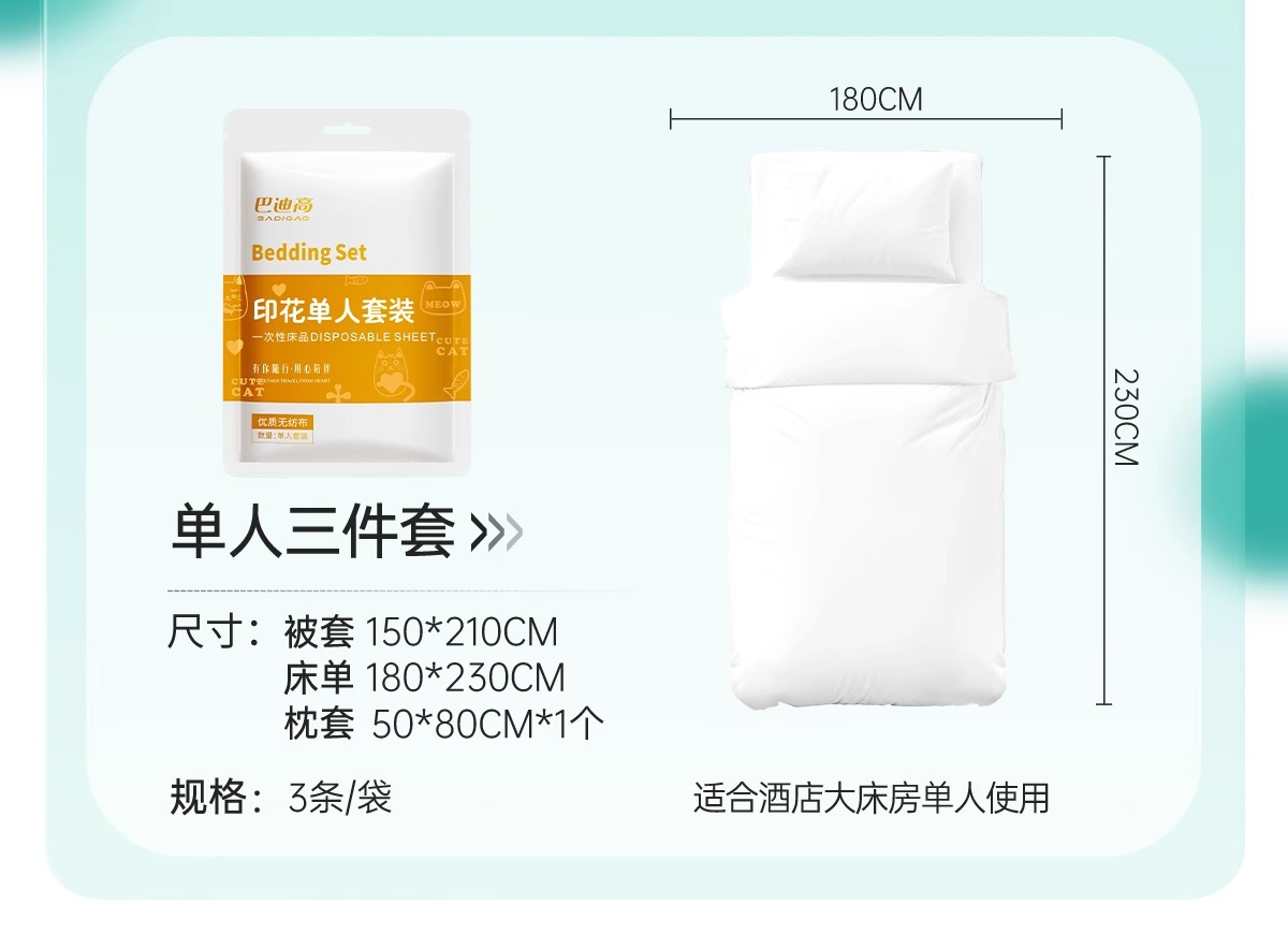 巴迪高一次性单人三件套 加厚印花小熊酒店旅行床上用品 隔脏便携