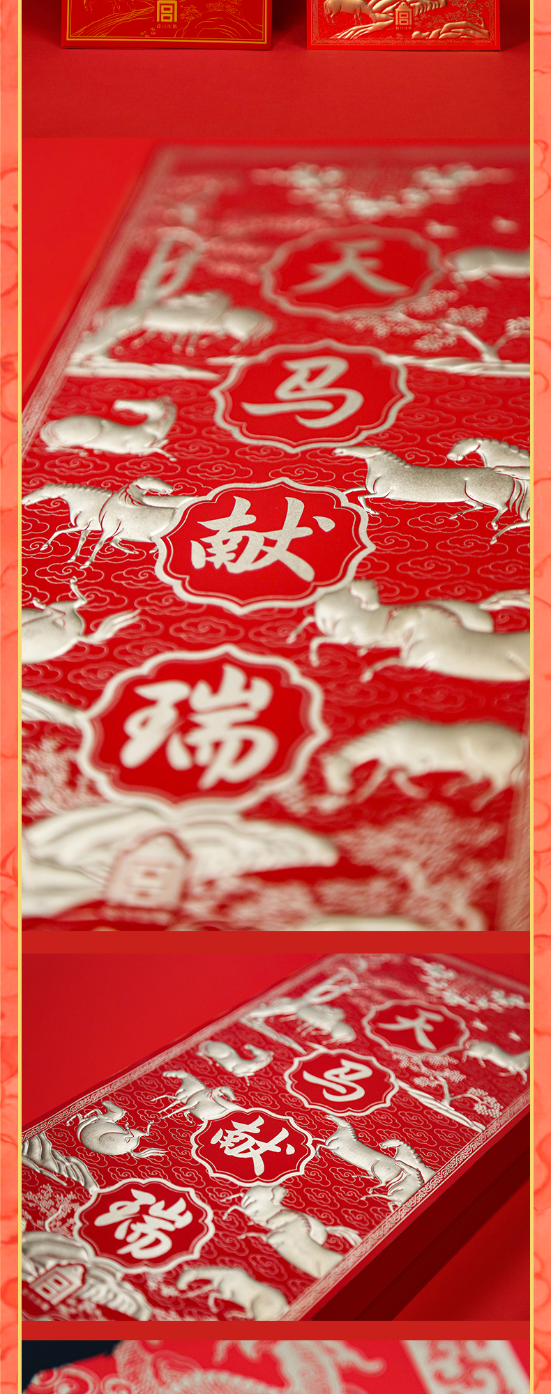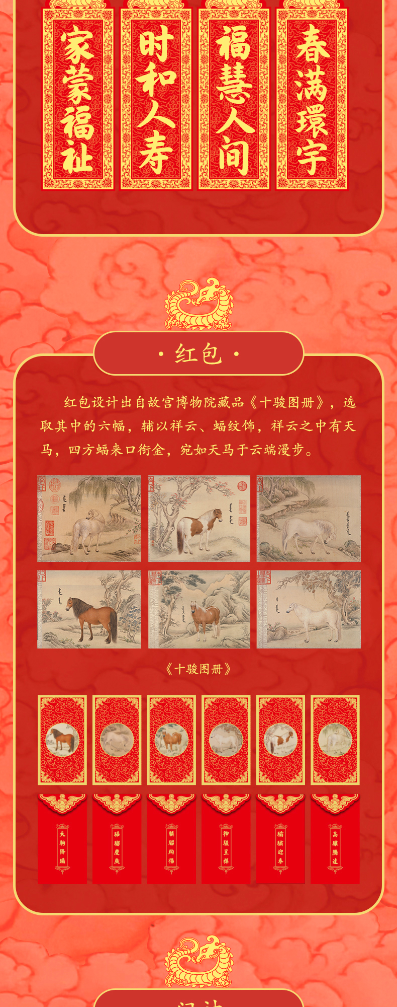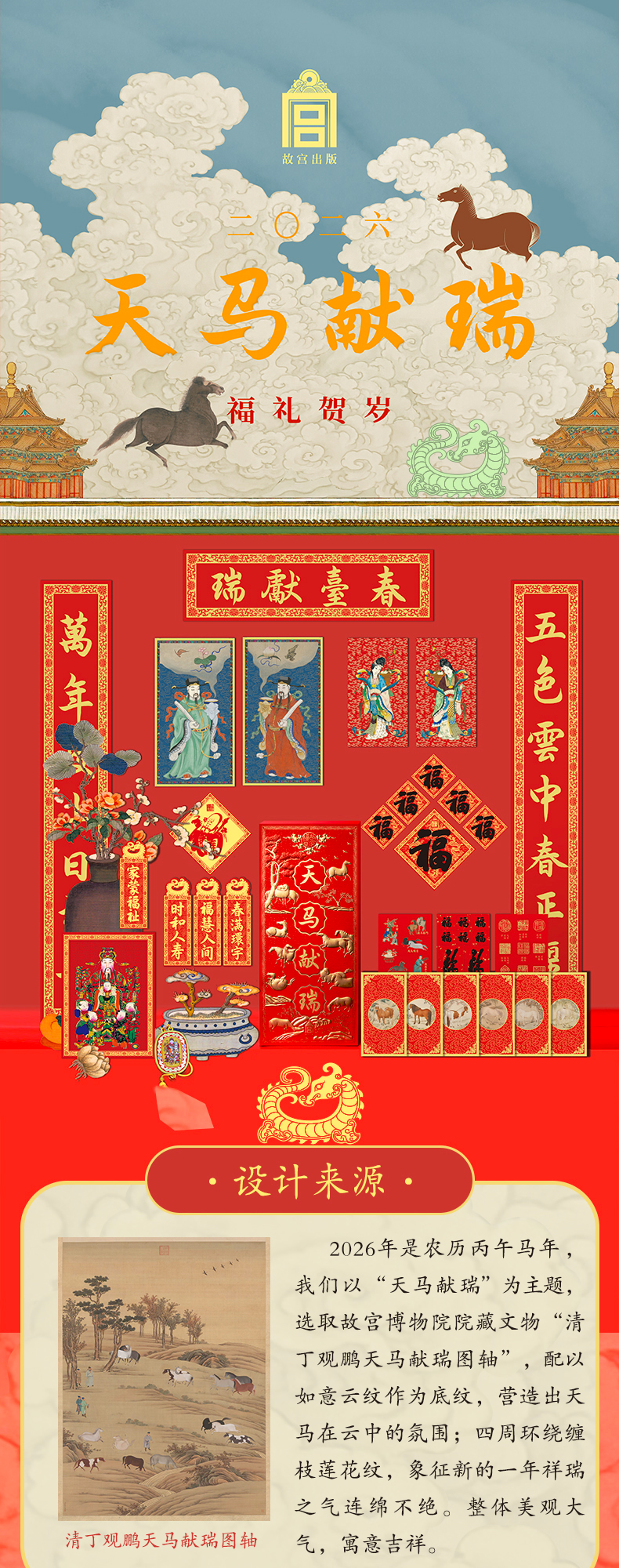 2026年故宫福盒《天马献瑞》,盒面选自故宫博物院藏品:丁观鹏天马献瑞图轴,背面是缂丝乾隆岁朝清供图。
