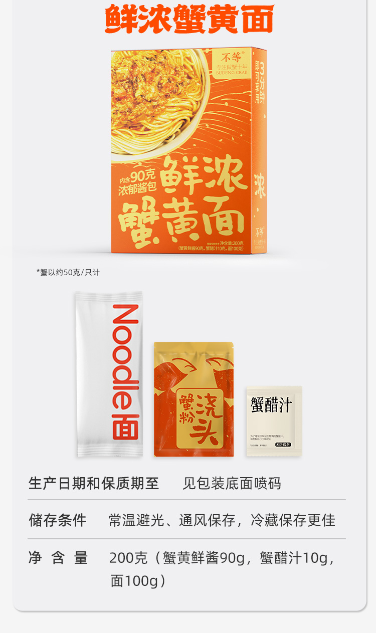 【不等】鲜浓蟹黄面 大闸蟹蟹肉蟹黄浓郁蟹黄酱包方便速食200g/盒
