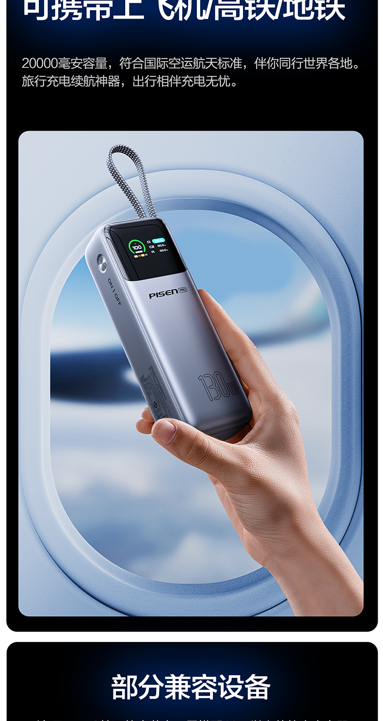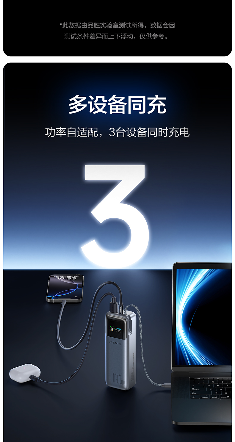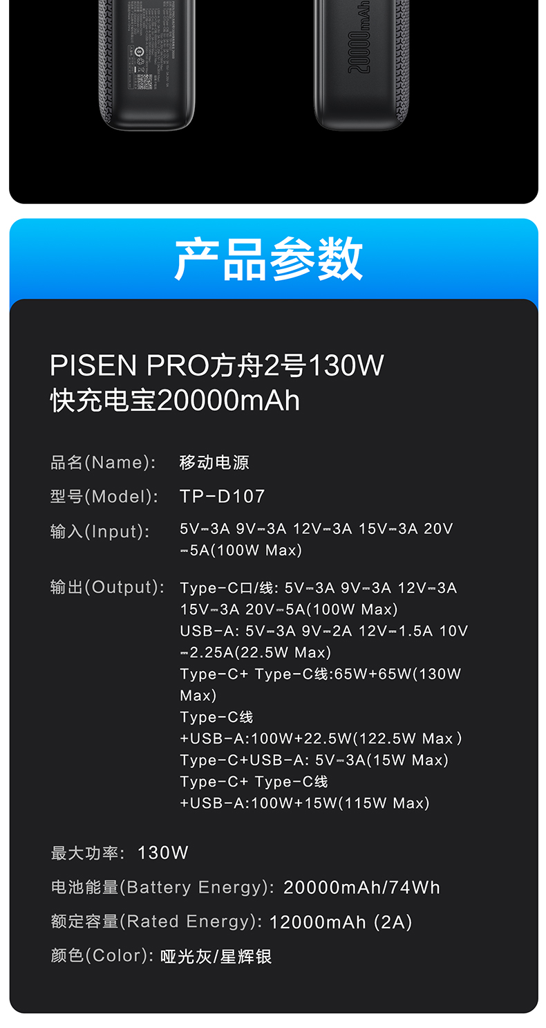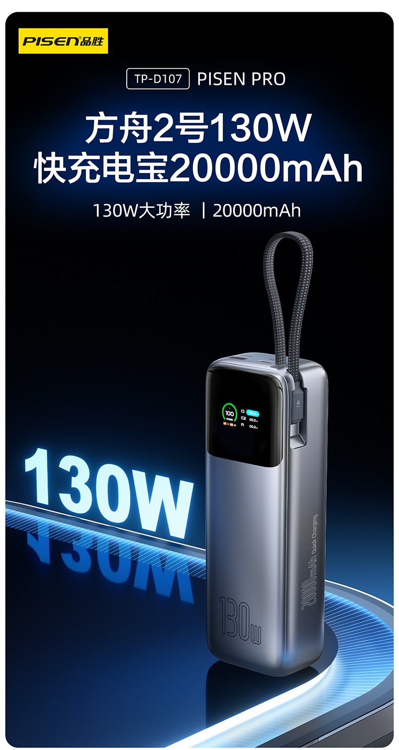 品胜 方舟2号130W快充电宝20000毫安 支持苹果小米华为荣耀闪充充电宝
