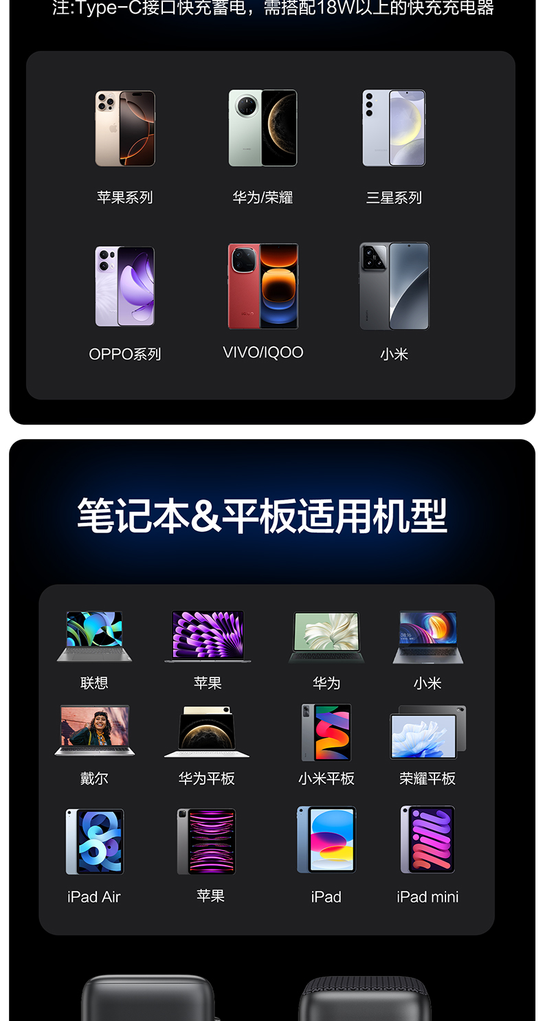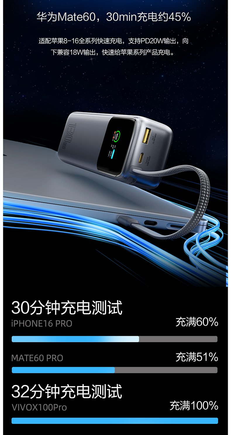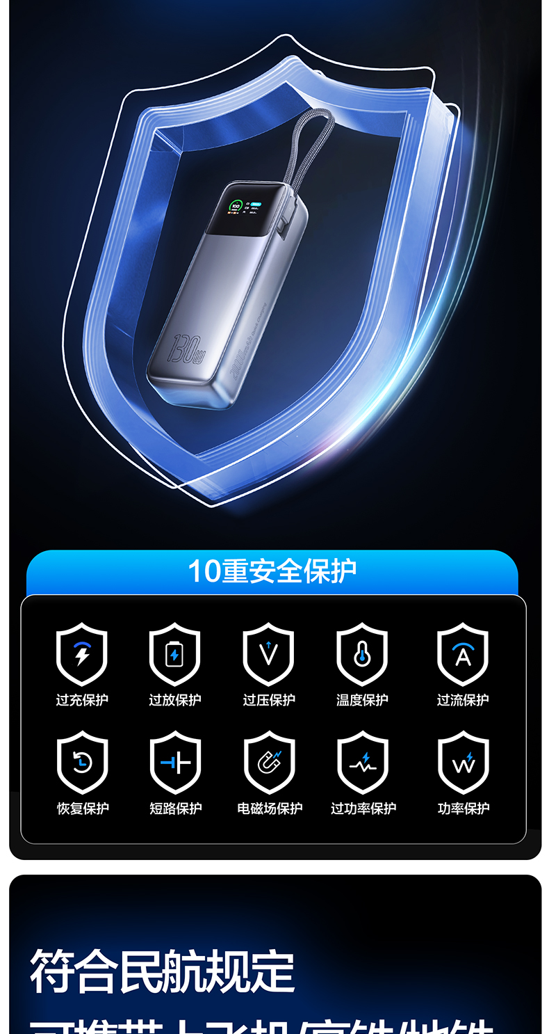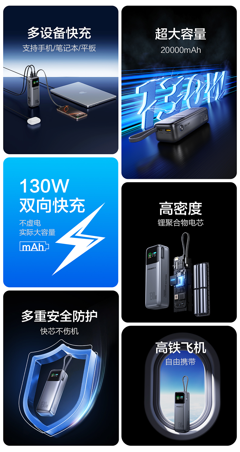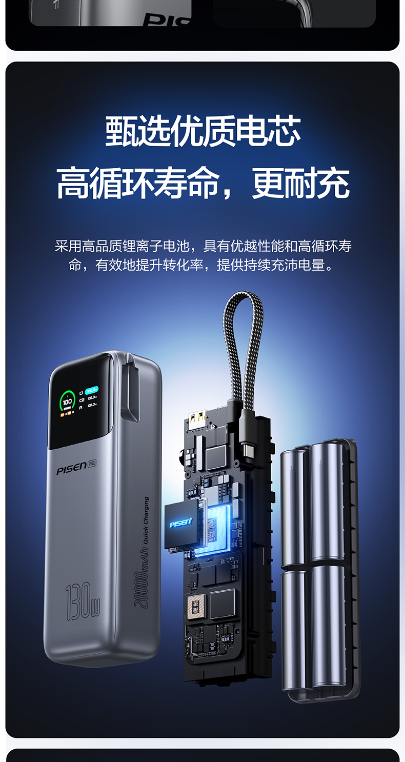 品胜 方舟2号130W快充电宝20000毫安 支持苹果小米华为荣耀闪充充电宝
