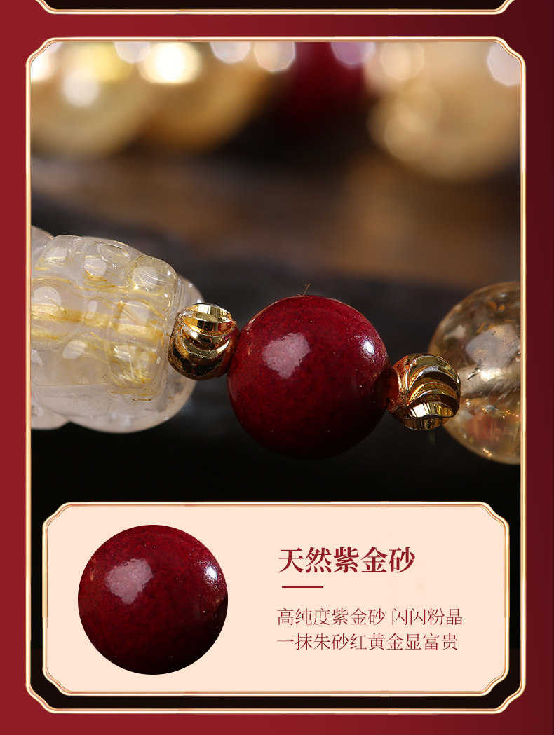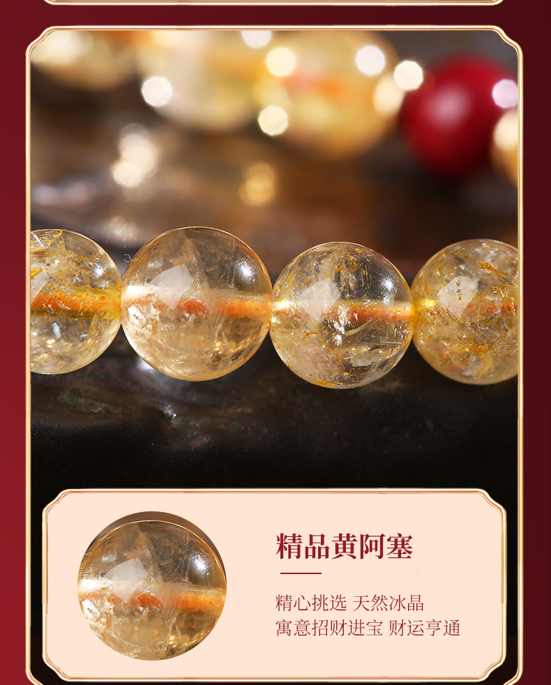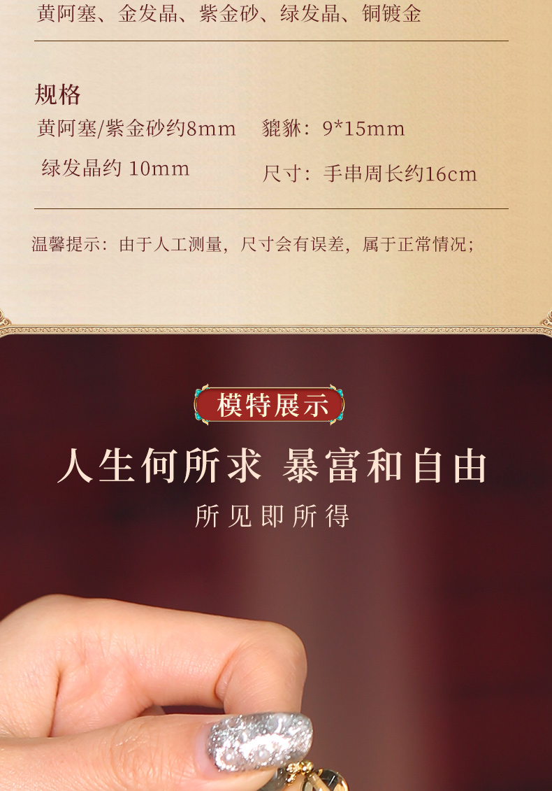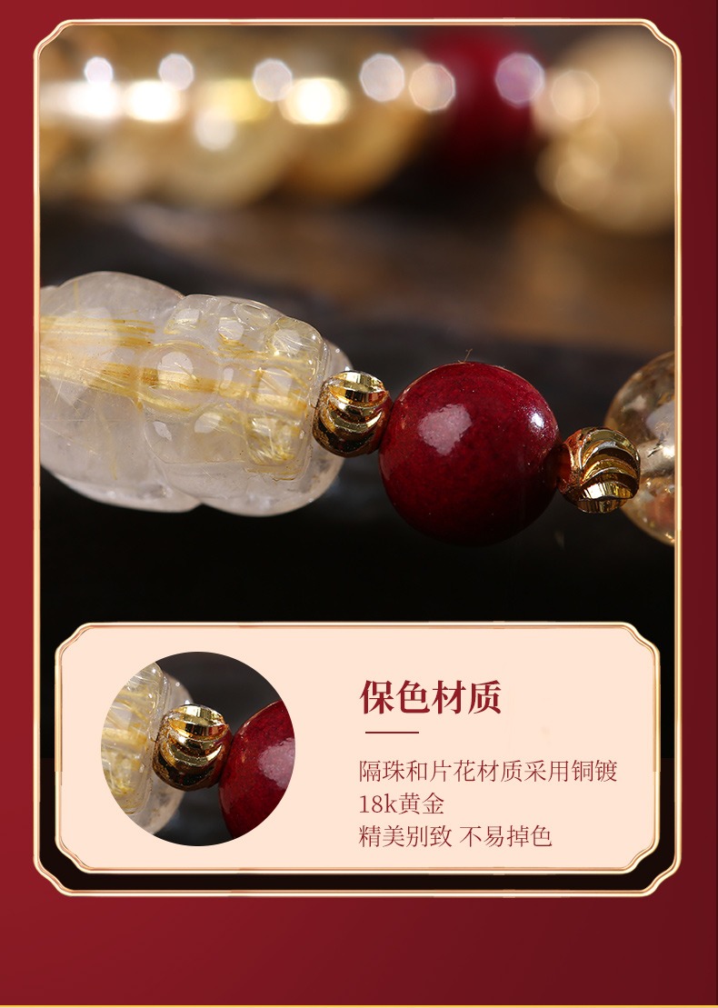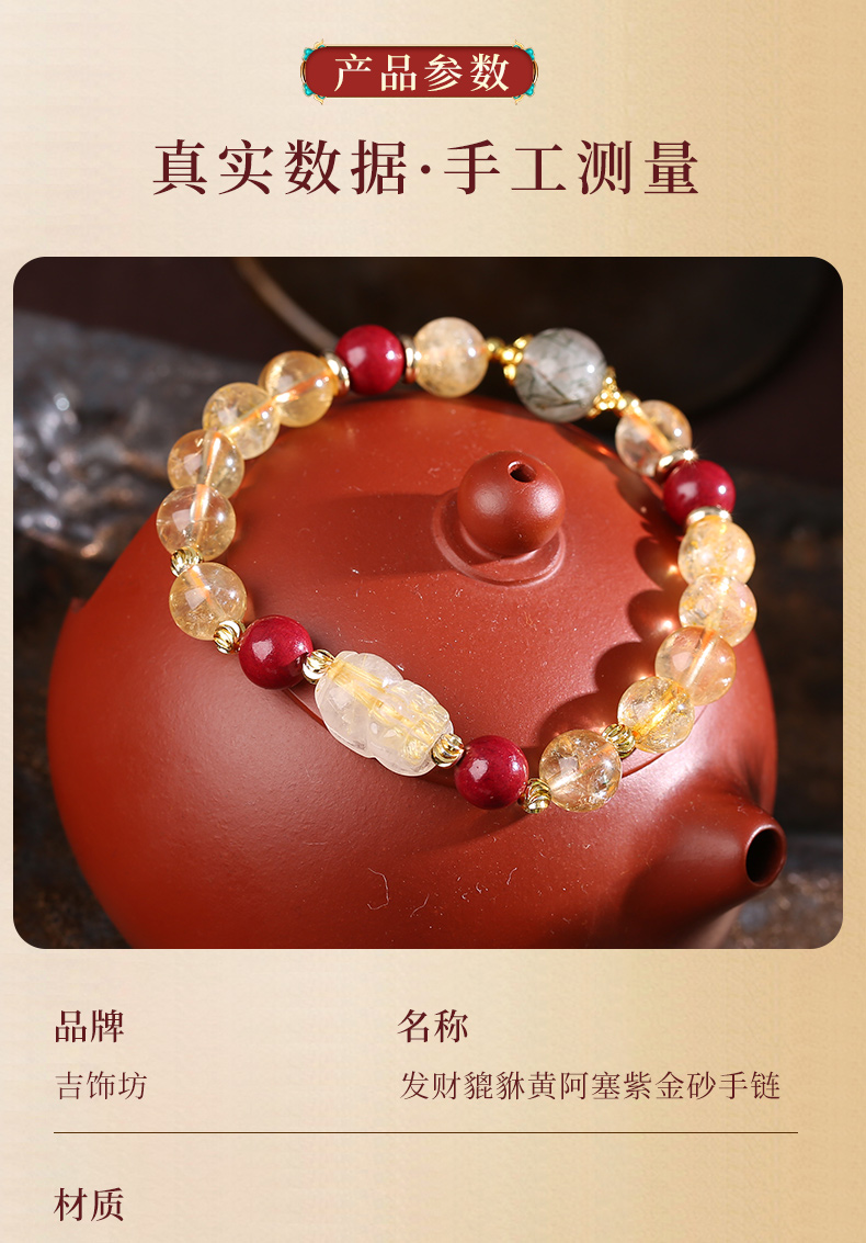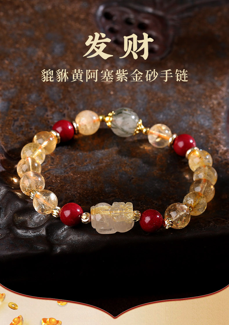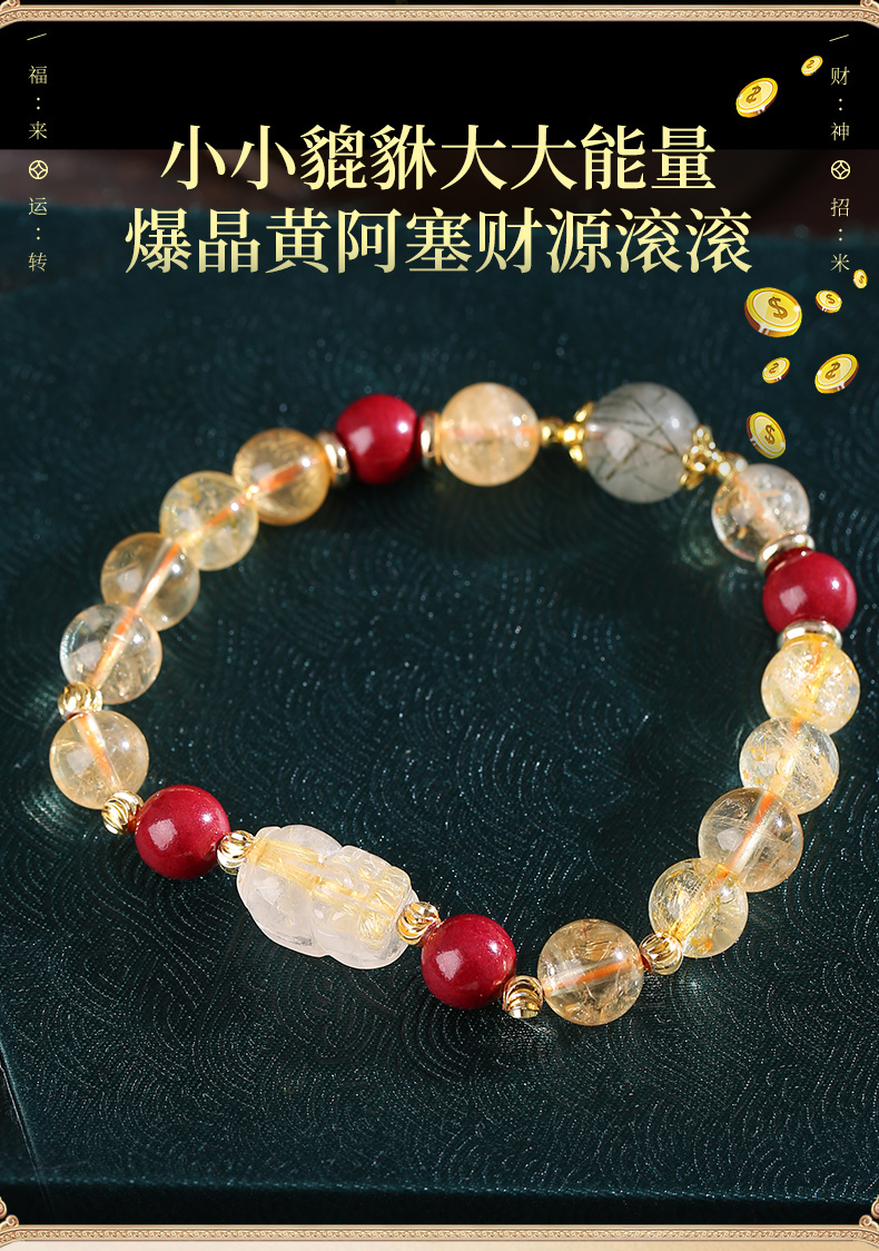灵机生活馆发财貔貅黄阿塞水晶手链手串金发晶手链吸金石生日礼物