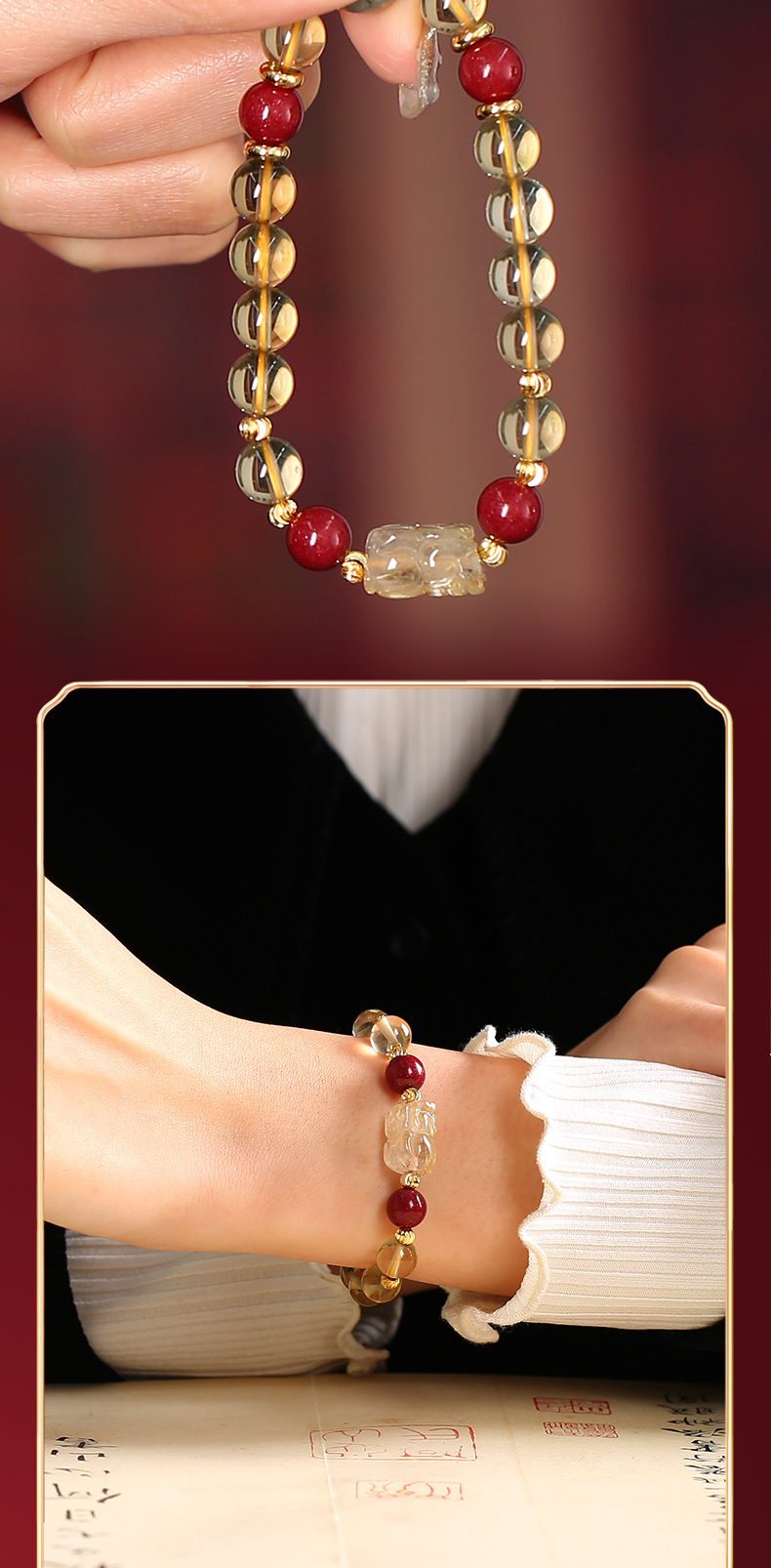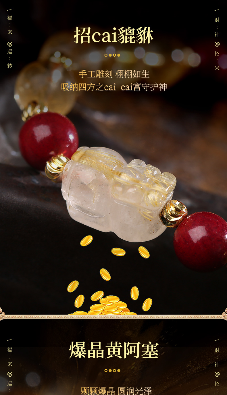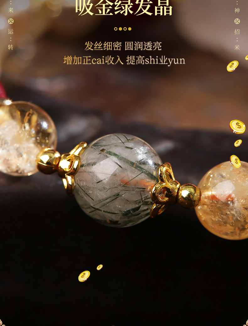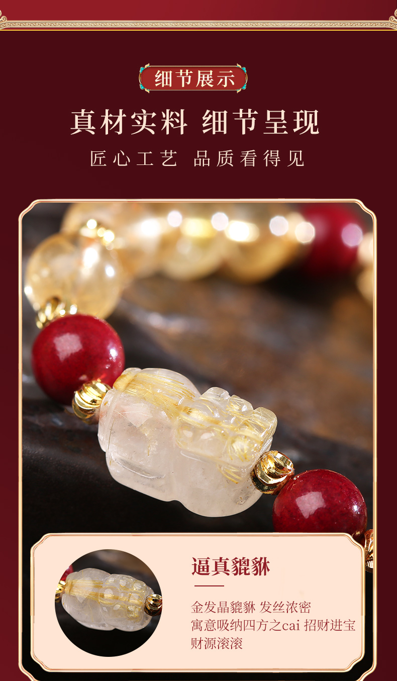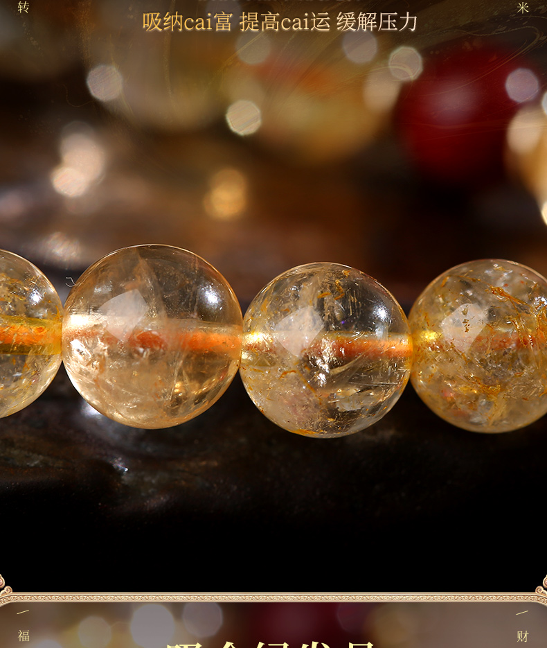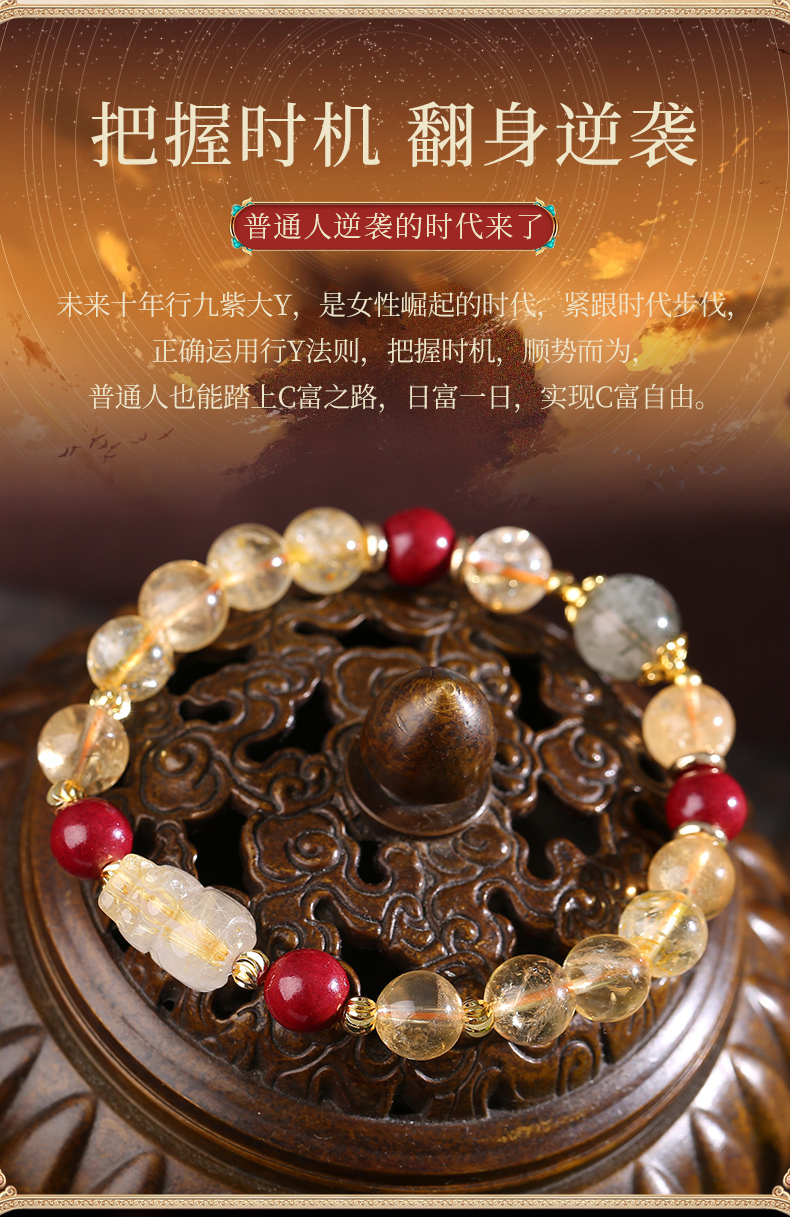 灵机生活馆发财貔貅黄阿塞水晶手链手串金发晶手链吸金石生日礼物
