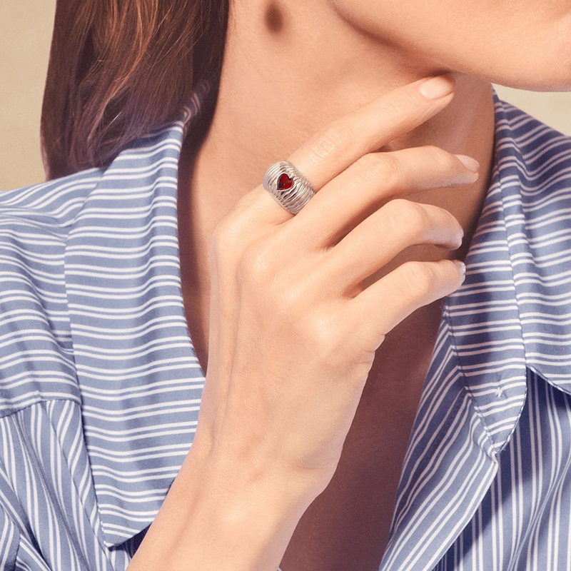 订购4周到|Tityaravy-Prema-银色 条纹 石榴石 戒指[法国设计师]