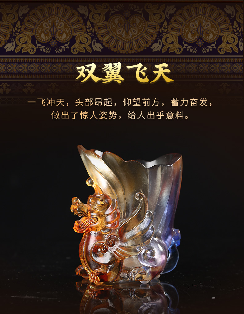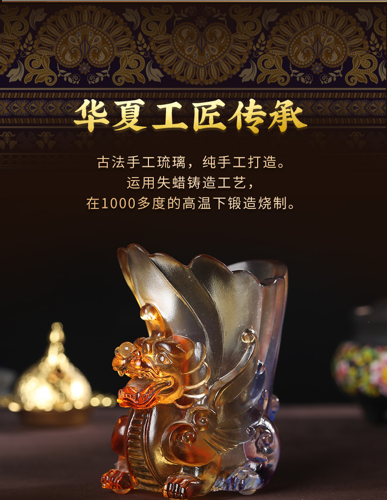 灵机生活馆 霸王飞天貔貅古法文昌笔筒 办公室书房会议室办公桌摆件