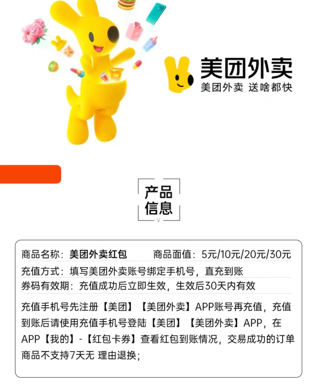 【直充秒到】美团外卖代金券5元10元