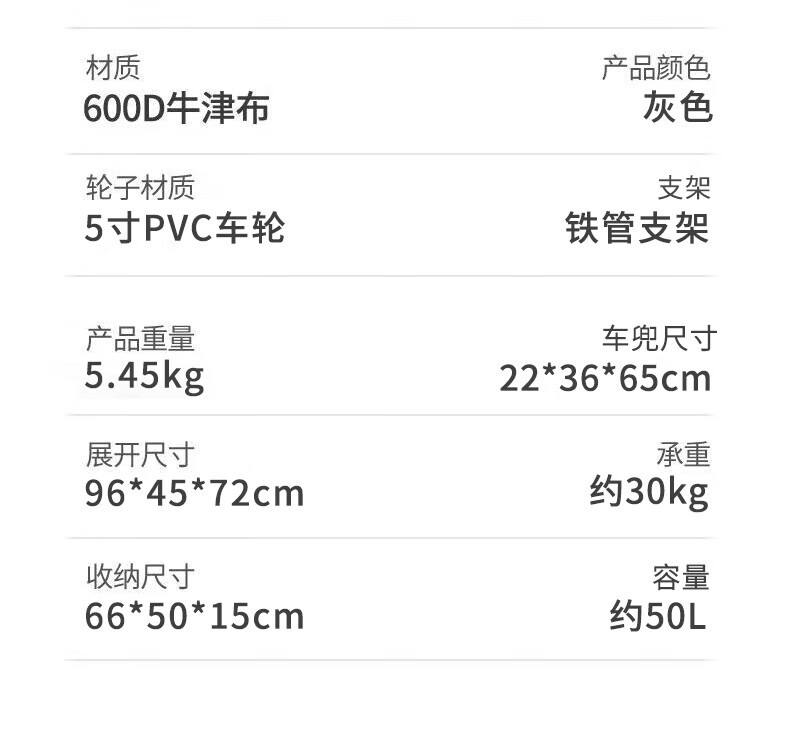 商品规格 :96*50*77cm(展开) 66*50*15cm(收纳)