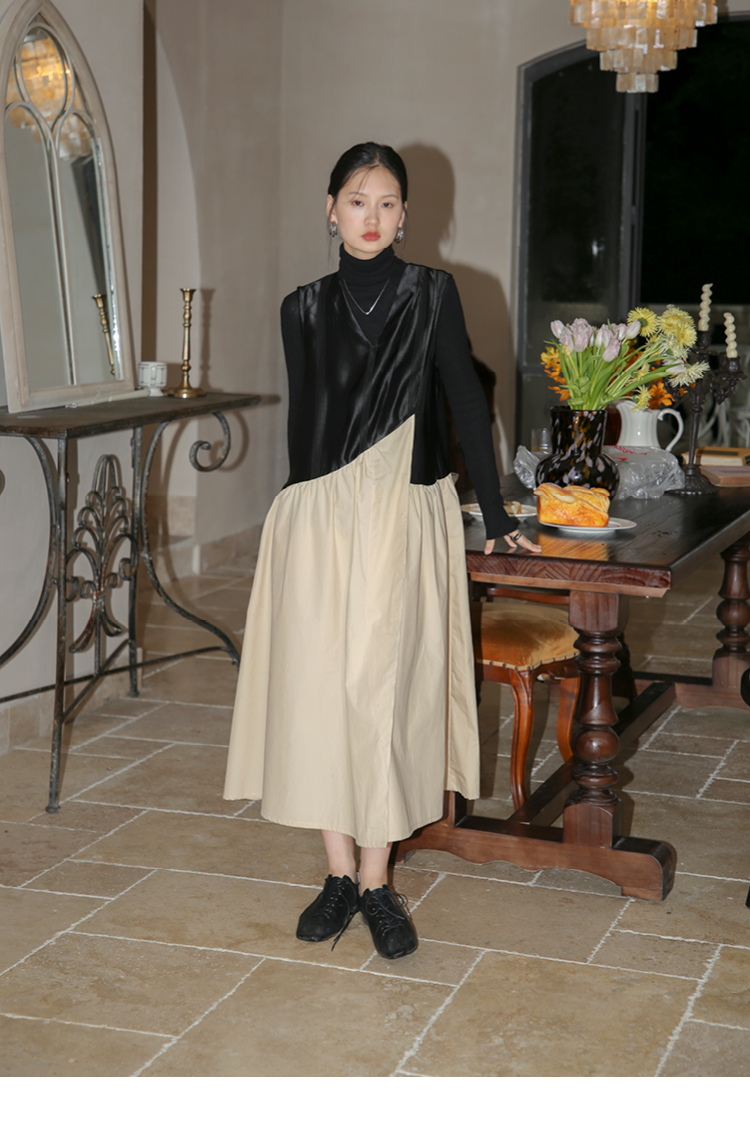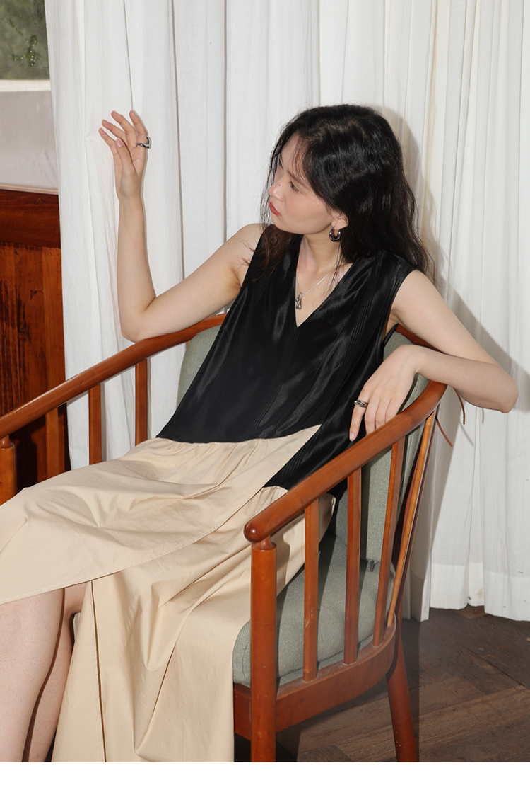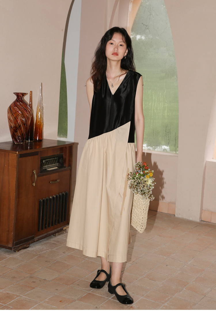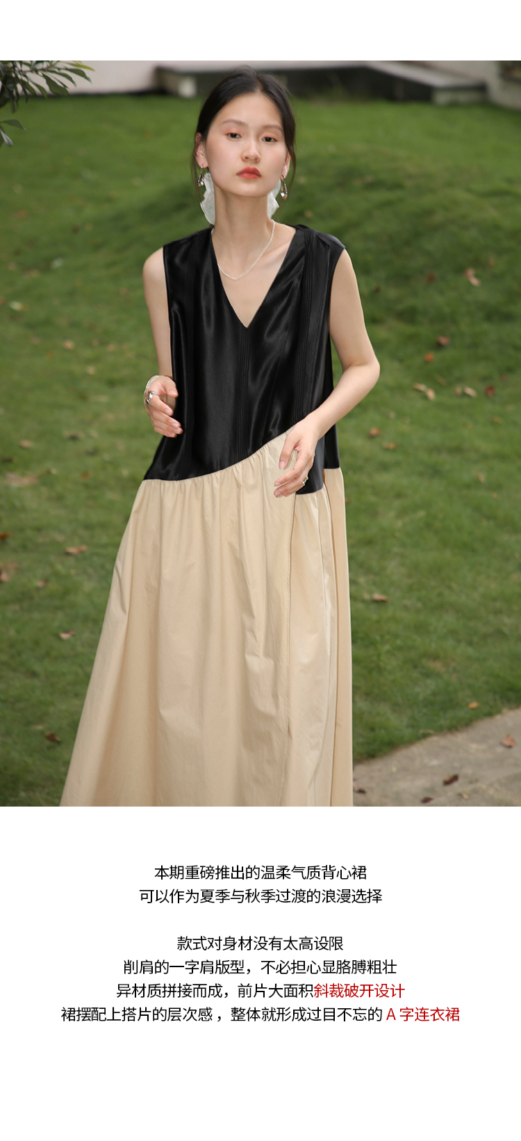 【3天左右发货】SUPERSCAPE素泊 醋酸连衣裙女高级感小个子背心裙V领内搭复古裙