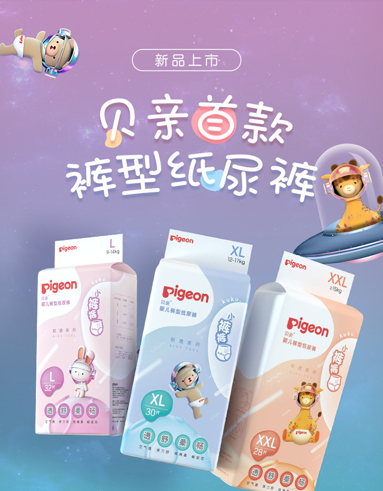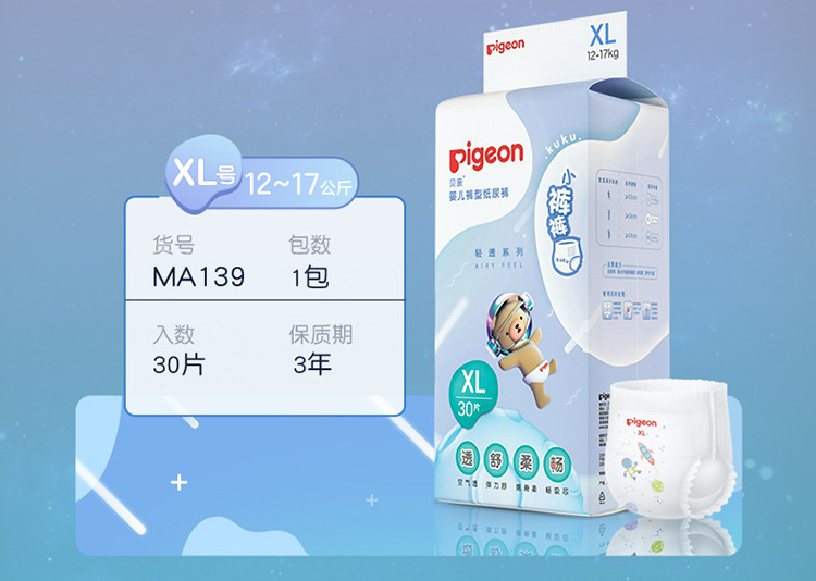贝亲新款轻透型纸尿裤NB/S/M/L/XL 婴儿拉拉裤超薄L/XL/XXL