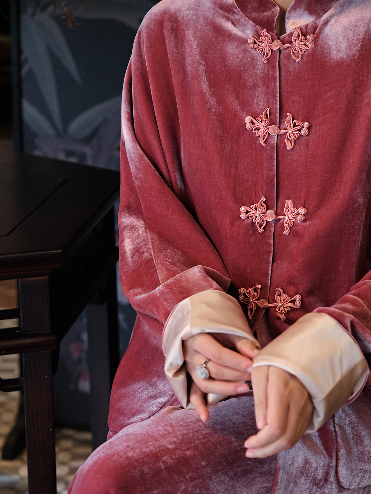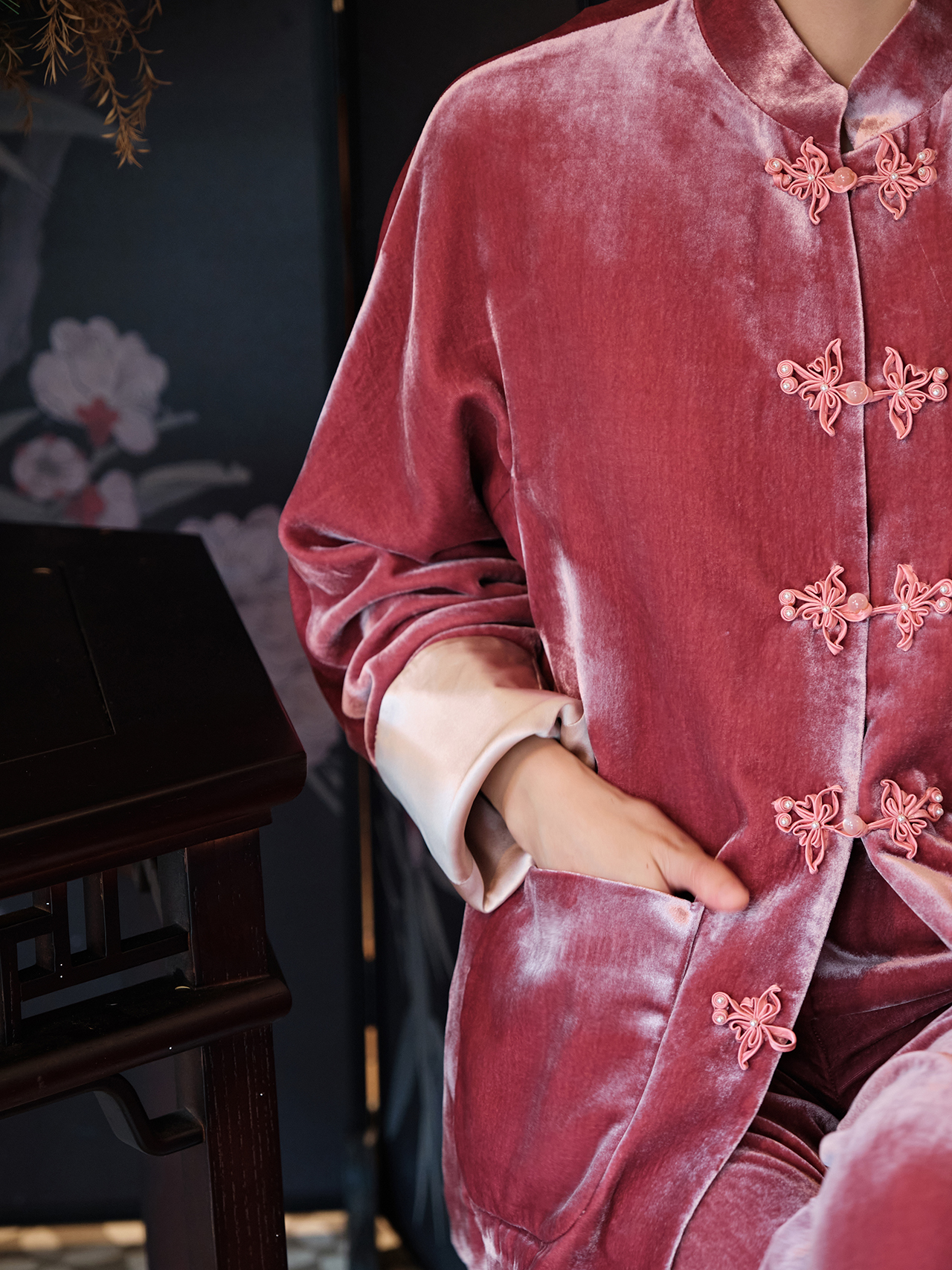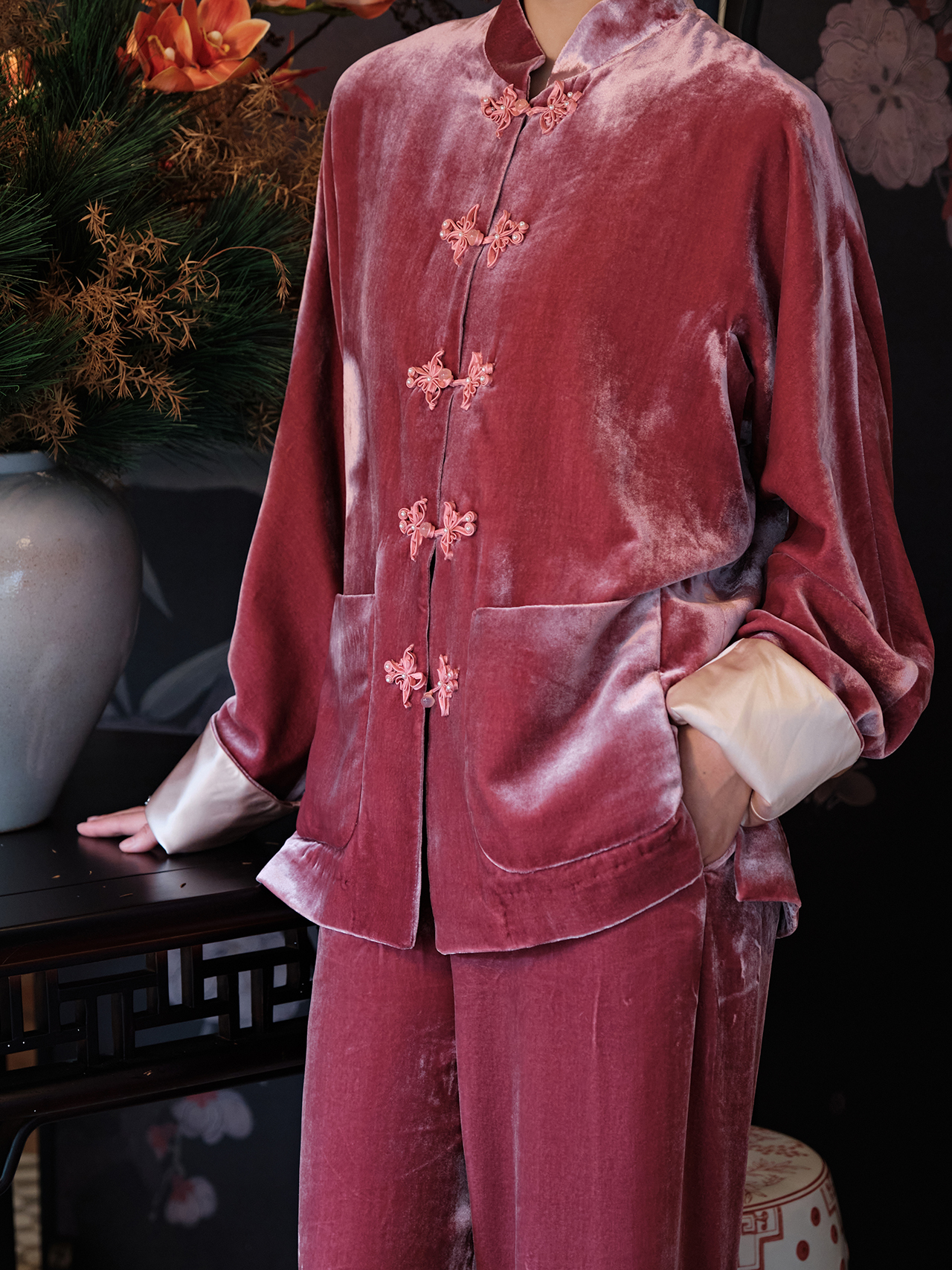 盛唐牡丹| 杨妃粉色丝绒花扣外套