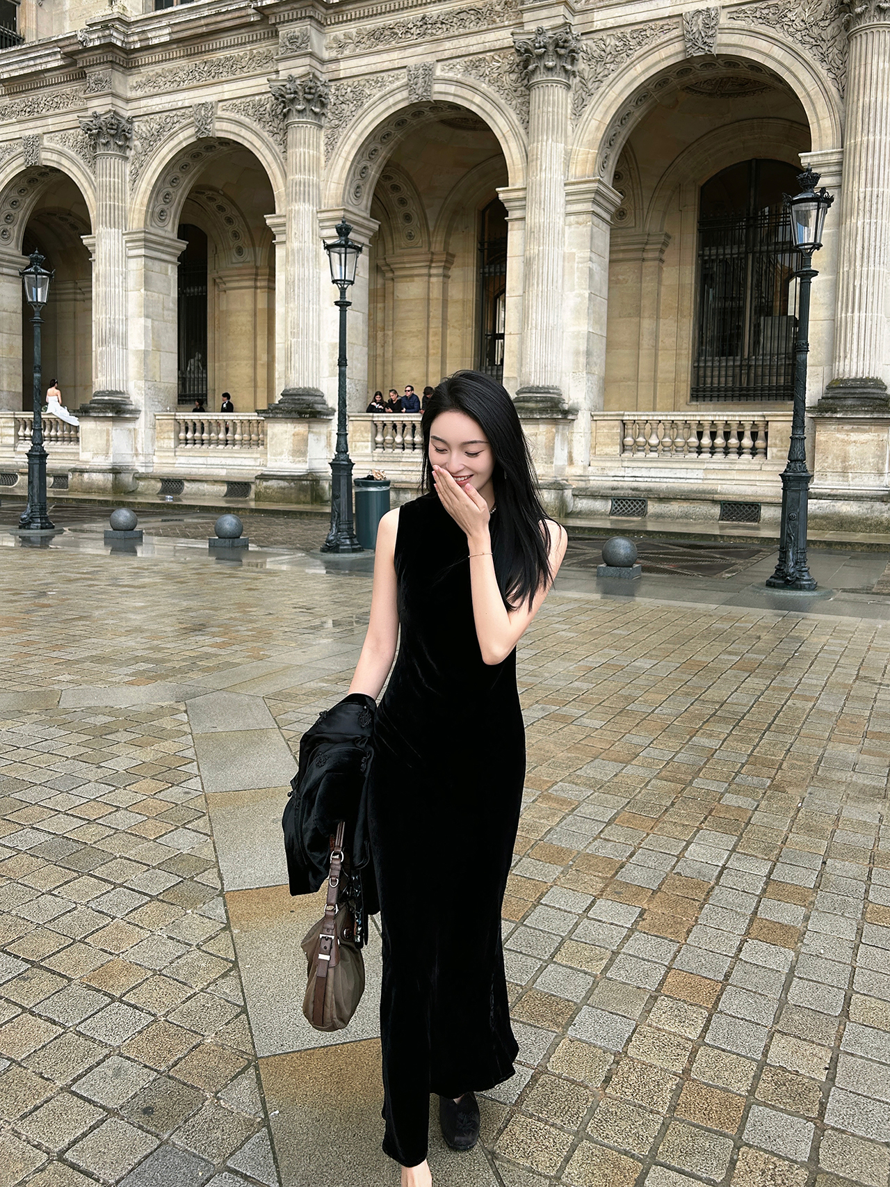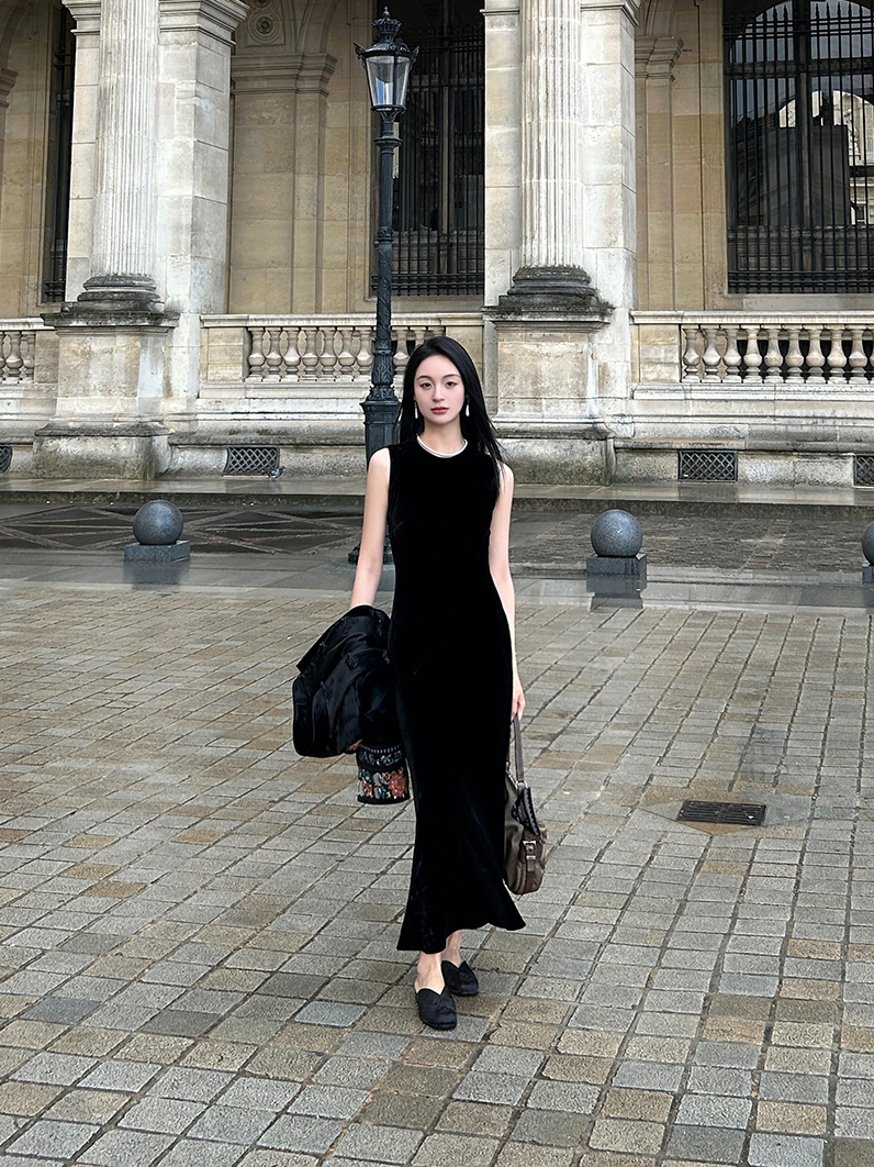 盛唐婧| 黑色丝绒圆领修身长裙