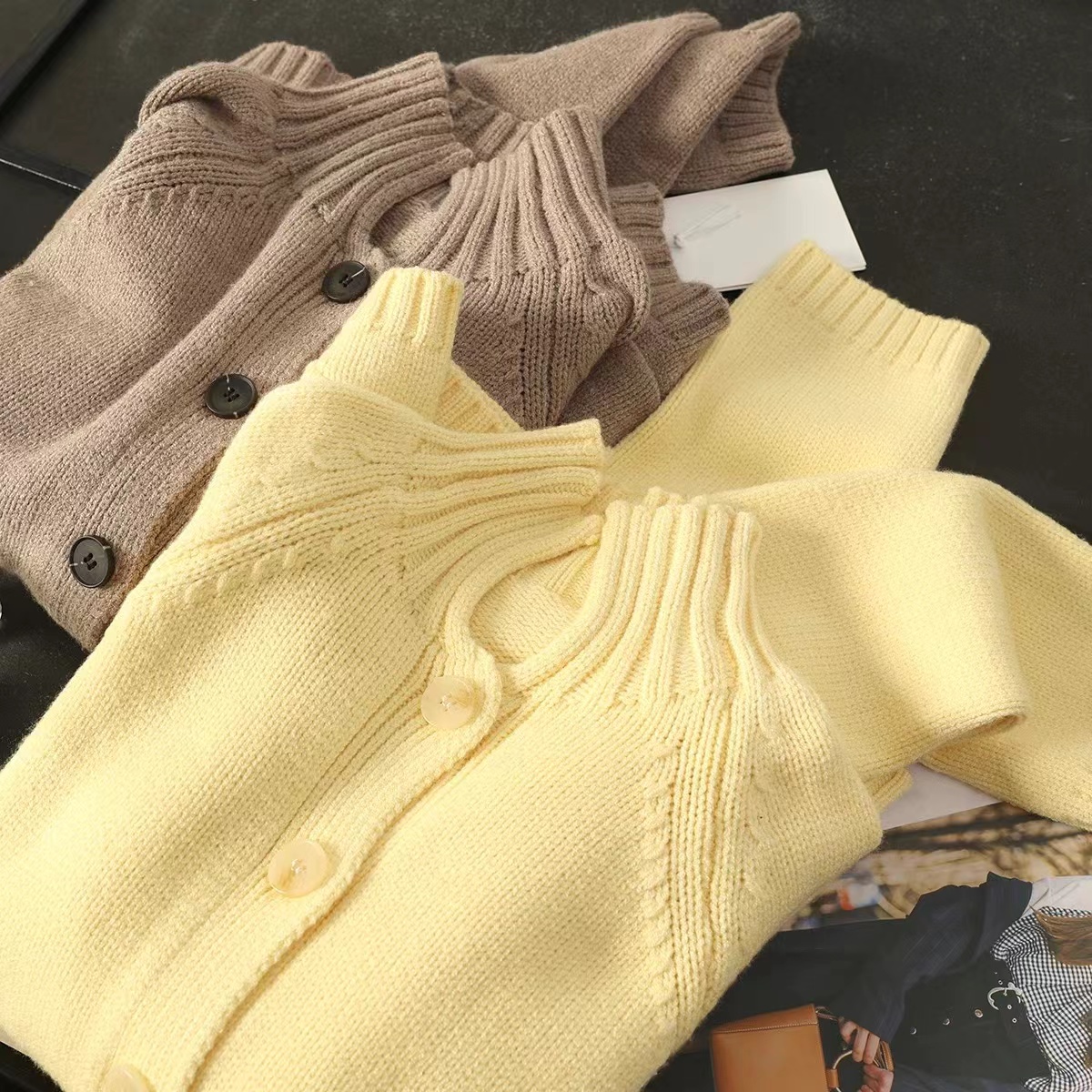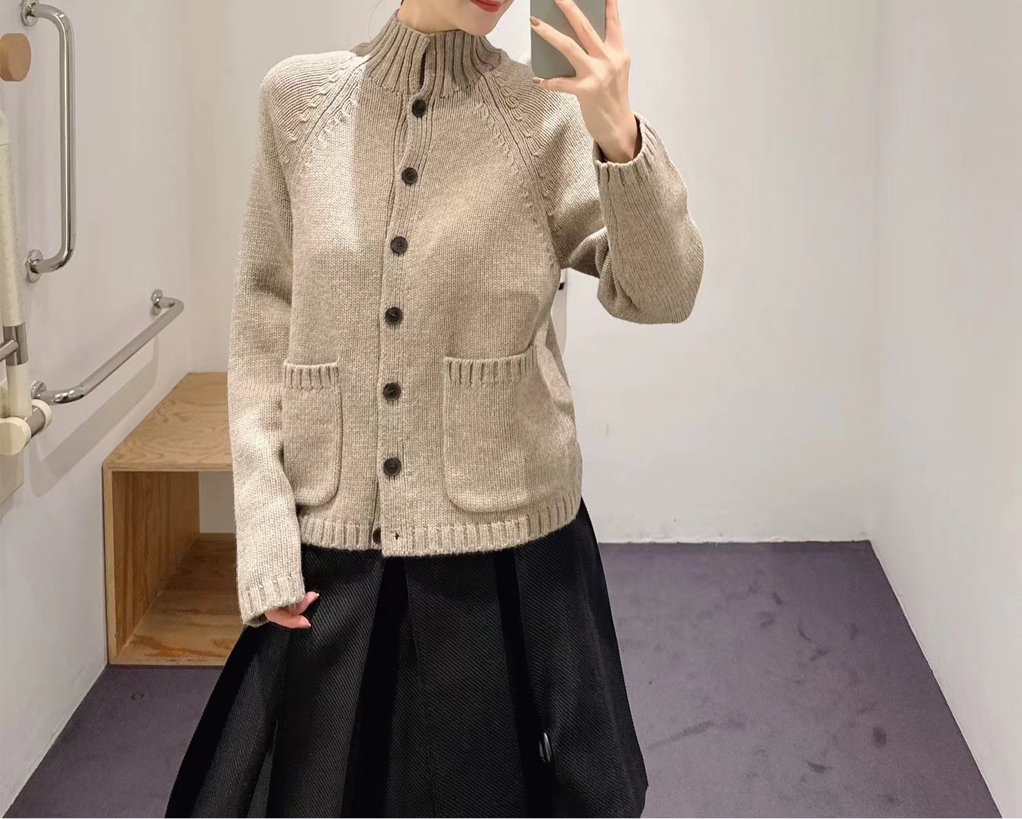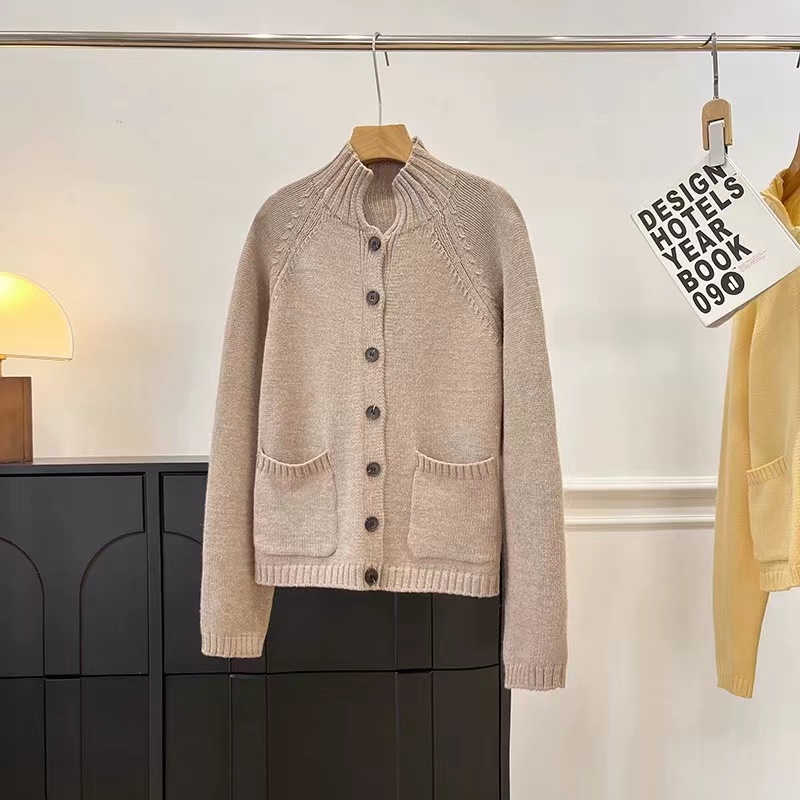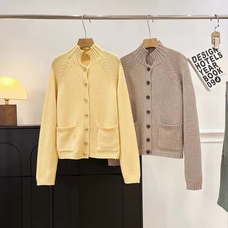 25冬季新款休闲版型高领羊毛纽扣针织开衫毛衣外套女,洋气休闲版针织毛衣开衫半高领插肩小宽松版型,衣长适宜,单排扣开襟手感柔软,筋骨jia,小厚,舒shi有型(正面贴袋设计)