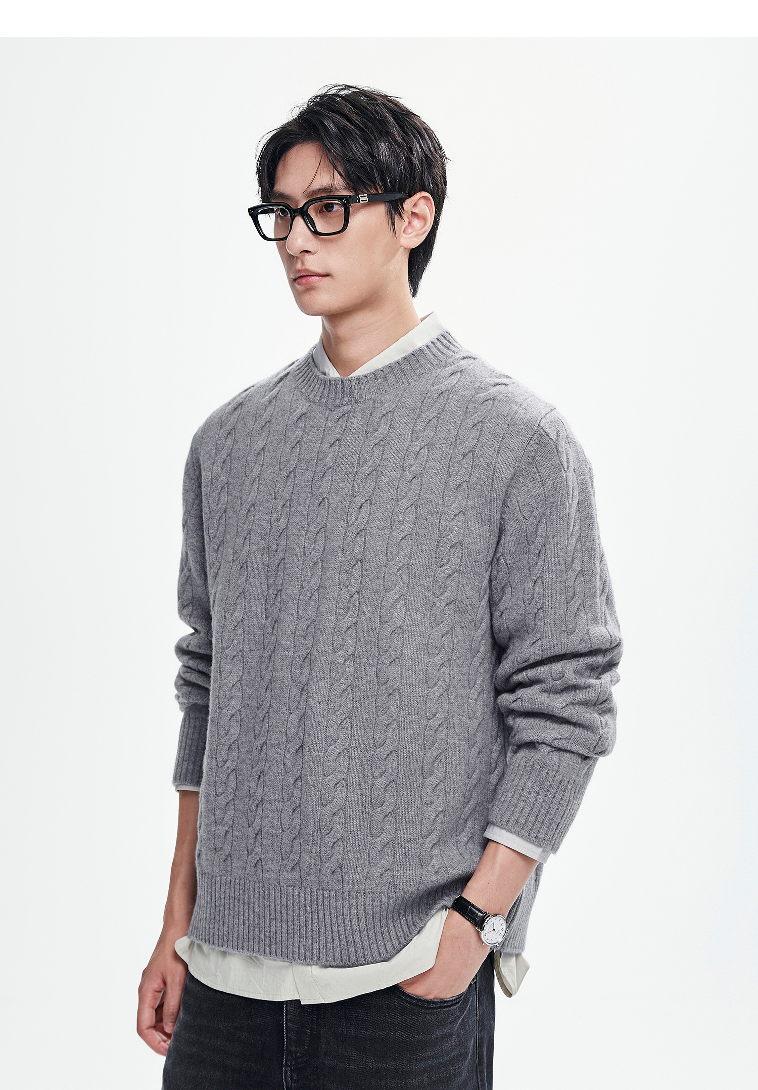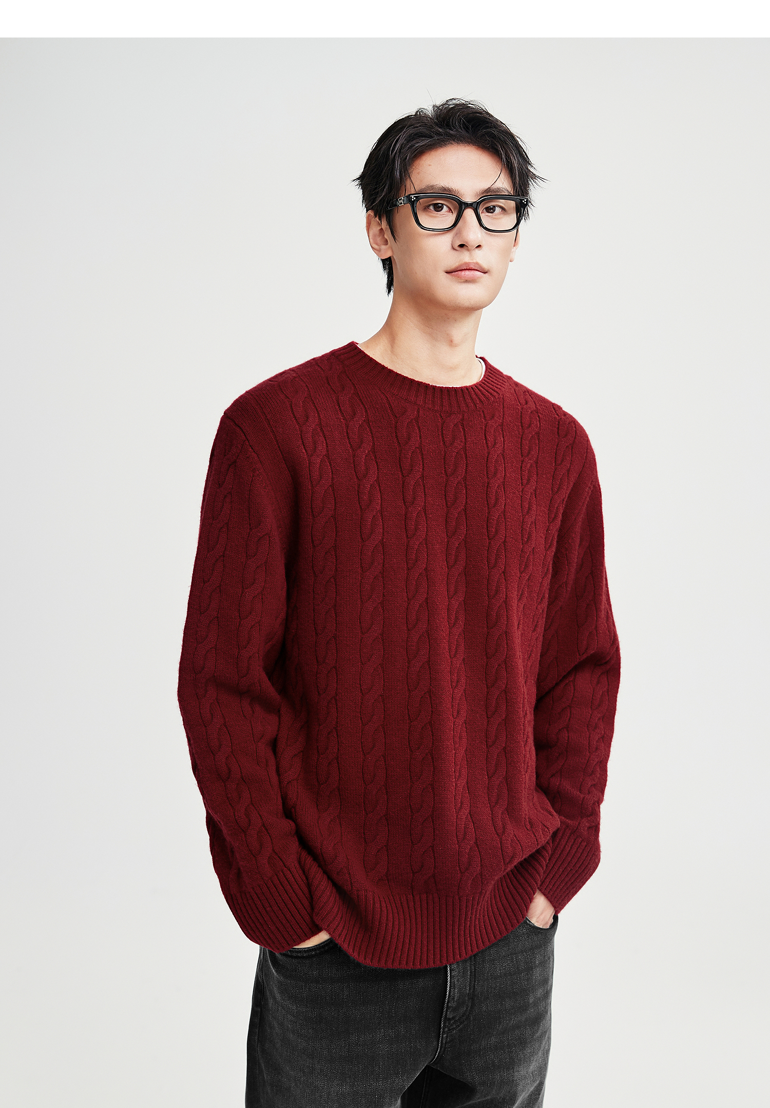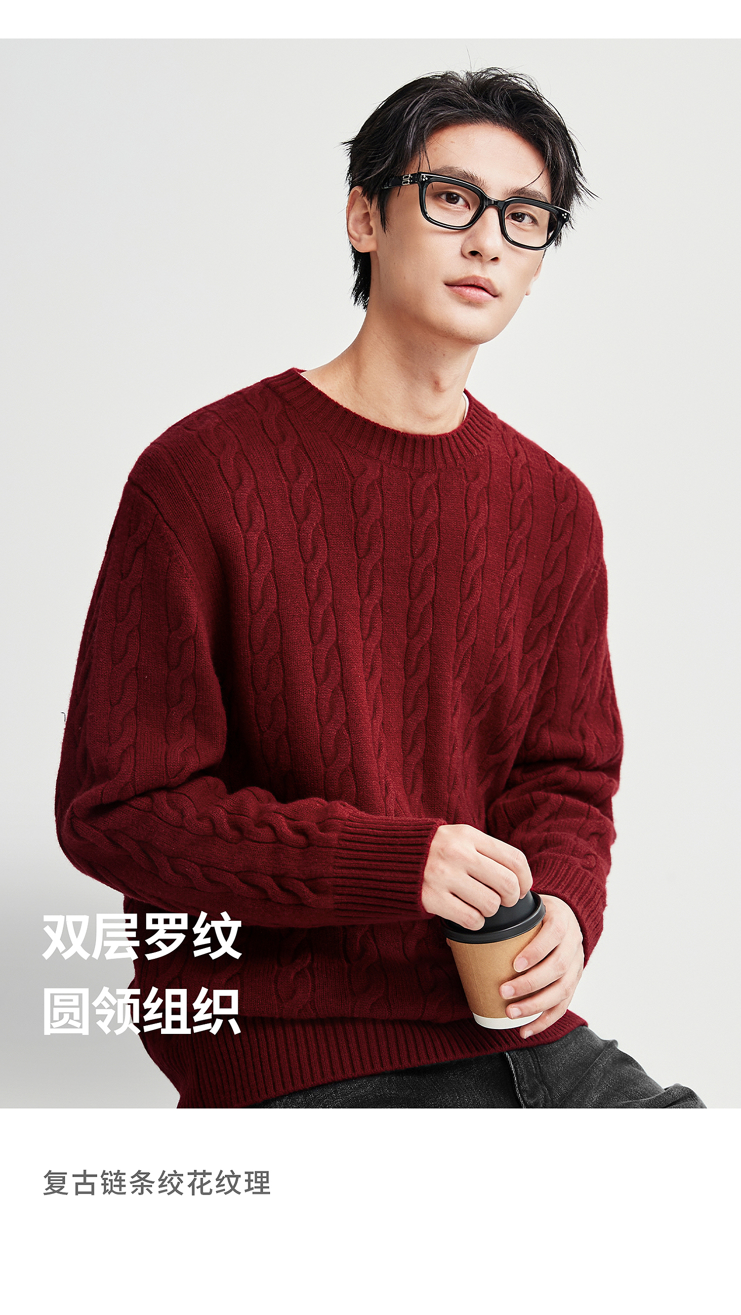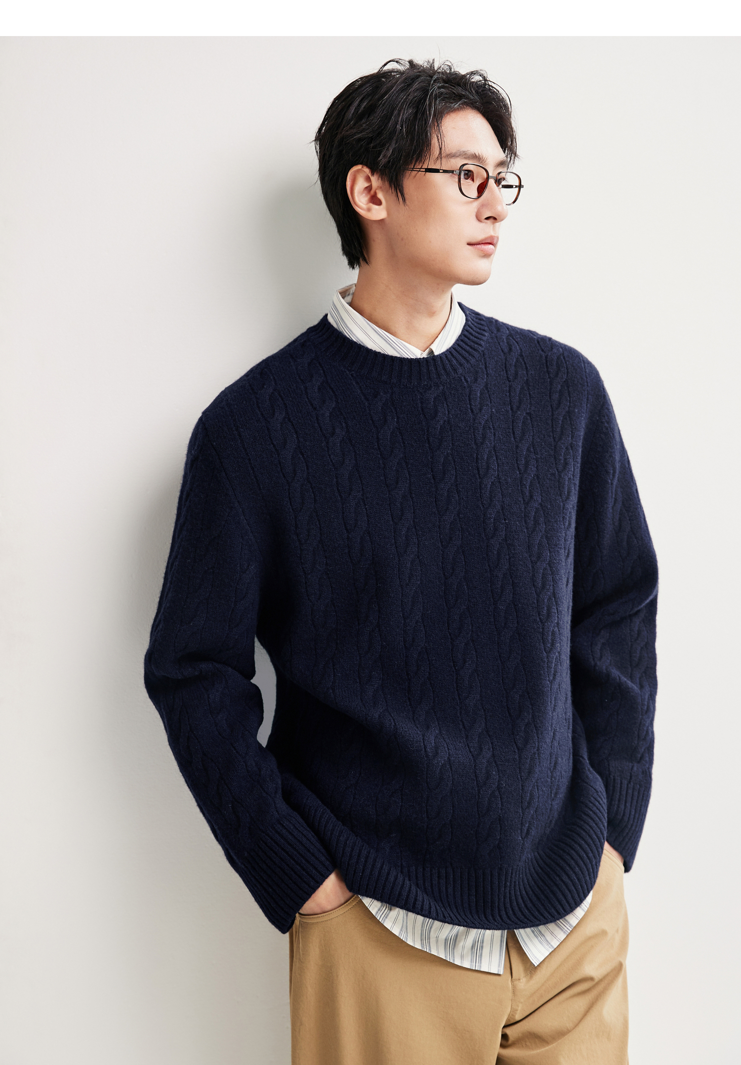 棉仓367826014-美丽诺全羊毛绞花麻花毛衣男秋冬复古老钱