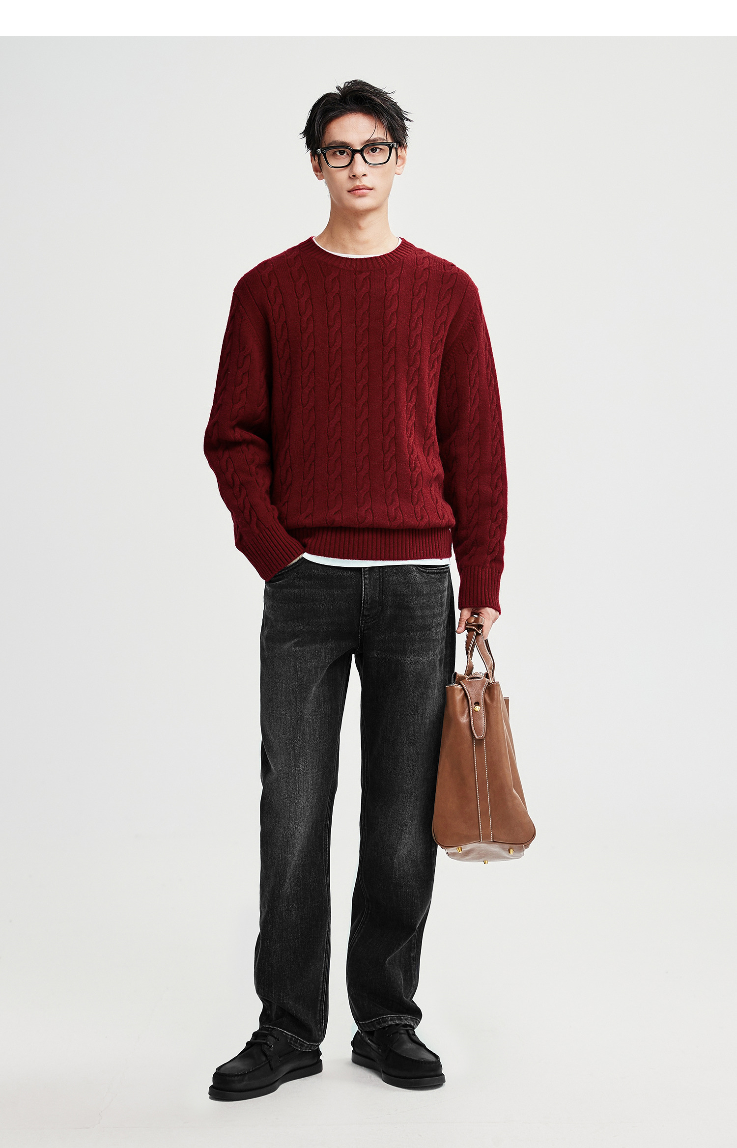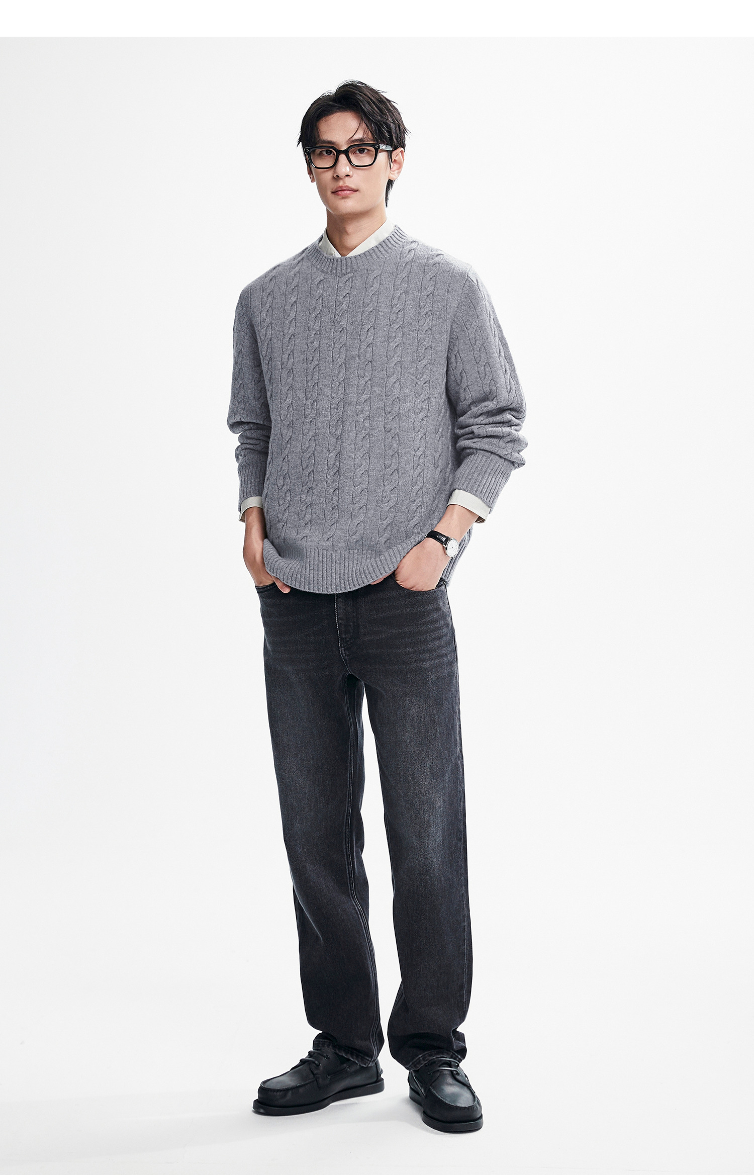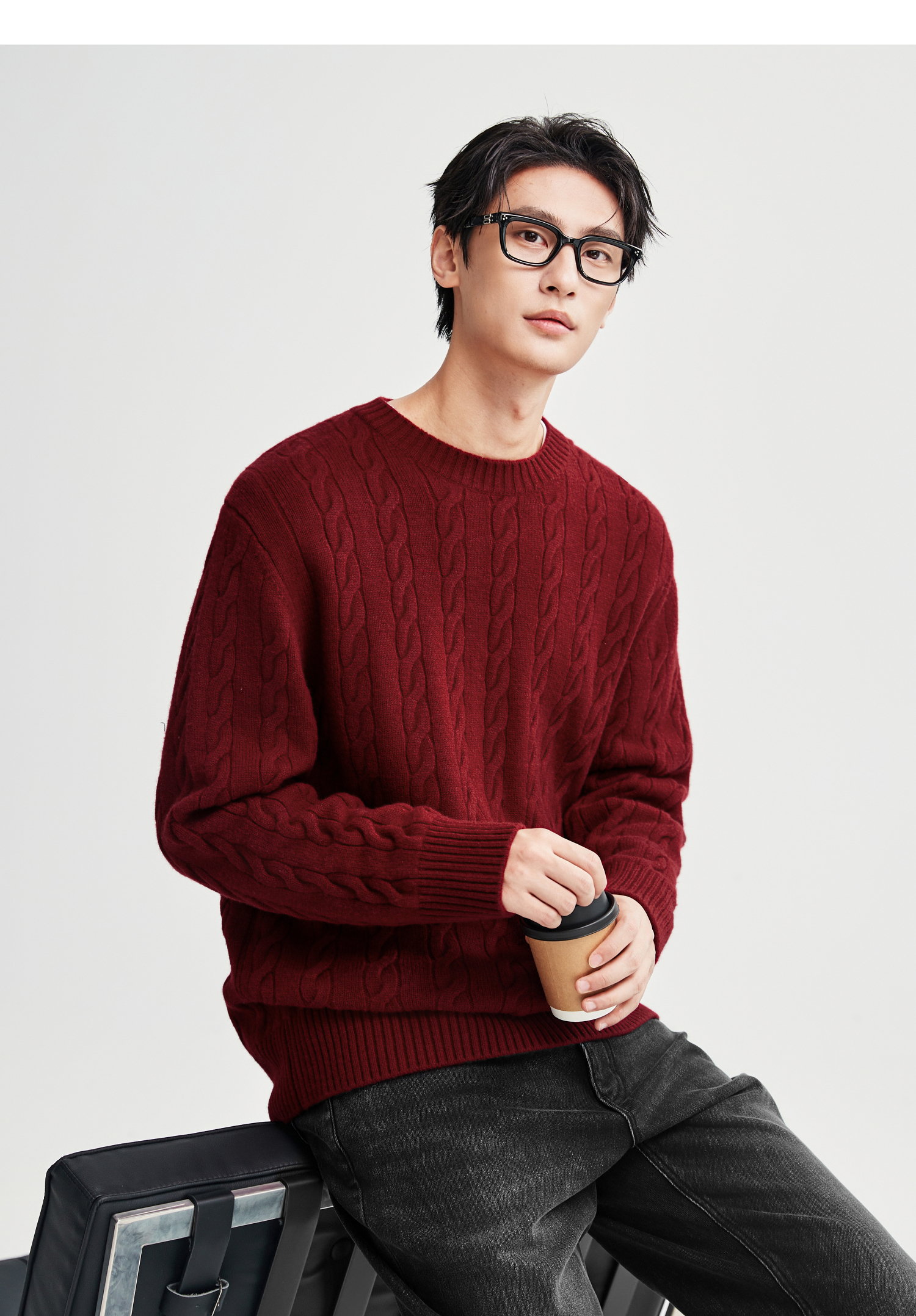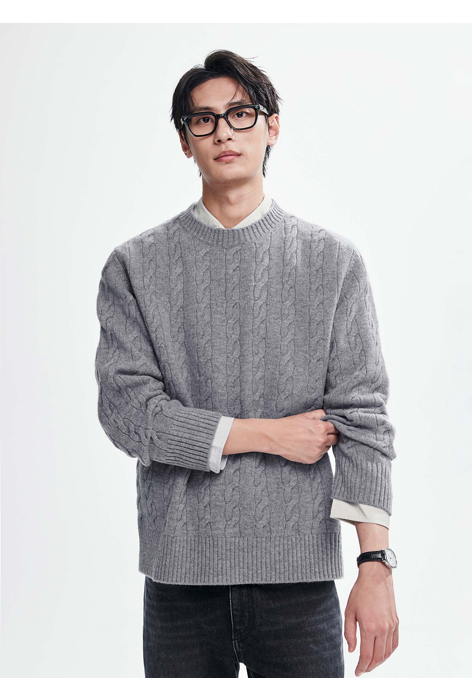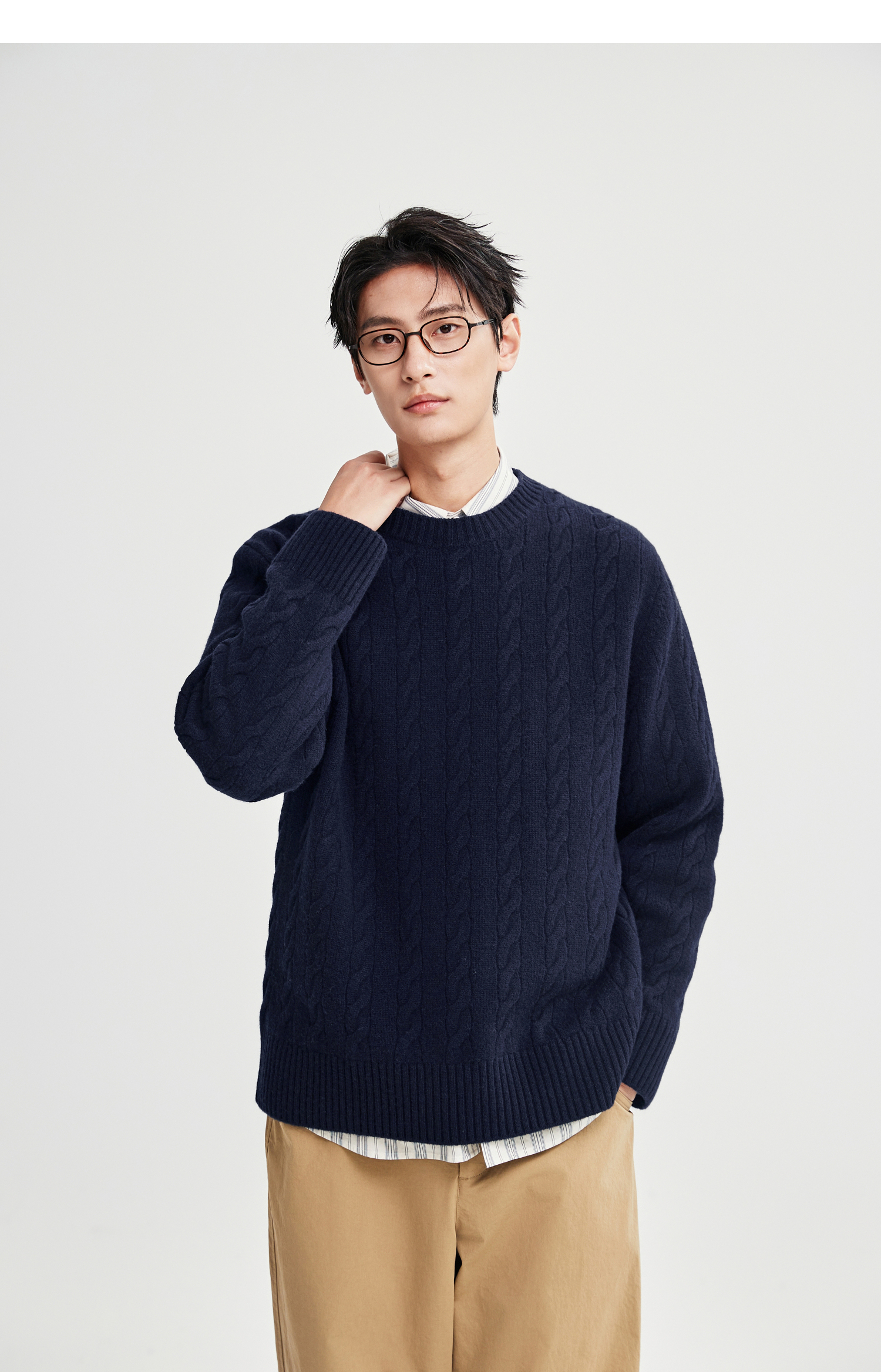 棉仓367826014-美丽诺全羊毛绞花麻花毛衣男秋冬复古老钱