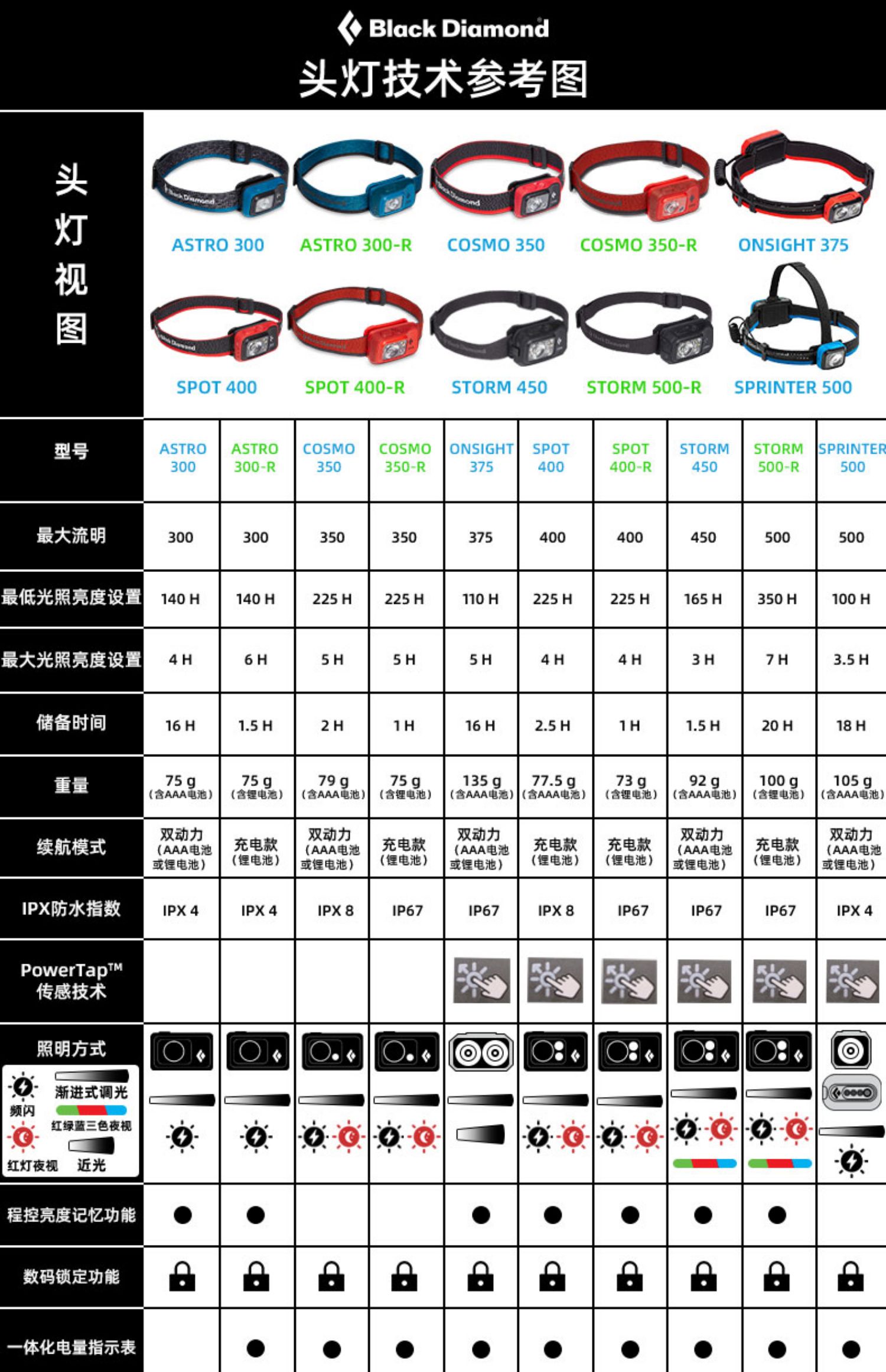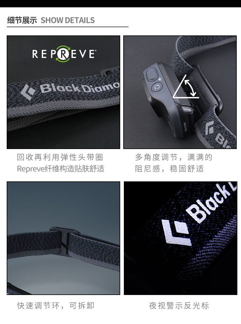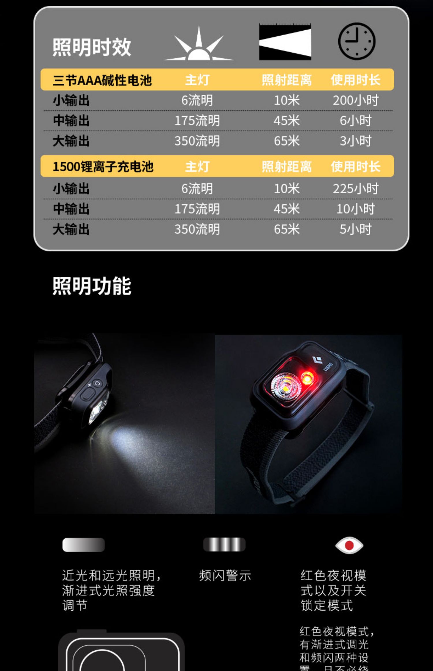 BlackDiamond黑钻bd户外头灯超亮充电头戴式超轻强光led灯620673