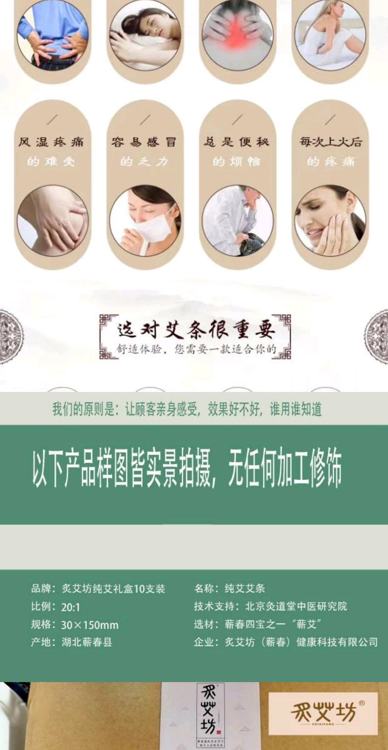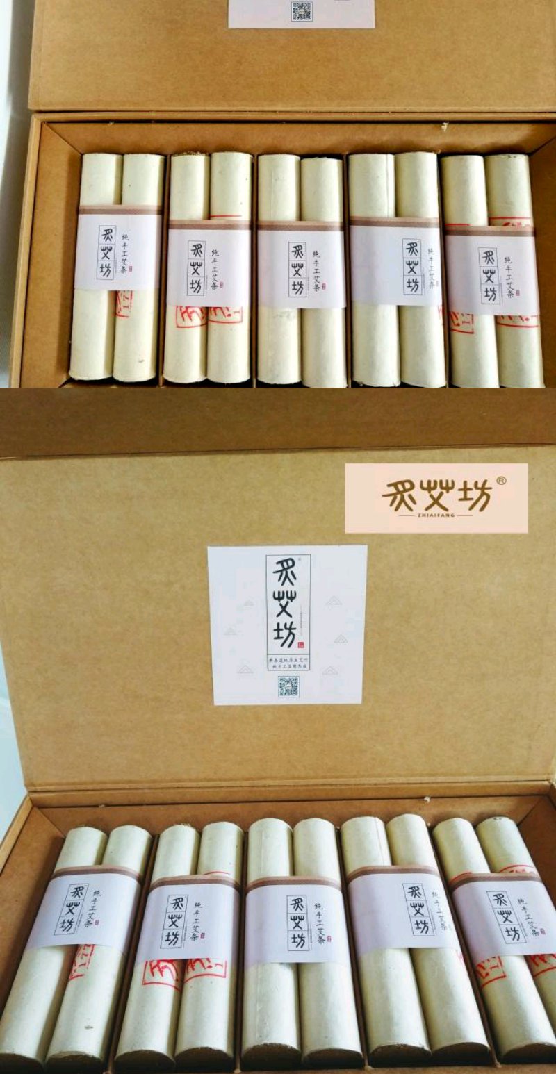 炙艾坊蕲艾手工桑皮纸制作款陈艾30×150mm纯艾条礼盒/10支装